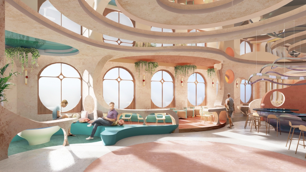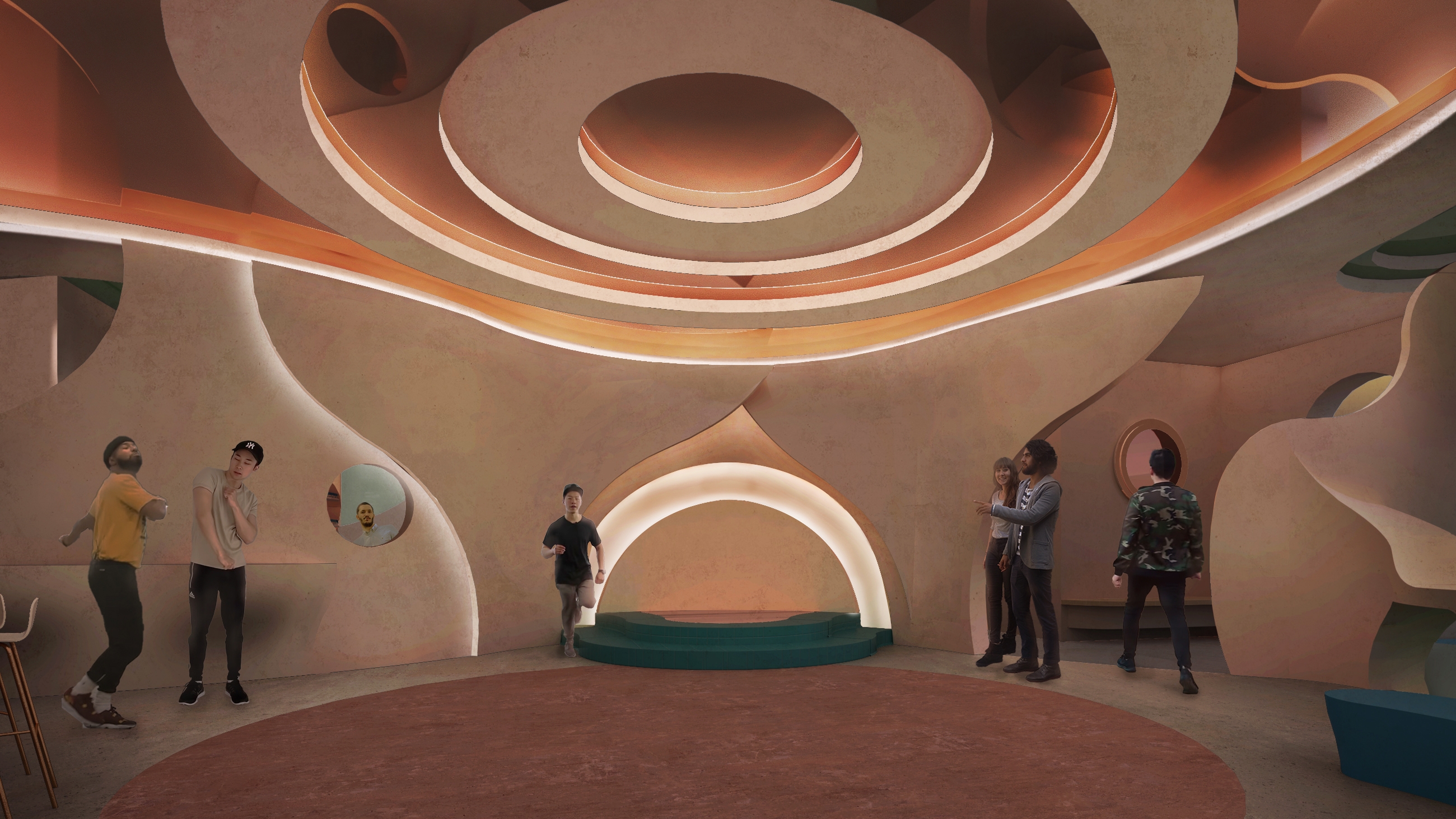 The project creates a fluid space that allows people to explore and encourage social interaction.