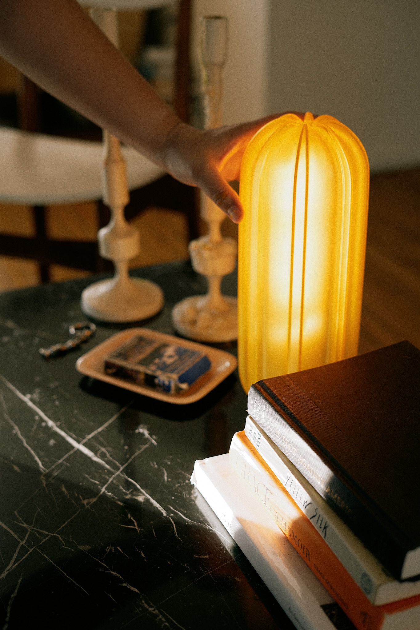 I also wanted the light to be producible under certain means. With my partner in Shanghai, we were able to have the form be completely 3D printed and tinted the exact color to give off a warm west coast glow.
