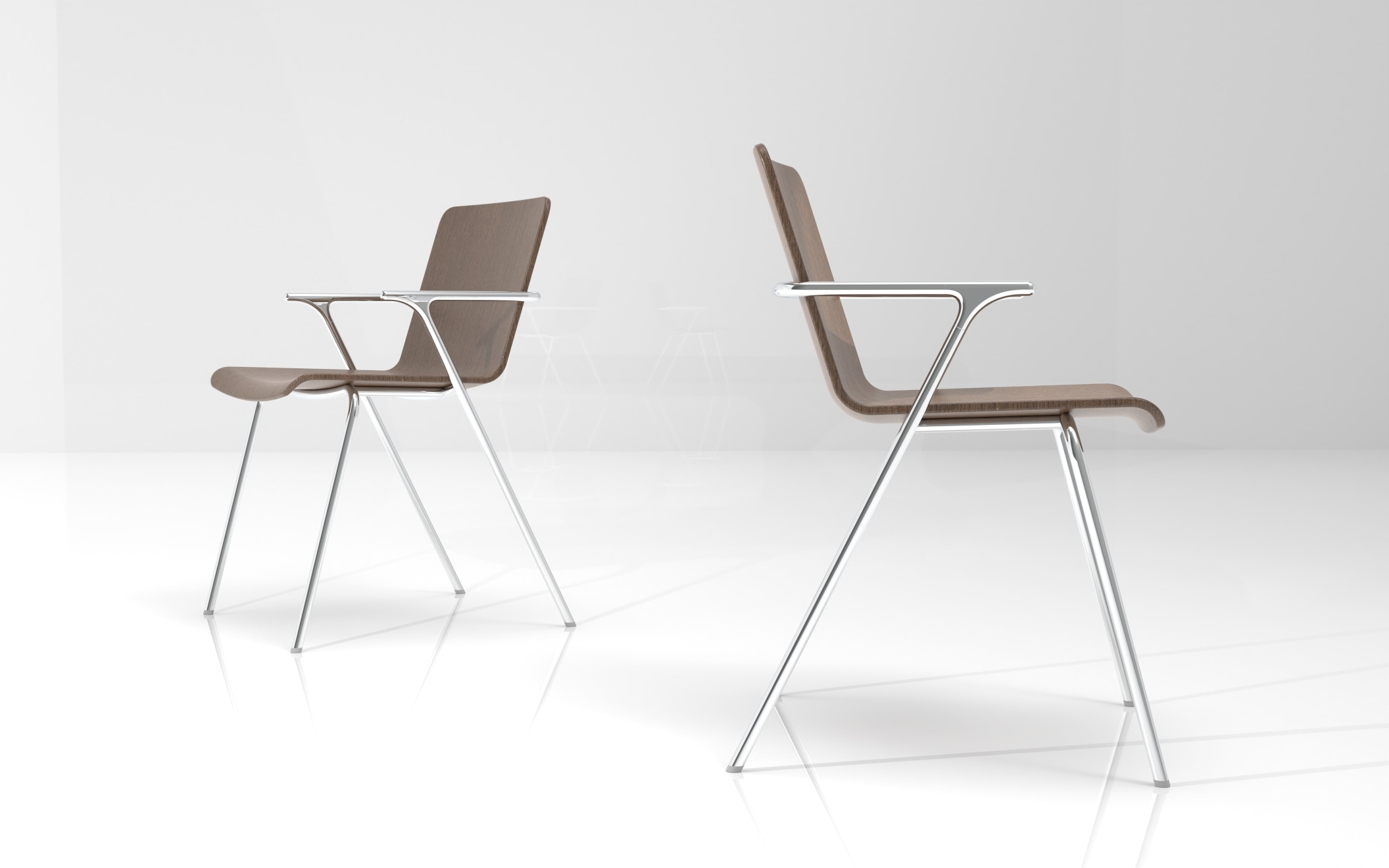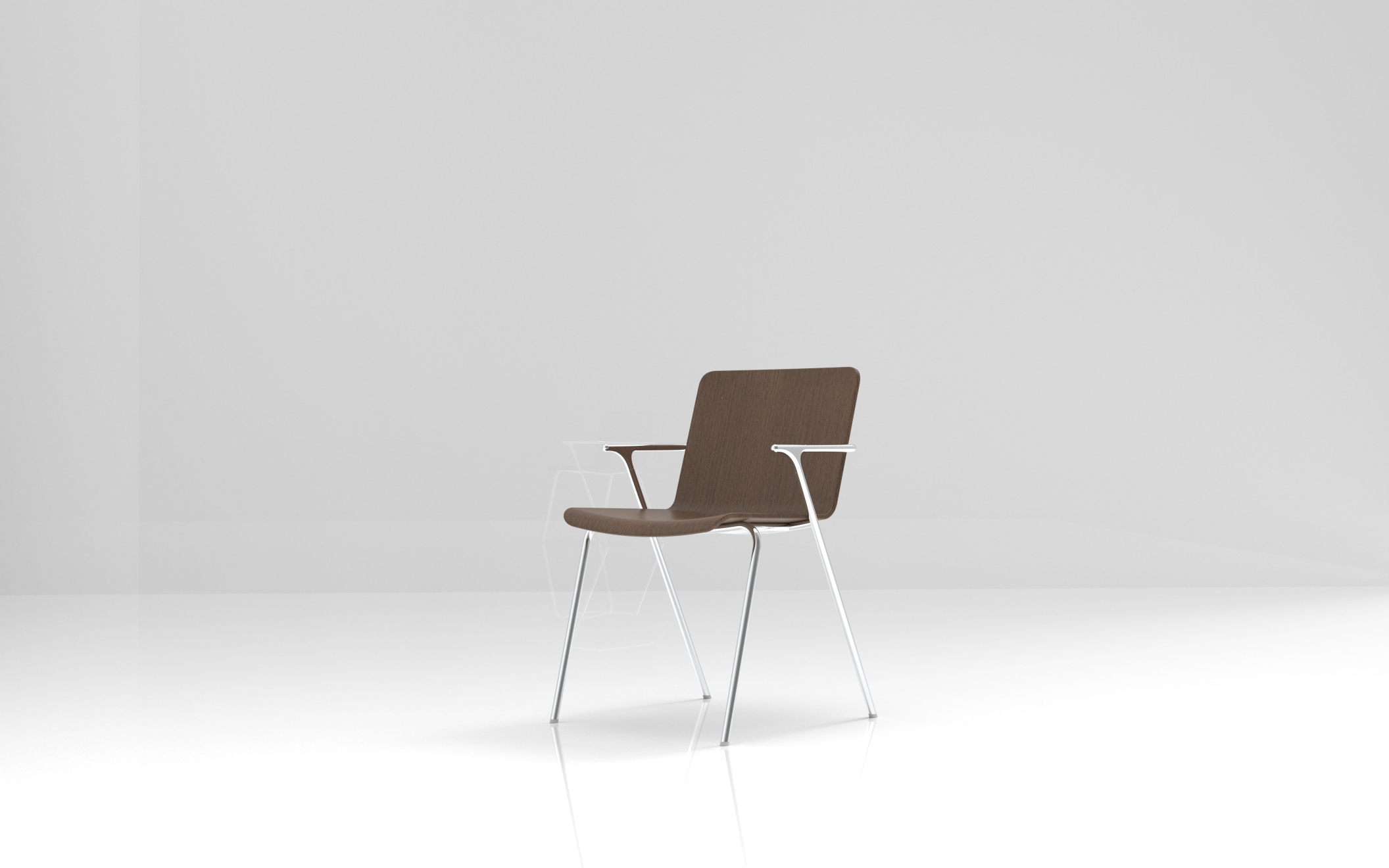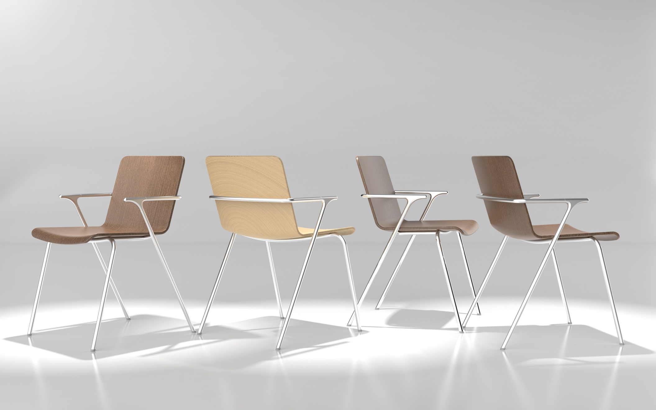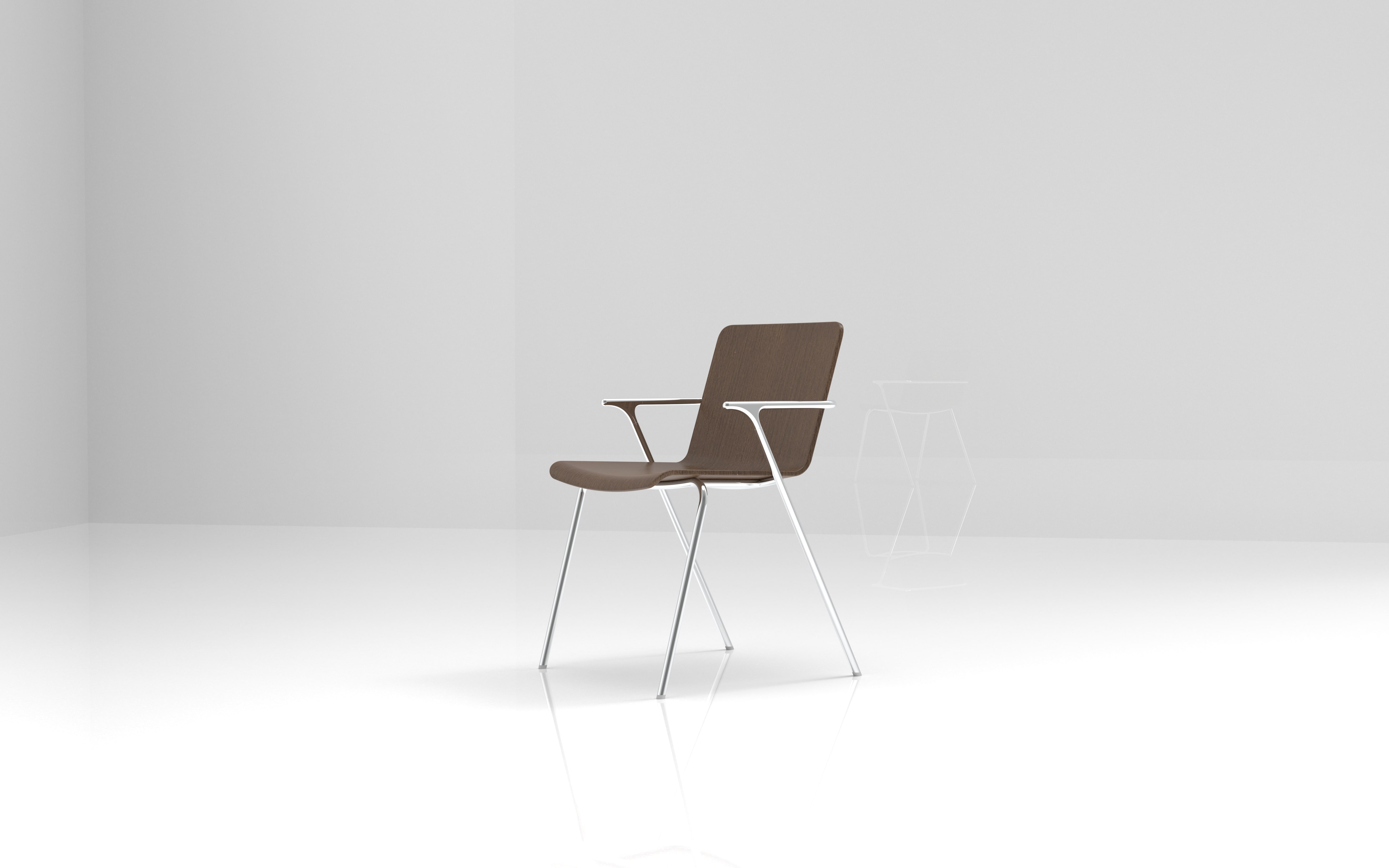 Aria is a lightweight armchair ,with a simple design and elegant asthethic, to be used in various environments, such as cafes, offices, and living area. The continuity of a single line surrounds the overall chair, which creates a clean and soft atmosphere. However, joints are simple yet dynamic. The combination of natural wood and the continuous frame design are a piece's central differential. The shallow curve and angle of the seat give the user a sense of stability and comfort, and Aluminum lighten the weight of the chair for mobility. Aria can be made of various CMFs such as wood, painted wood, and leather according to consumers' tastes and in different environments.