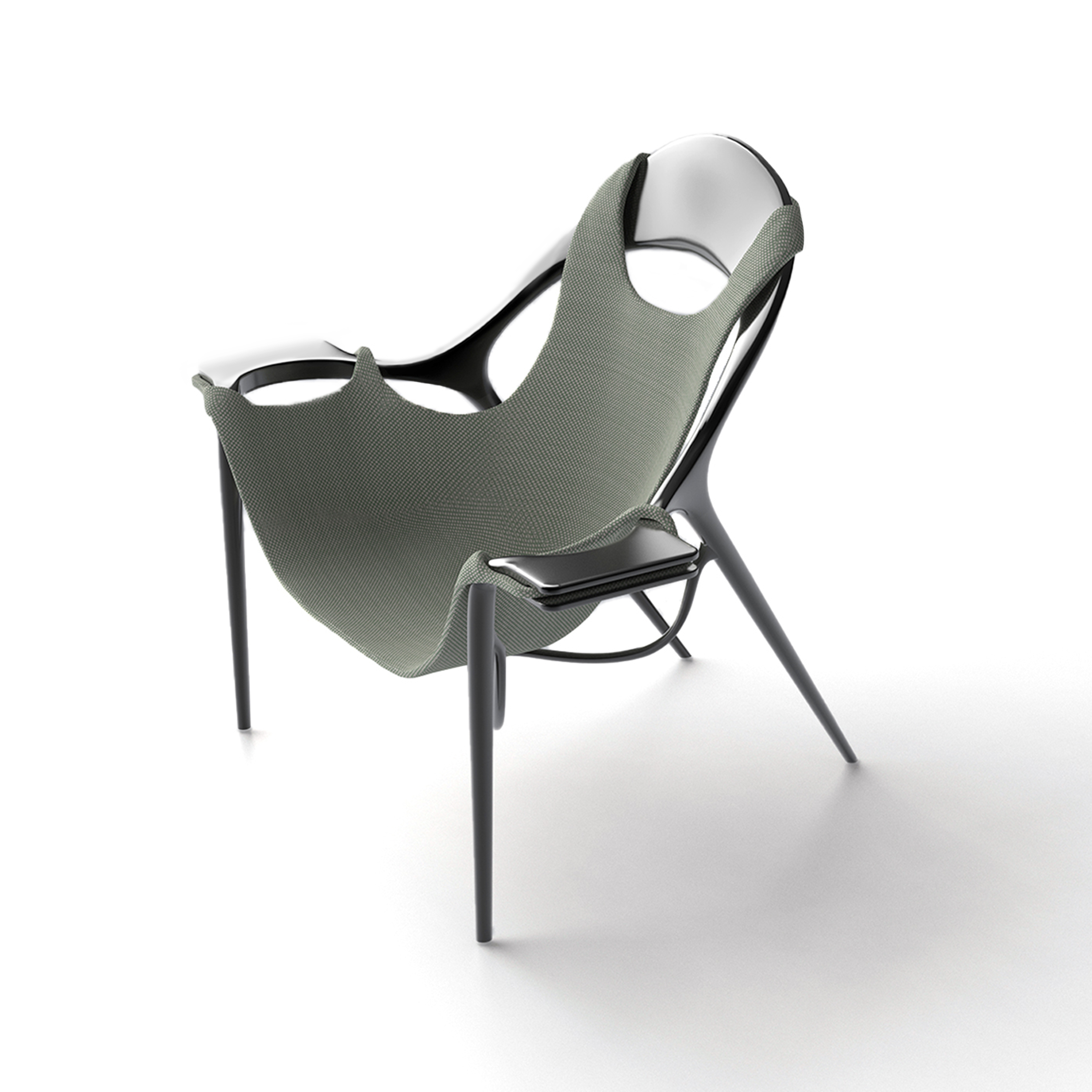 The Florencia Lounge Chair features a smooth continuous frame with seamless zero hardware joints. Making the chair simple to construct reduces the need for extra tools, hardware, and instructions. The hooked leather or cotton offers a comfortable and beautiful spot to unwind. The hooked cloth relies on gravity to hold the sitter, creating a hammock feel that adapts to the user's contour.