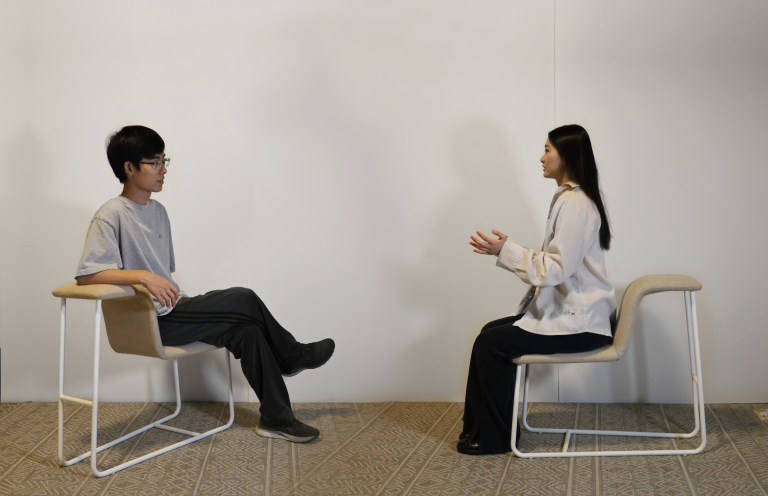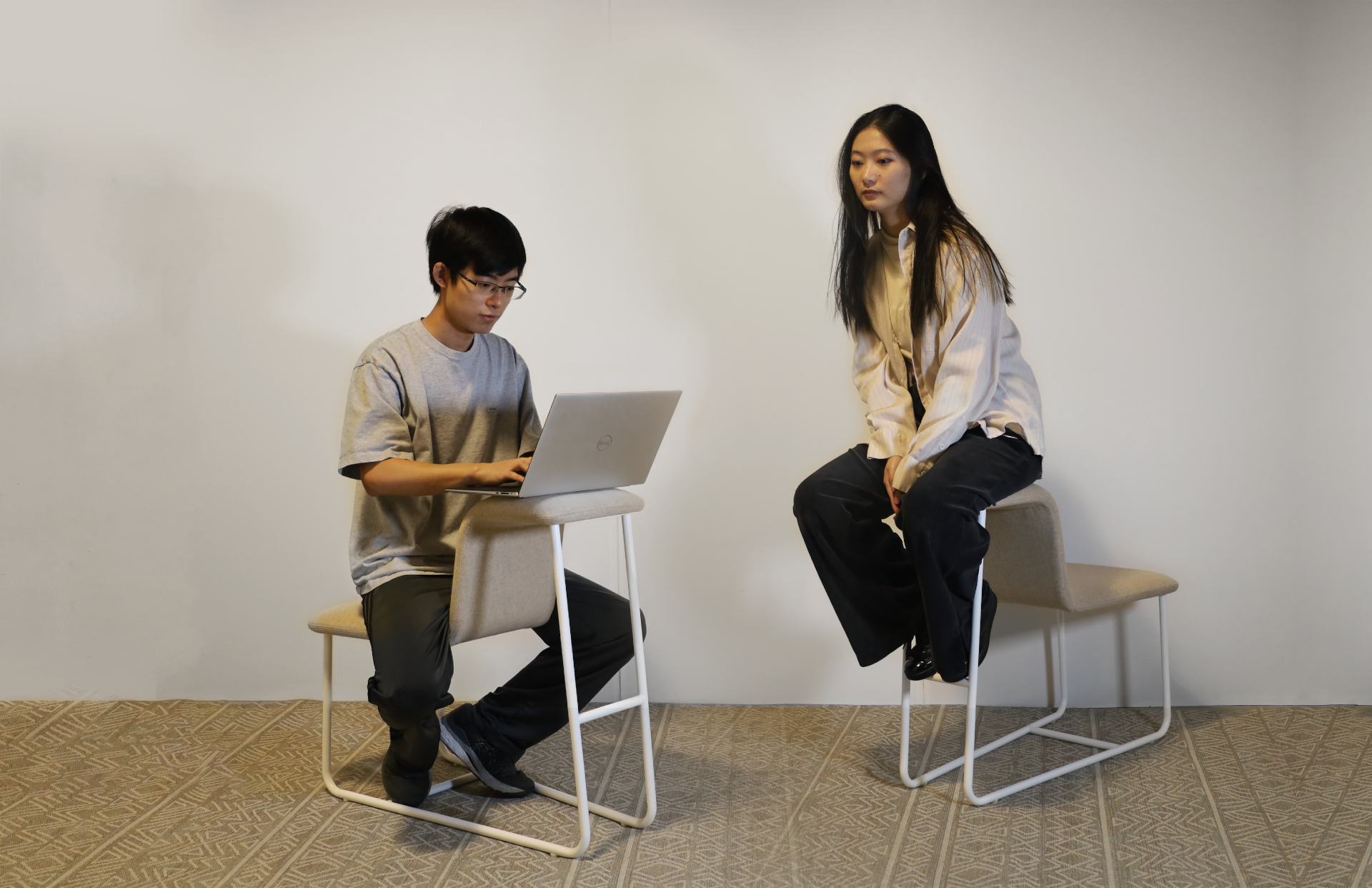 The multipurpose surface is combined with three surfaces: seating surface, backrest, and Flexi-surface. The Flexi-surface has different usages. When sitting face side, it is the armrest. When facing back, it is a desktop. When Skates is used as a stool, it is the sitting surface. Moreover, Flexi-surface is also the handle to drag the chair all around the shared open spaces in the offices.