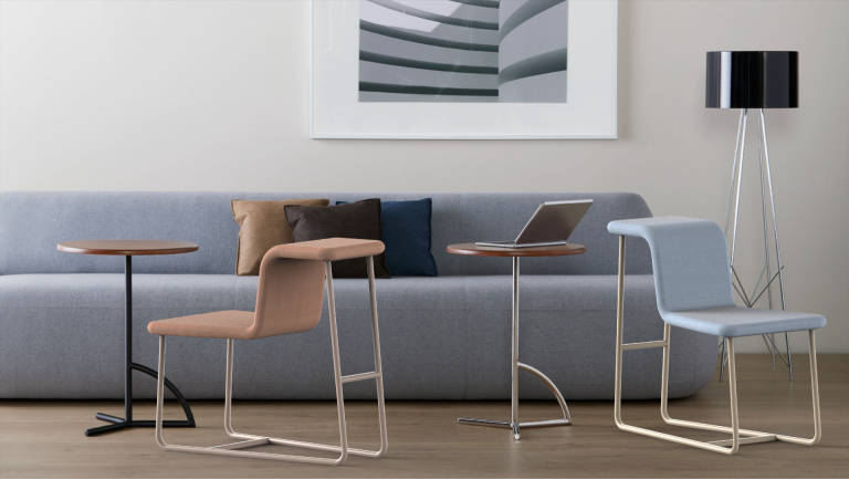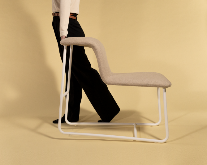 Skates is a versatile chair designed for shared open spaces. “Skates” refers to its special affordances to dance around different needs and environments. It has two elegant “skating blades” and a multipurpose surface. It is designed to be casually shared, easily moved, and artfully arranged into any ad-hoc working space.