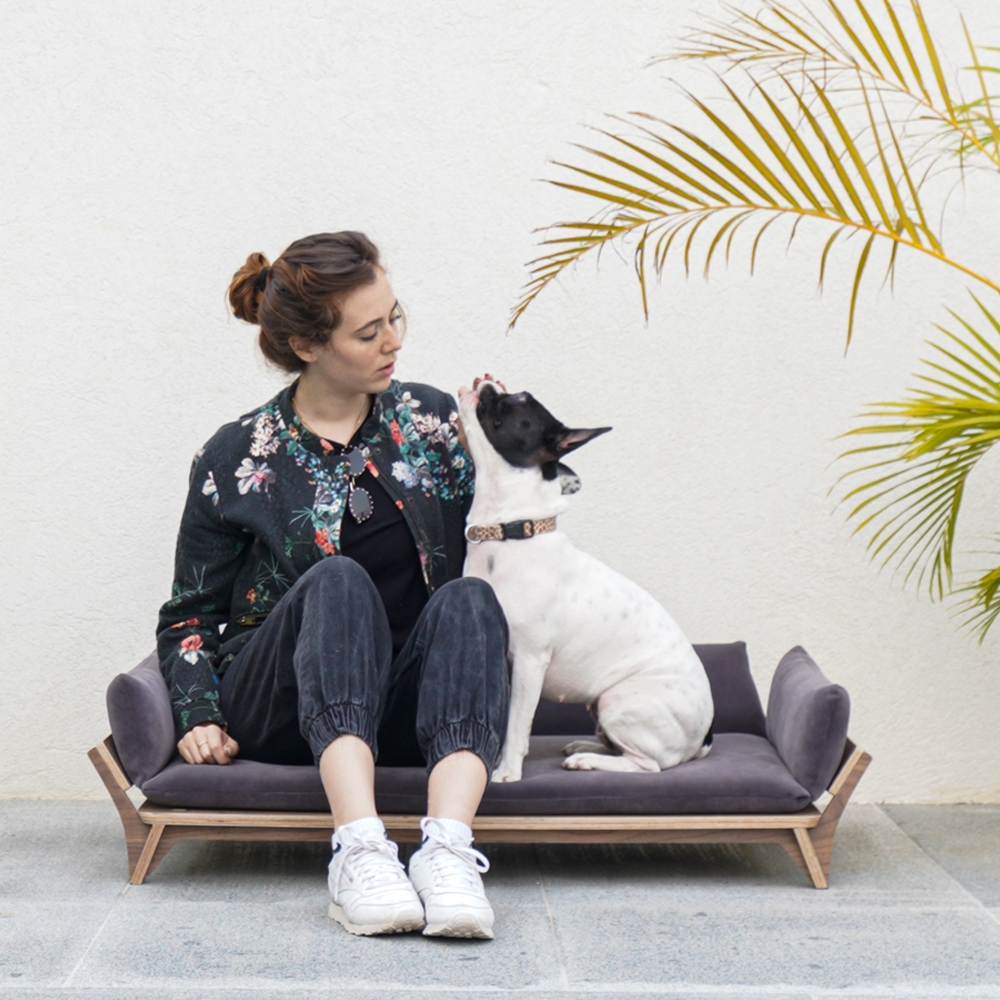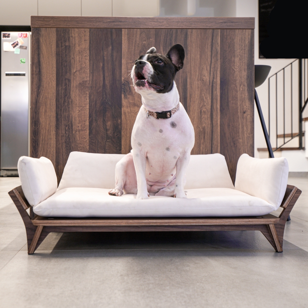 The sofa provides the dog with a special corner of its own, encourages the dog and the people to share interactions, by enabling them to pass time sitting together. The design encourages the dog owners to position the product prominently in the home space.