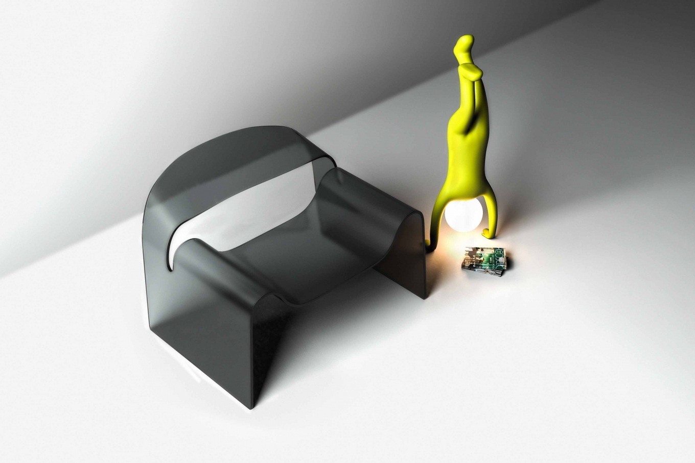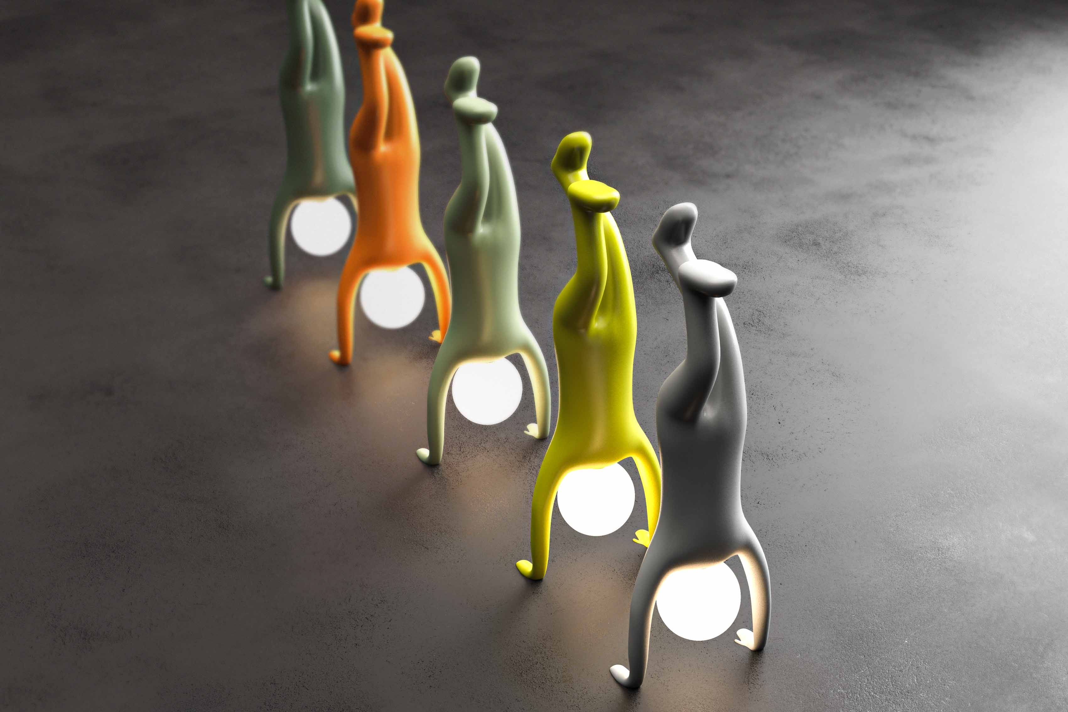 The Walk-man collection consists of a floor lamp and console. They both add an unforgettable experience within spaces, as the pieces stand out and speak for themselves. The console is attachable (by screw) to walls for support, both the console and floor lamp are made of FRP (fiber-reinforced plastic). These unique designs are customizable to fit in any space.