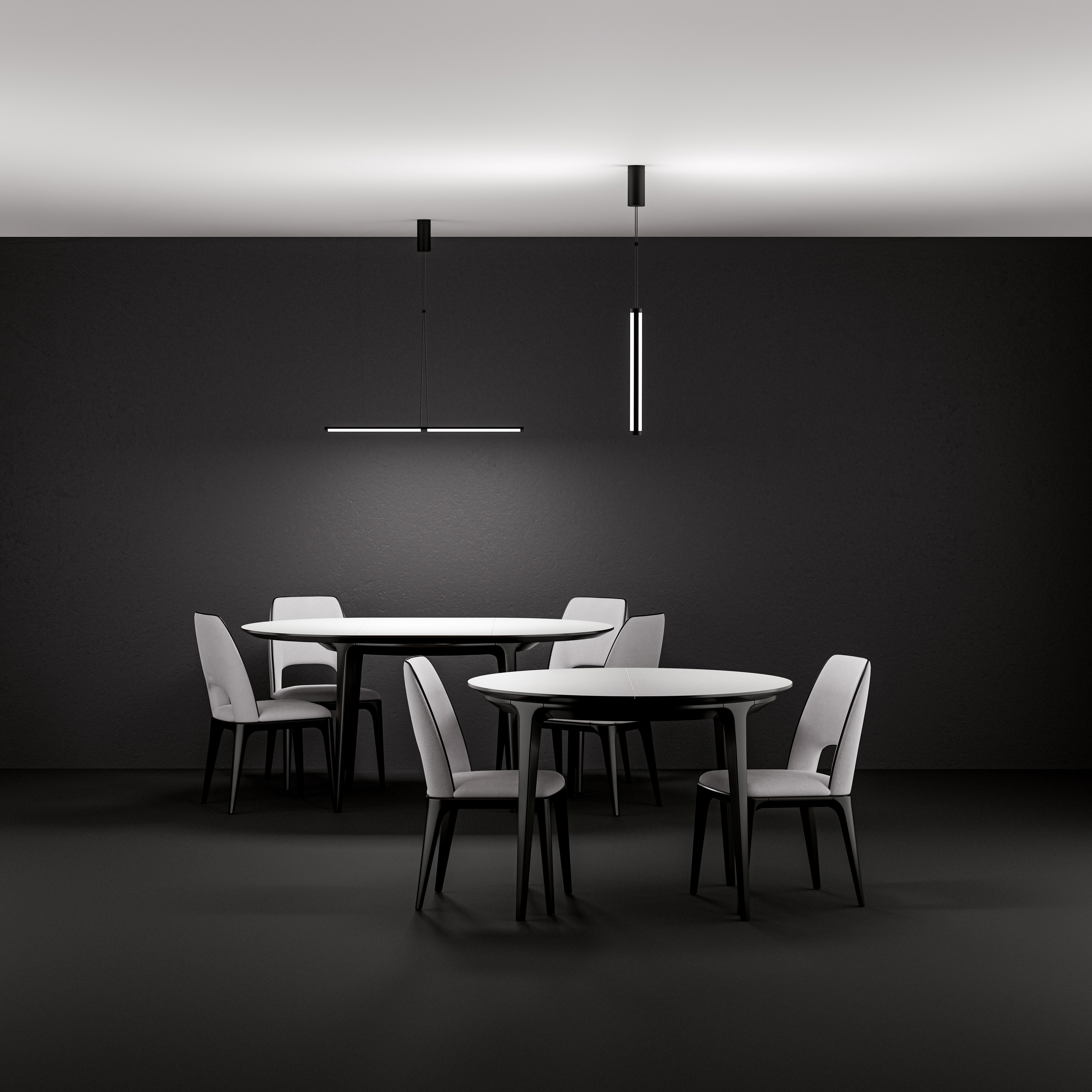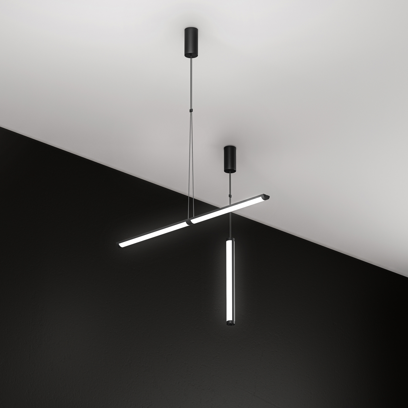 The fixture is designed in a unique way, which allows to transform it from general vertical source of ight to the horizontal source of functional light for work, creation and communication. Engineered construction with magnetic elements and bottom-centered wire bracing system enables to provide stable height level of the fixture for both horizontal and vertical configurations.