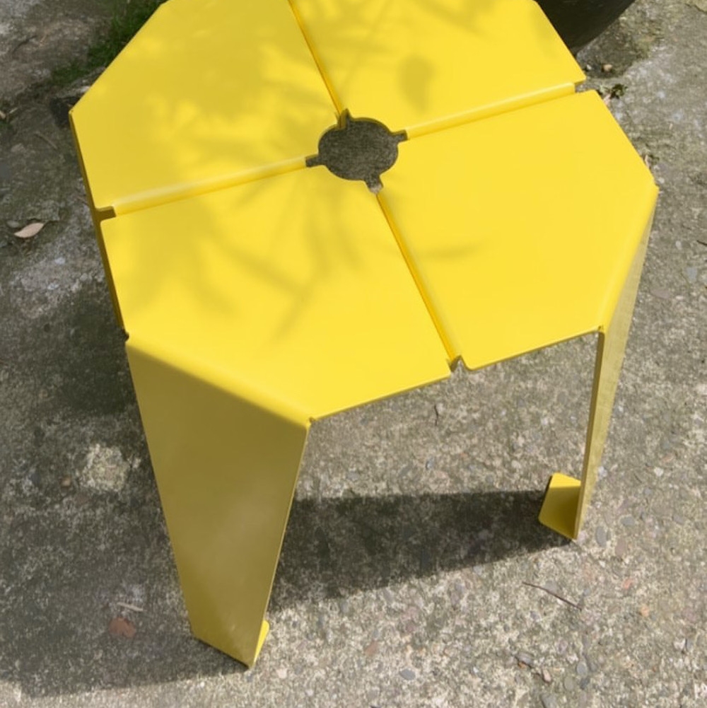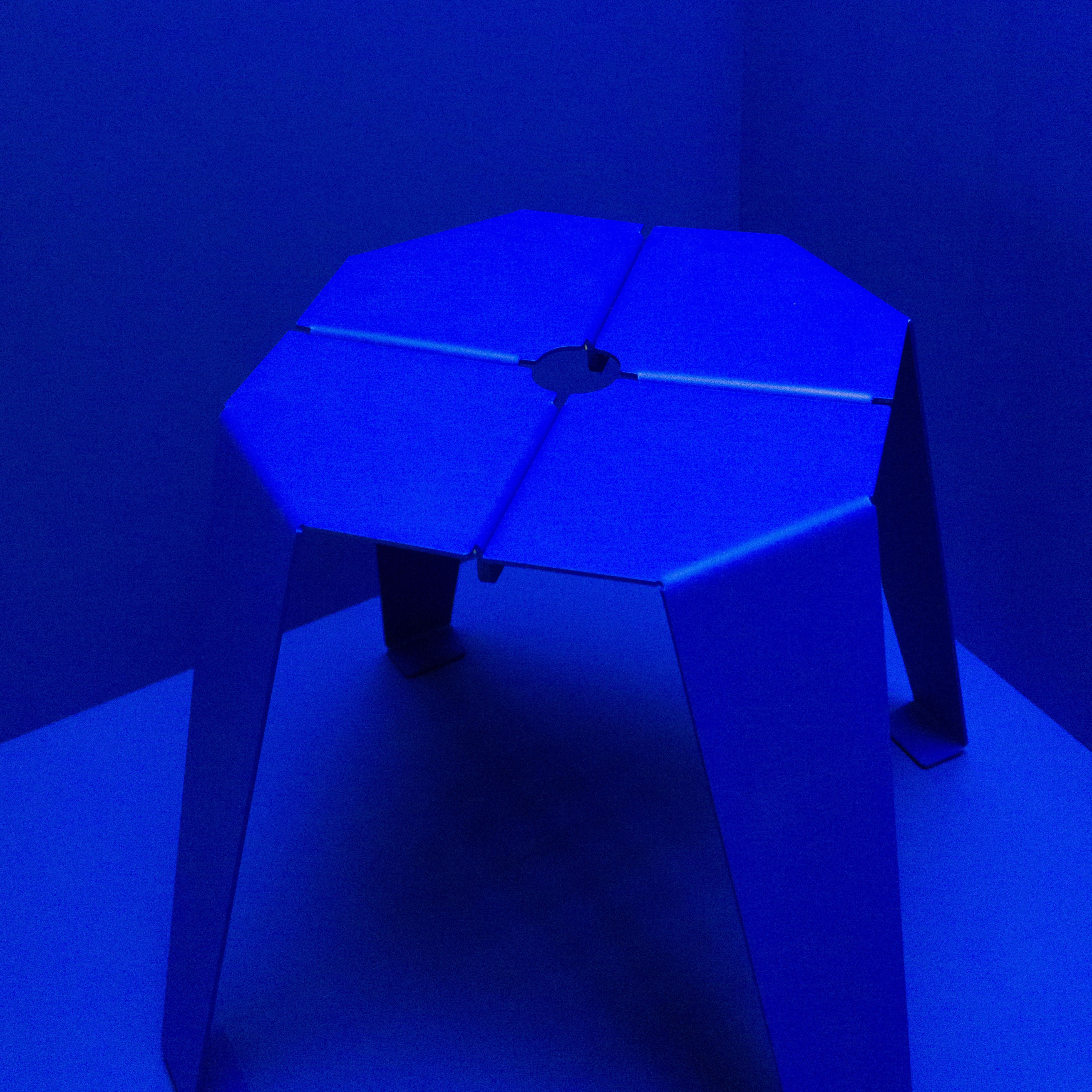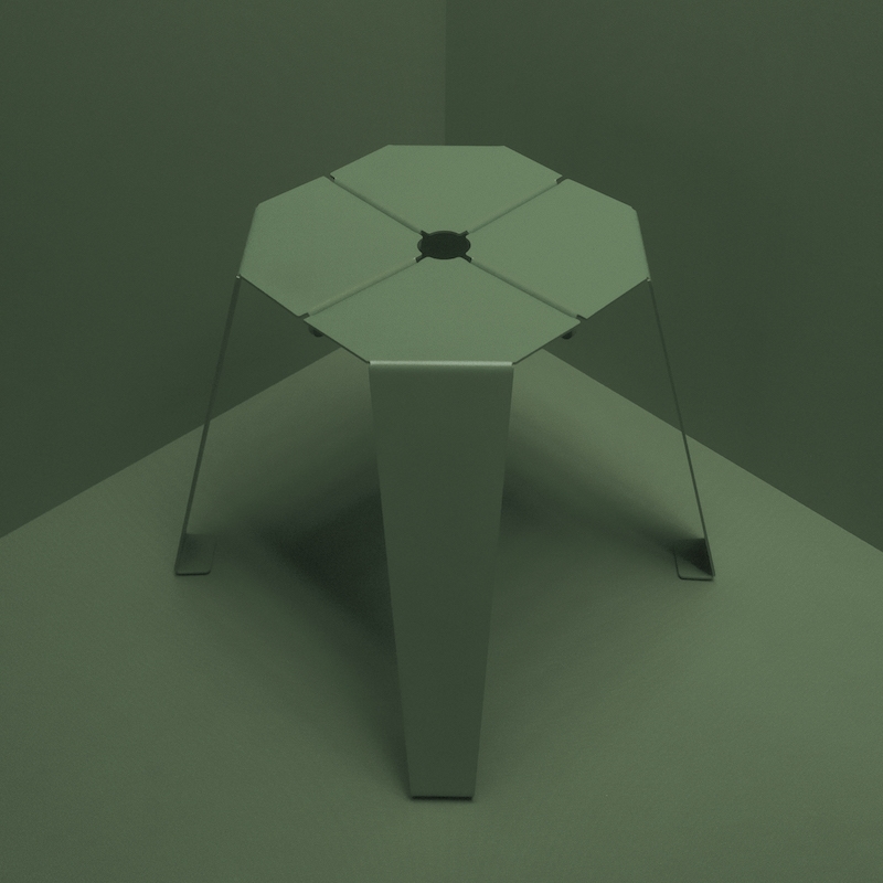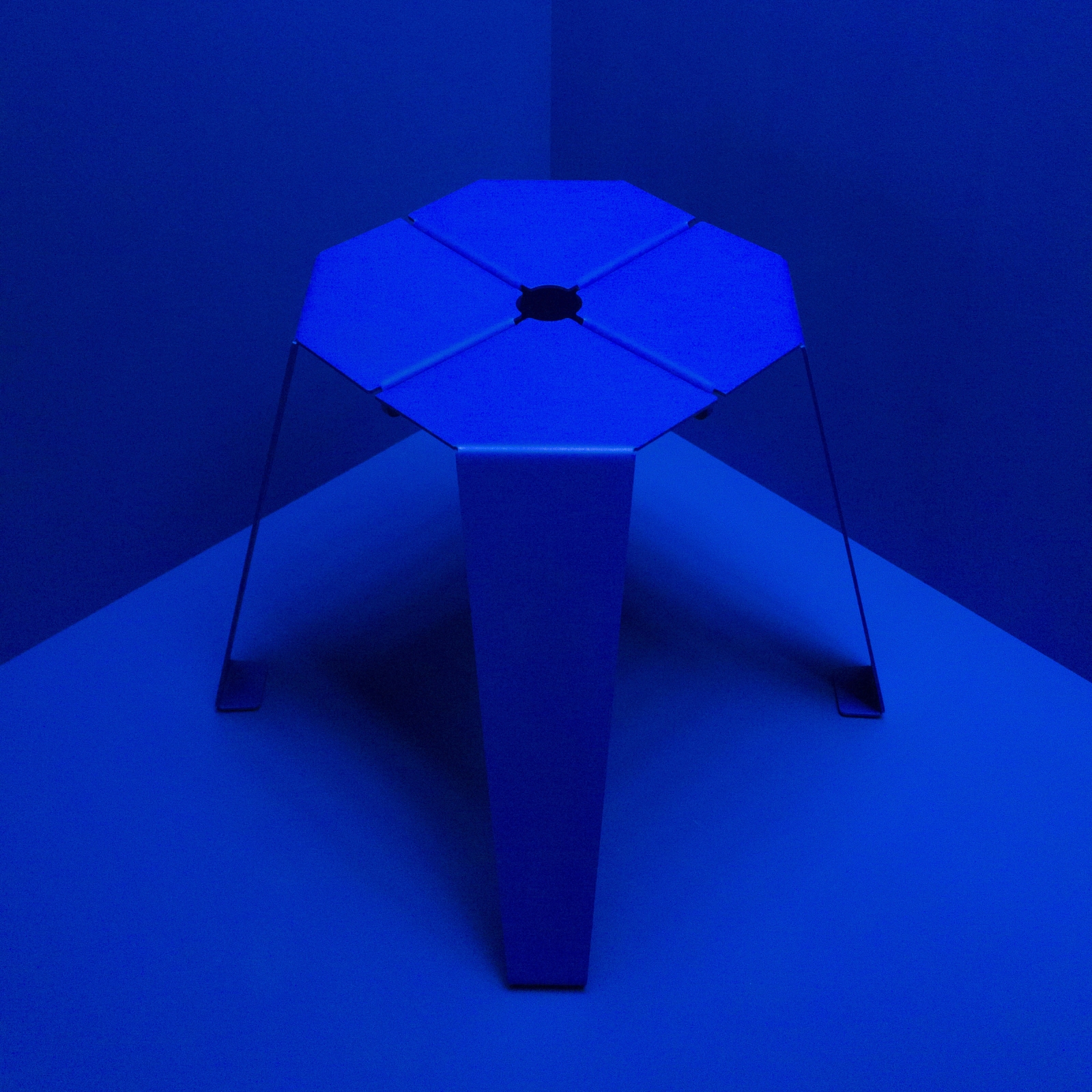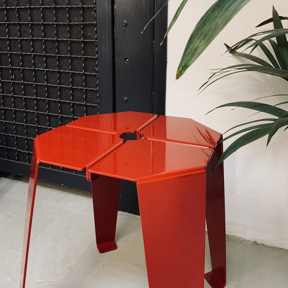 Made of four equal edged, laser cut and color powdered steel parts, op10 stool can be used, for example, as a simple stool, side table, nightstand or coffee table. Reduced to the essentials, it fits into any style of home. Designed and manufactured in Düsseldorf / Germany.