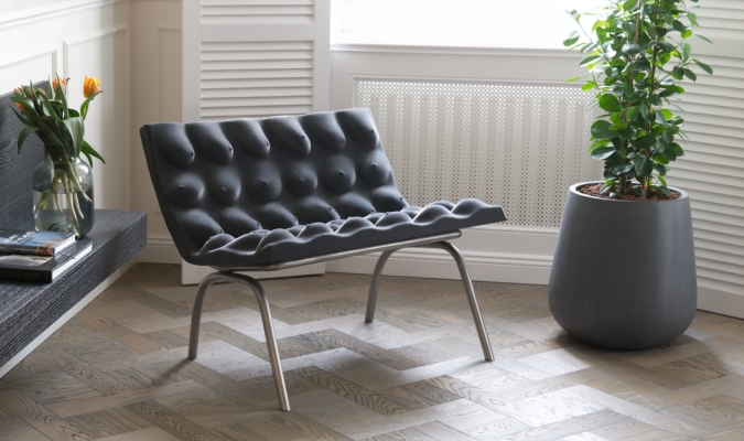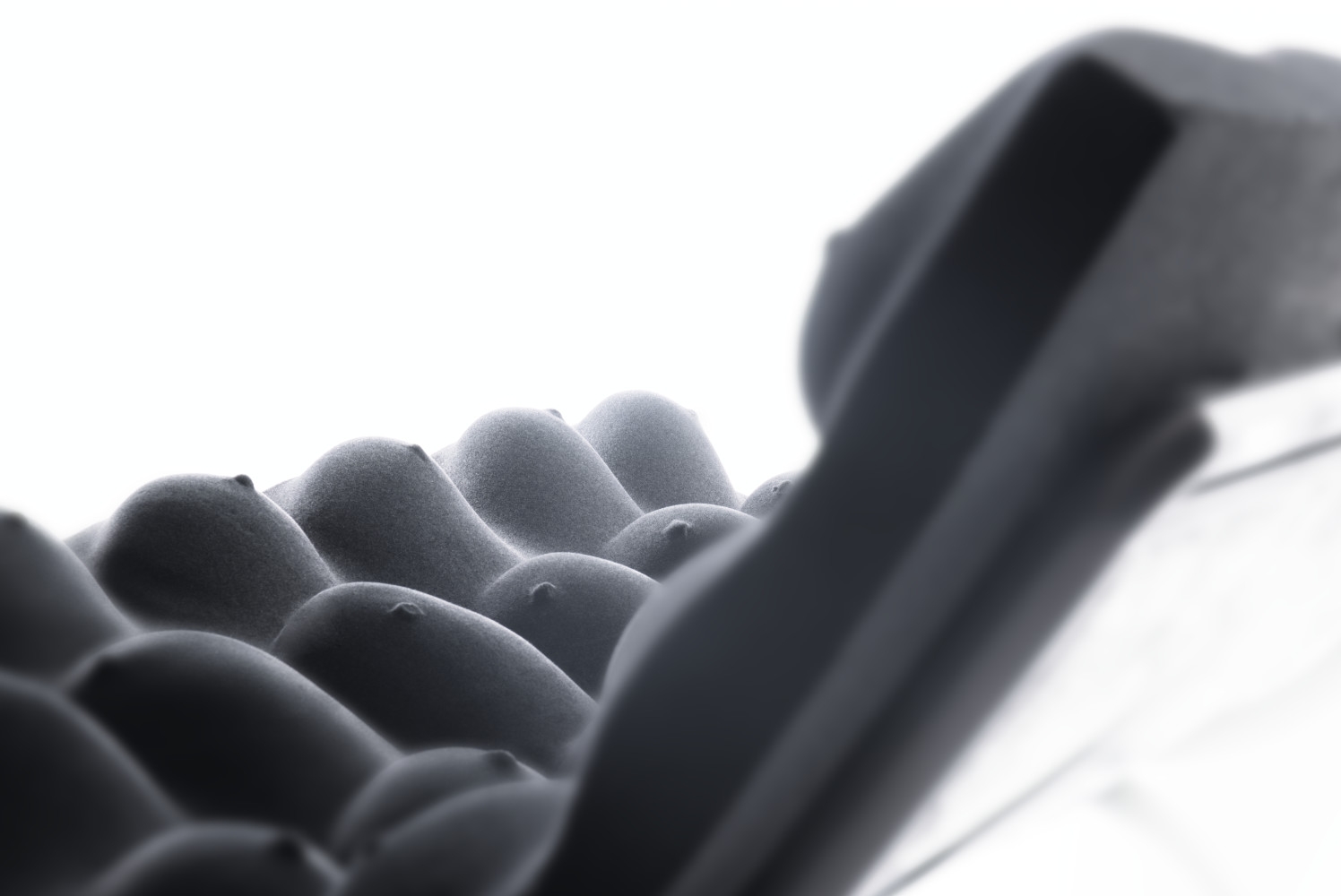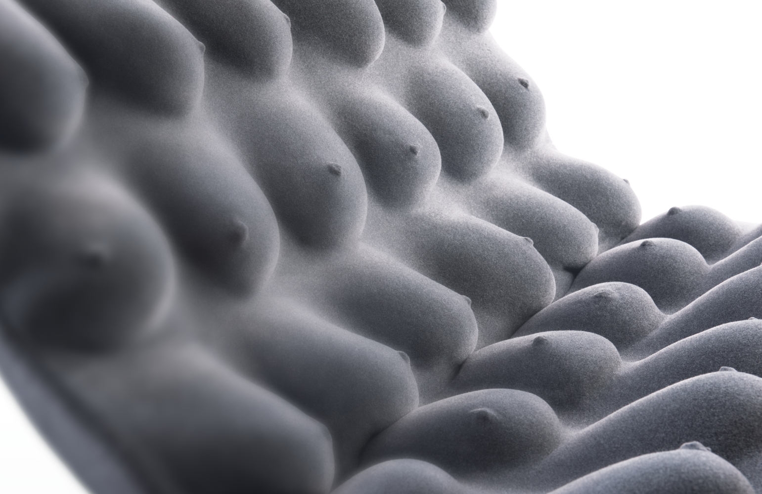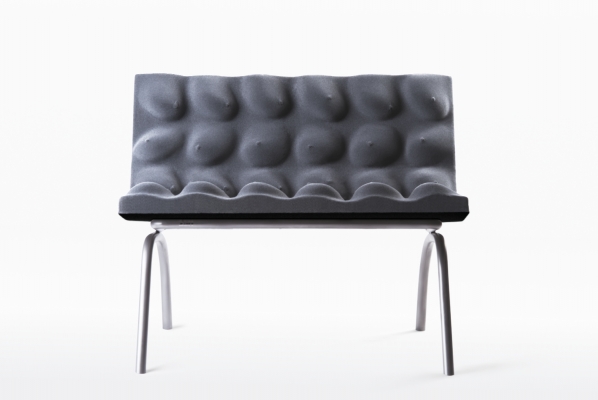 Chair made of casted women breasts. The chair is a response to the current "over-referencing" design that recycles the same concept of minimalism over and over. When designing the chair we moved to primitivism 2.0, returning to nature, liveliness and human essence. Just like a droplet assuming a shape as energetically advantageous as possible, unique each time depending on its environment, even humans respond to the heaviness (or lightness?) of the moment. The metaphorical droplet of life, the one we wanted to embed into the product, is the female breast. Well, actually, breasts. Everyone reacts to the chair differently, reflecting their own view of the world. For the artist, the depiction of this female body element is not erotic, but rather a return to the connection with nature, the non-digital world and the anti-parameterization of objects around us.