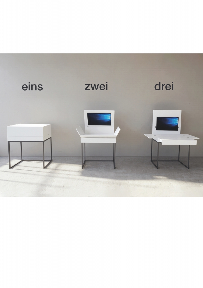 is a newly designed office furniture which is customized for daily use in your home office. As working from a private space can pose a challenge we need a functional working area however how much space our house, apartment or room can spare. The ONE offers a perfect solution: By folding open the side parts of this adaptable and versatile furniture it reveals its convenient working surface. The lid converts into the back side with a built-in monitor. After the work is done you can simply fold the ONE together: the workstation turns into a pleasant piece of relaxation.