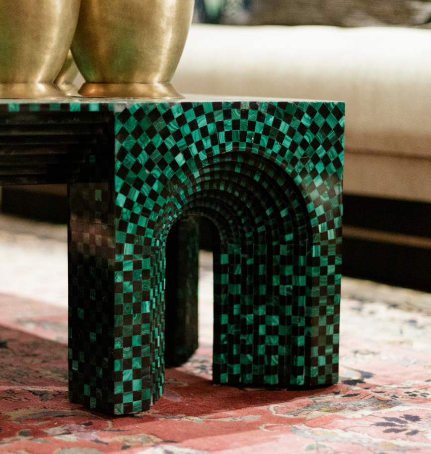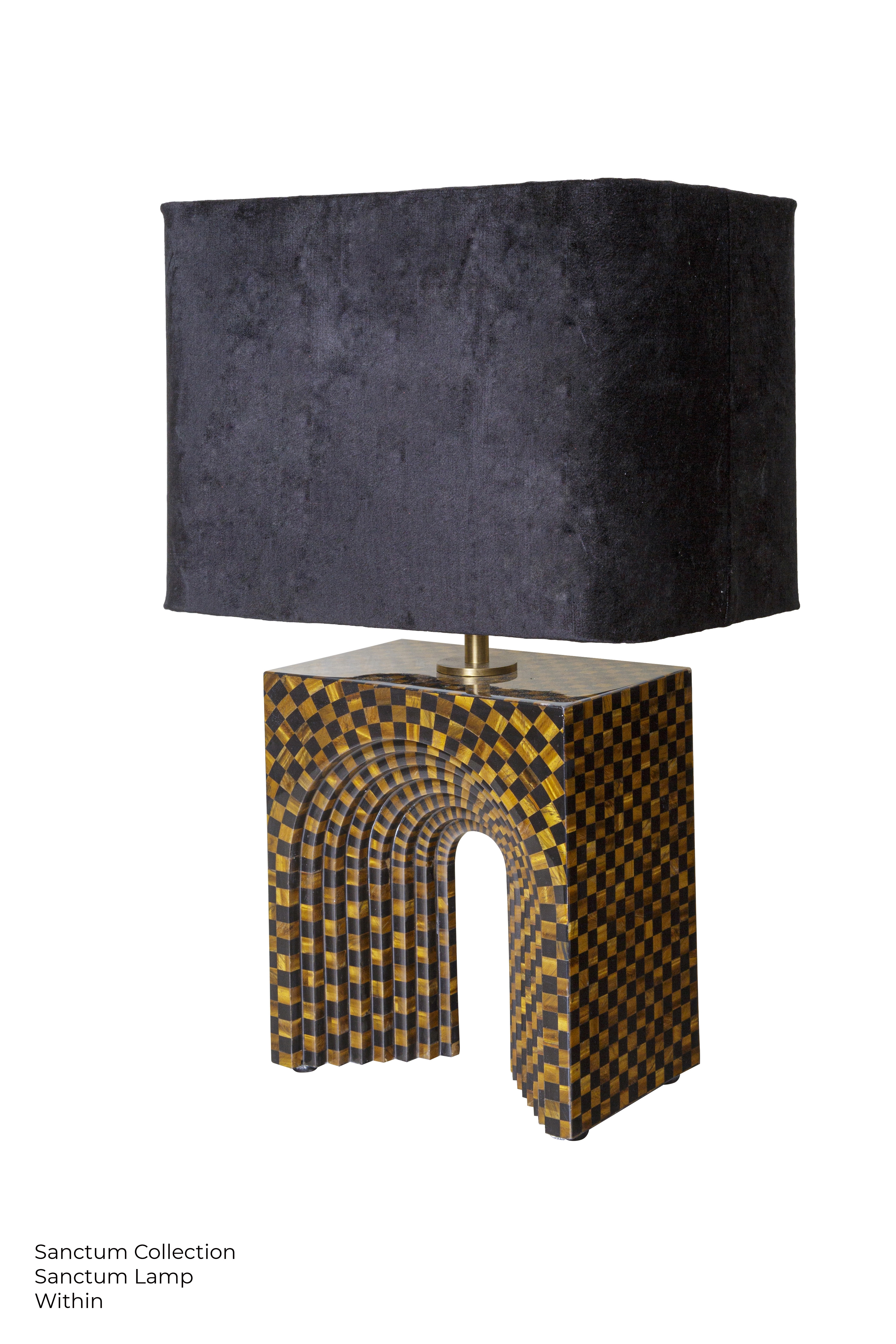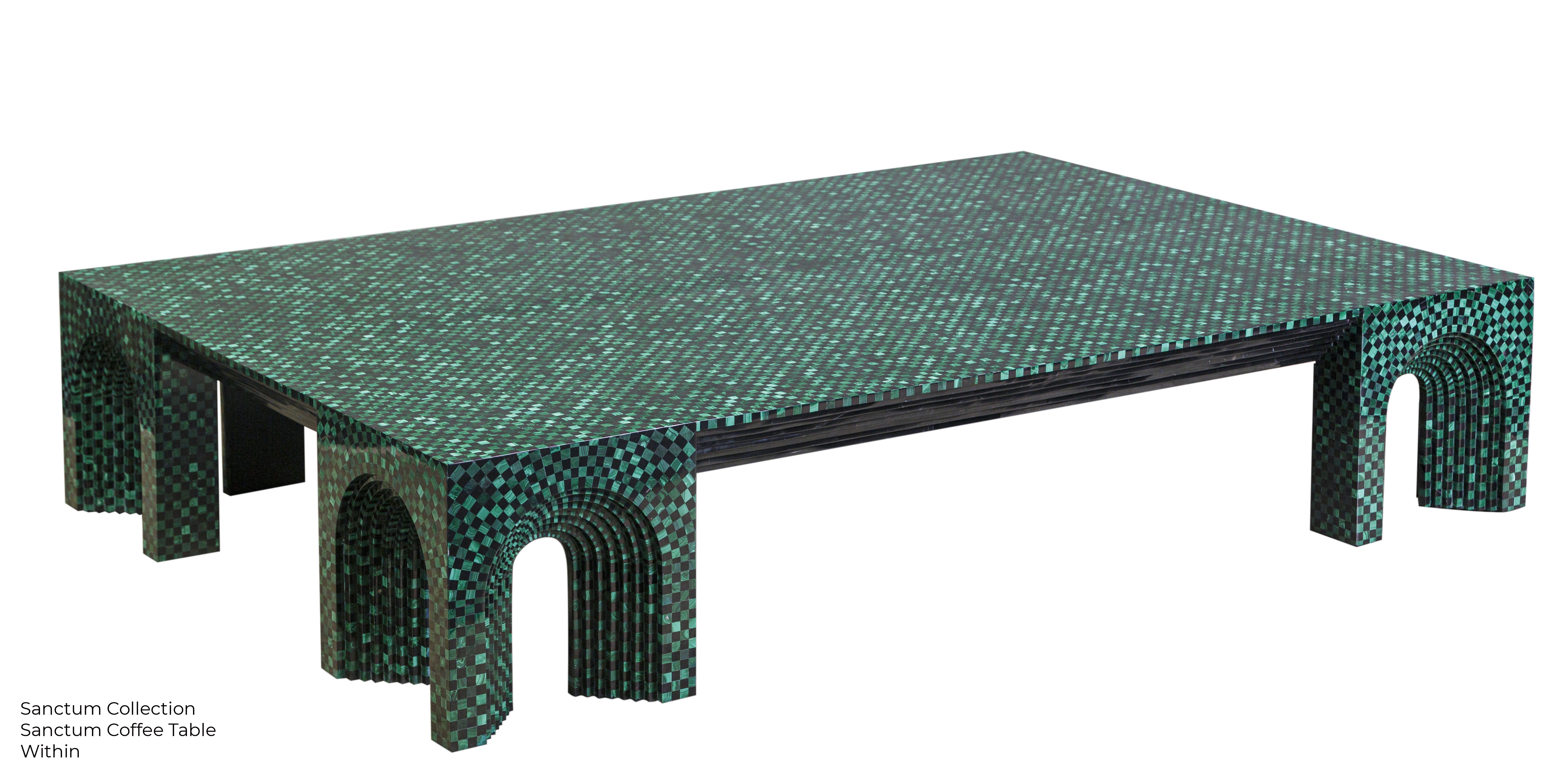 The ‘Sanctum’ Collection features a coffee table, a side table and a table lamp.