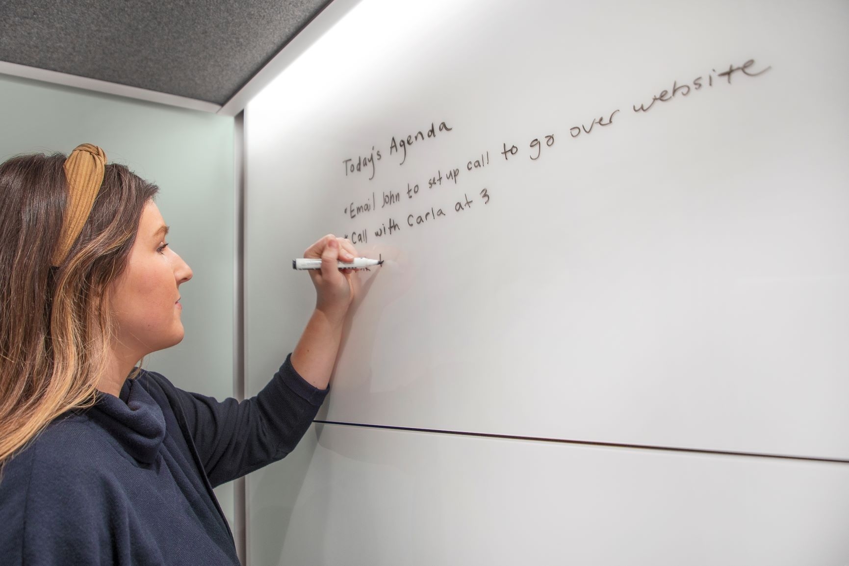 The design flexibility of the Work+ allows you to choose from a variety of panels, finishes, and colors creating a 'Space To Be You.' Standard transparent glass doors keep your workspace inviting while users benefit from the continuous fresh air exchanges within. Wall panel finishes and graphics can be updated, and casters make it easy to relocate the workspace. Our product is built to be a long-lasting investment that can adapt with your changing needs.