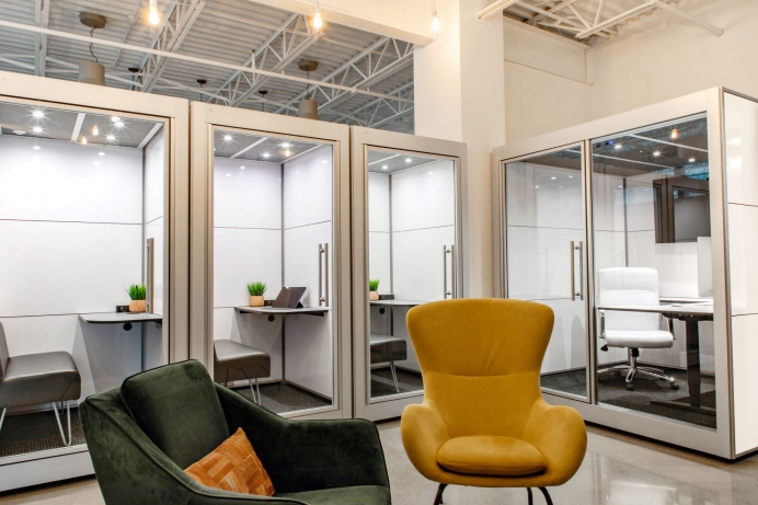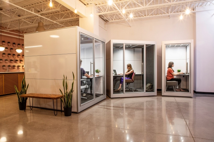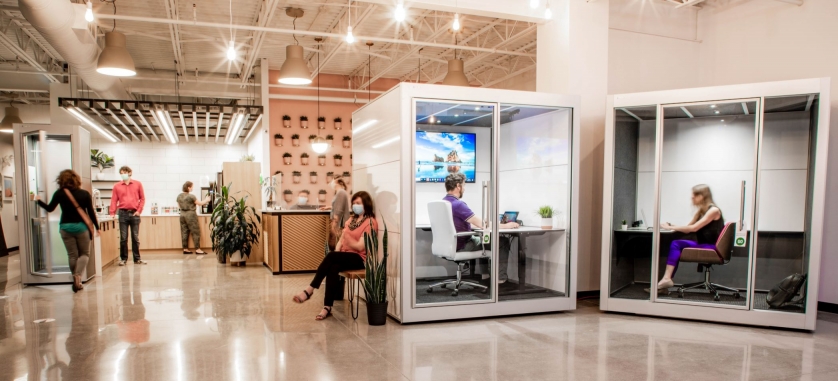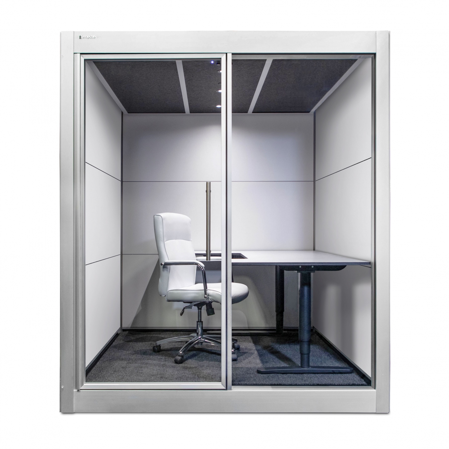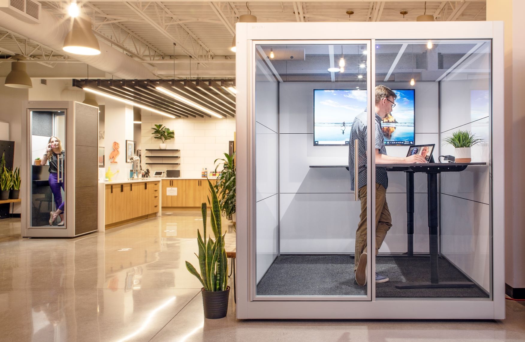 Find a peaceful space to focus while remaining visible and connected to your team with the SnapCab Work+. This pod is designed to offer it's user an optimal work experience: a concentrated quiet space within, but with the visibility and opportunity to easily connect with co-workers.