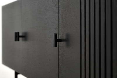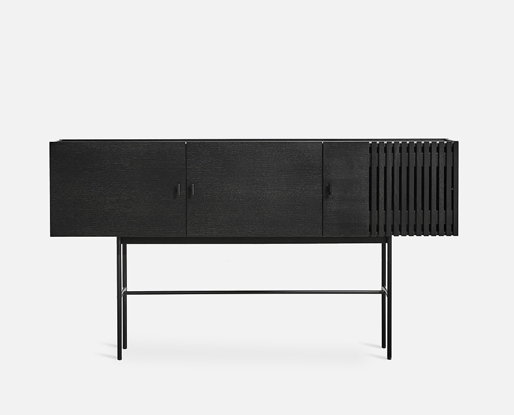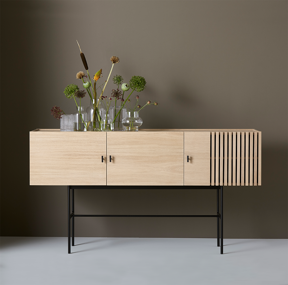 The series is inspired by the wooden slate cladding found in modern architecture. With its geometric shape and horizontal slats, Array creates a strong visual effect from catching both light and shadow in the depth of the slats. The illusion of transparency is intended to create a feeling of growing curiosity as you get a glimpse of what is hidden behind the closed doors.