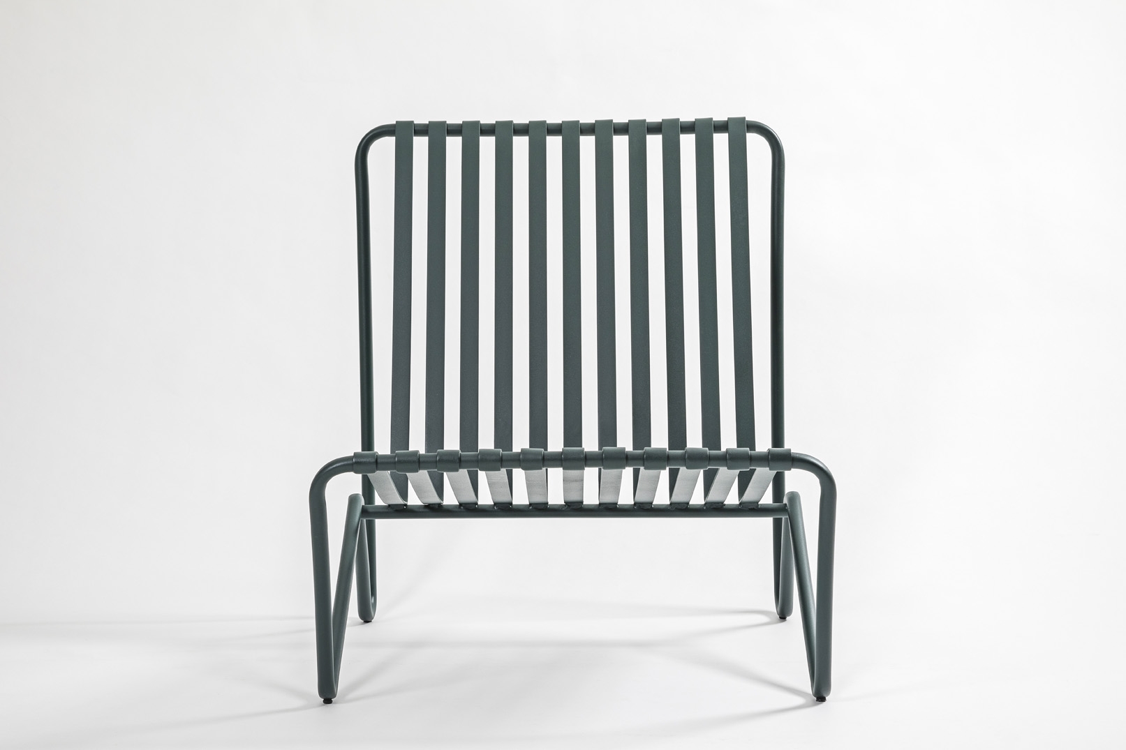 This timeless outdoor seatings family in stainless steel and colored nautical ropes is designed with in architectonic and geometric reasoning. Framed in a square mesh, the shape and continuity of structural lines suggest fluidity and all elements constitute its functioning. Metallic profiles are sized to ensure stability with minimum material. This sustainable orientation besides allowing affordable products, promotes a light and simple aesthetics.