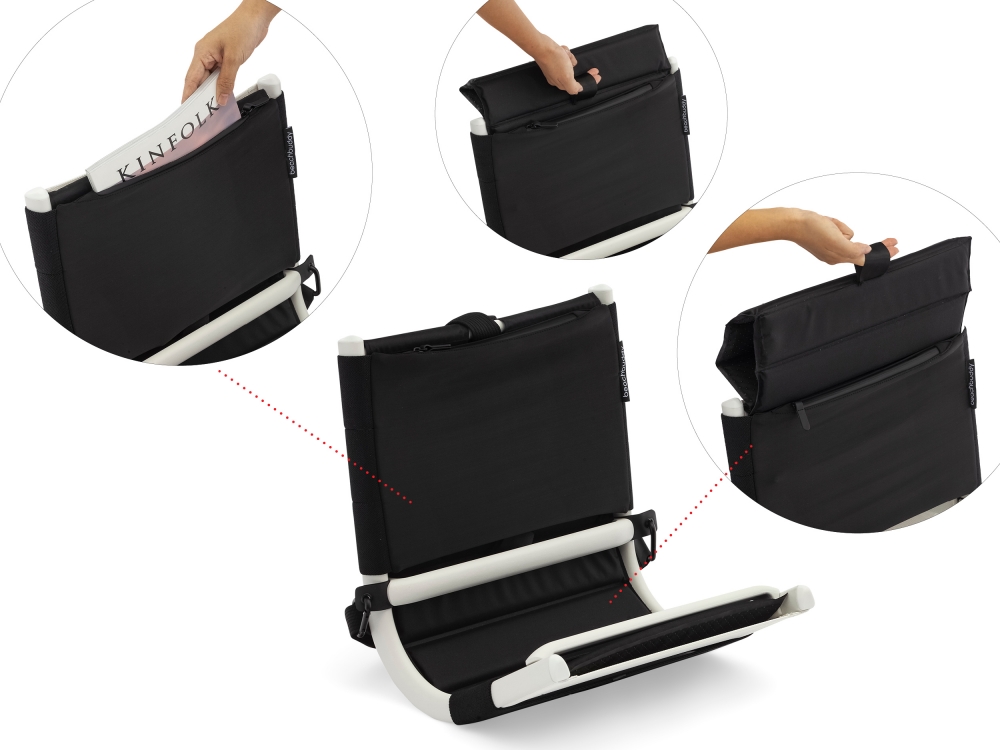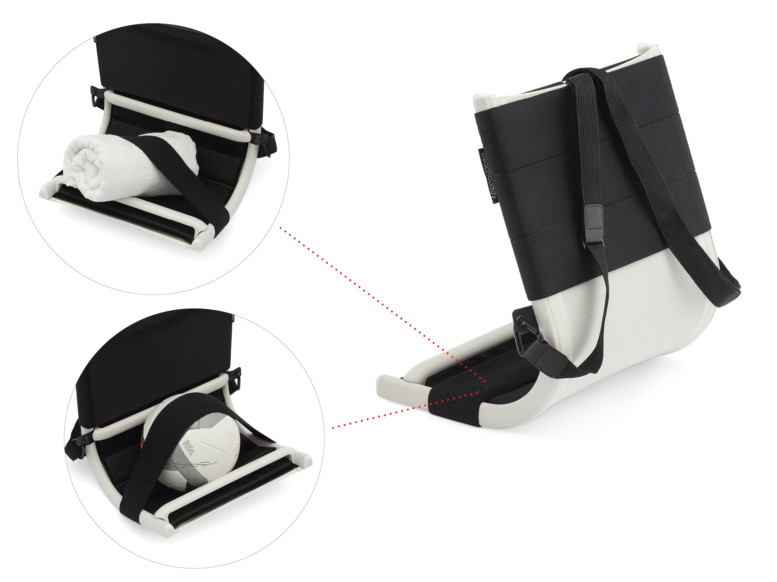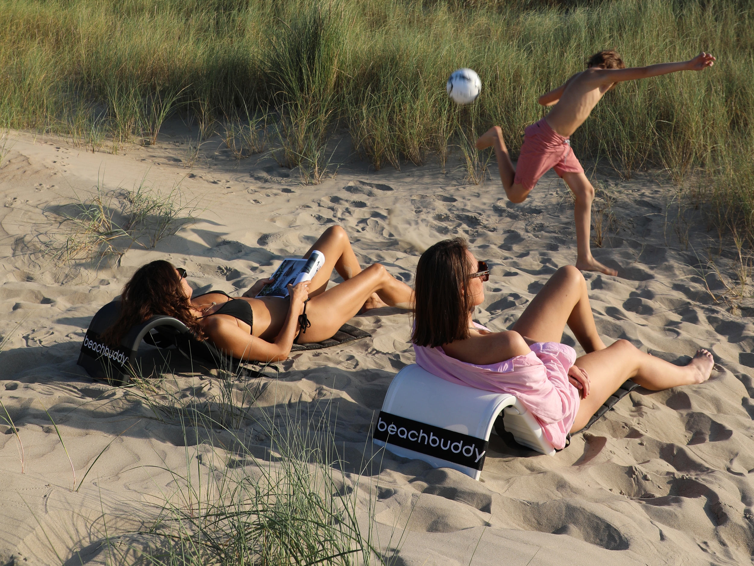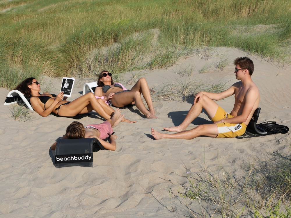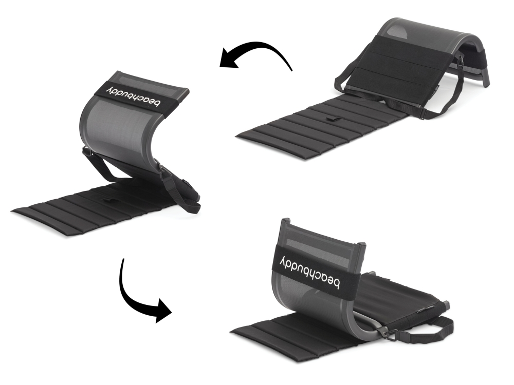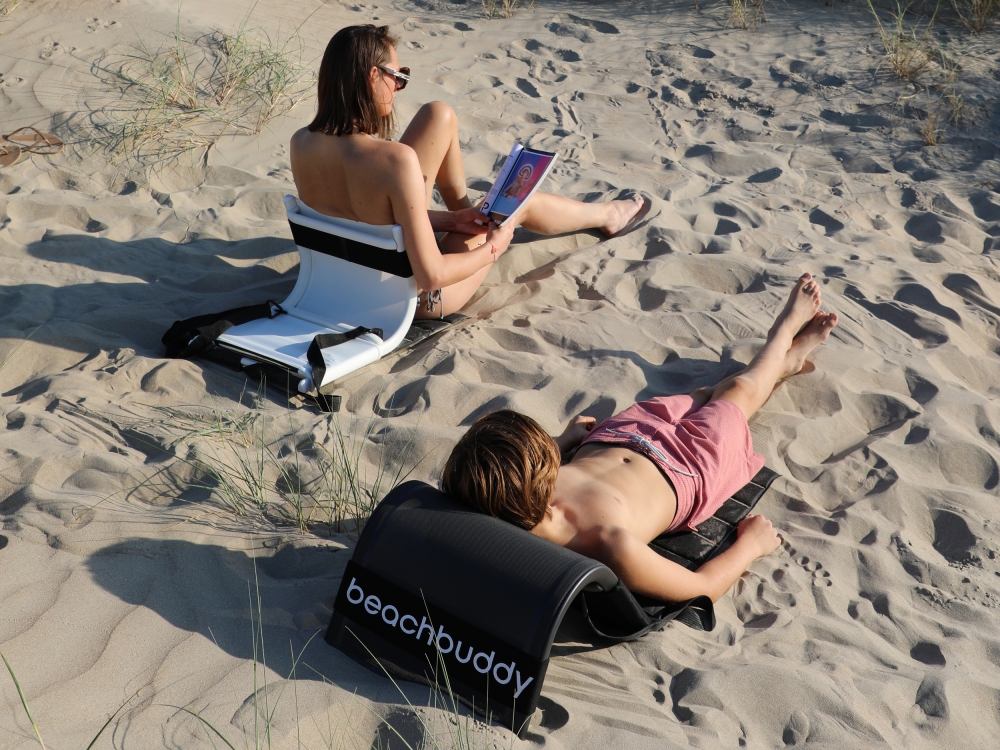 When you are at the beach or the park and you want to lay back and relax in the sun or sit up straight and read a book, the Beachbuddy is easily transformed simply by flipping over the frame. From a comfortable relax seat in less then no time to a sun bed! It’s also very easy to carry due to its low weight and extra back straps. Suntan lotion, sunglasses, magazines or any other accessory can safely be stored in a customized bag. A handy elastic strap allows you to easily carry a towel or football. As with all multifunctional products we had to carefully reasearch the ergonomics envolved in using the Beachbuddy as a relax seat, as a sunlouonger or when carrying the product on your back. While doing so the challenge was to design a product that was technically superior, durable, recyclable, looked very appealing and affordable. Finally, we had to spend a lot of time finding the right solutions to make this product user friendly and easy to use. For example, the bag and the elastic strap add quite a bit of functionality to the product and it was vital that that this was very user friendly.