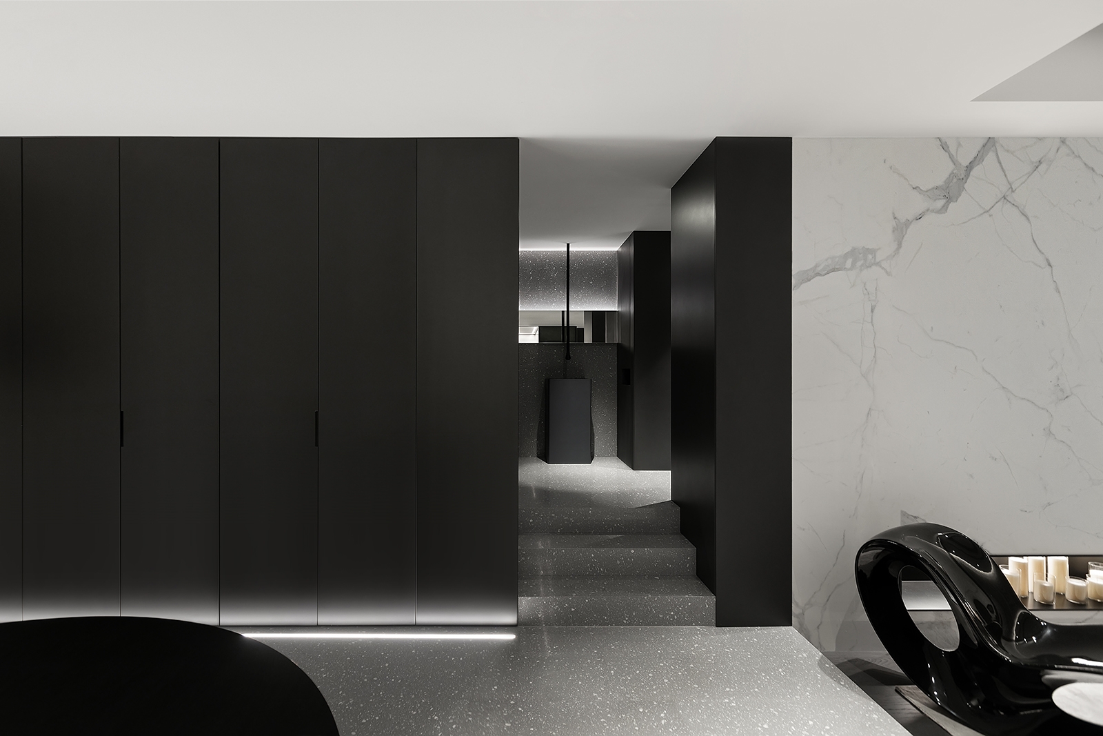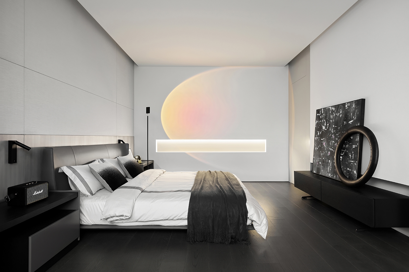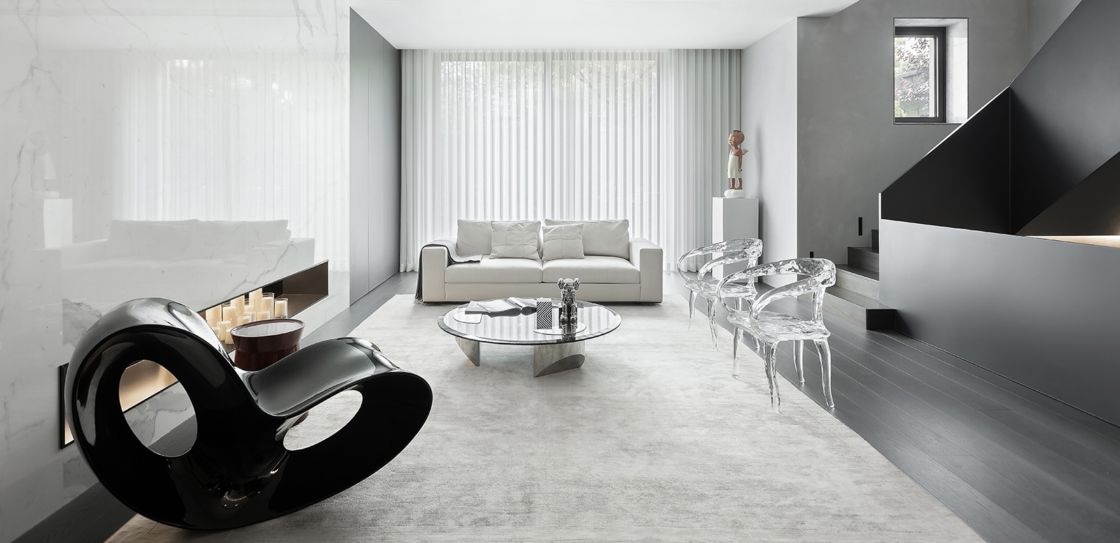 The story of this house starts from a beautiful encounter, with a beautiful girl. The owners of this case are the generation after 90s. Senior taste will be refined in luxury extraction, let the minimalist be more pure, and explore the coexistence of fashion and elegance, finally change a single boring aesthetic appeal. Minimal stylish furniture matches with design chair and tea table, accord with the current fresh city soul. It continue the 5 high strength of high appearance level, high performance, high technology, high value and high environmental protection.