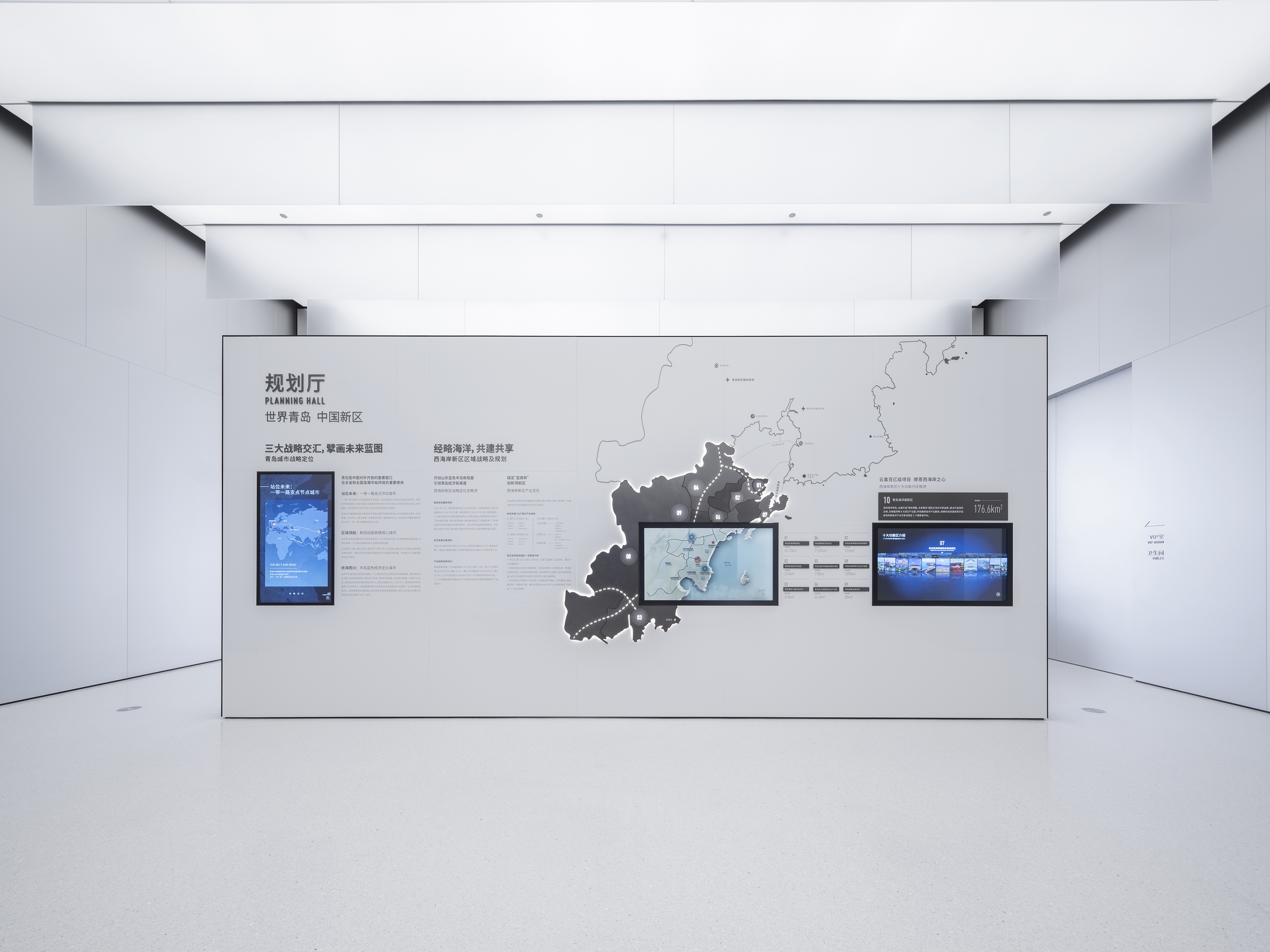 Located in Huangdao, Qingdao, the “International Marine Intelligent Park Exhibition Center” serves as the main exhibition center for industrial plots in this region. It aims to create a display space with full science and technology sense, and depict a fascinating picture of the future pilot area of marine technology, in a step-by-step manner.