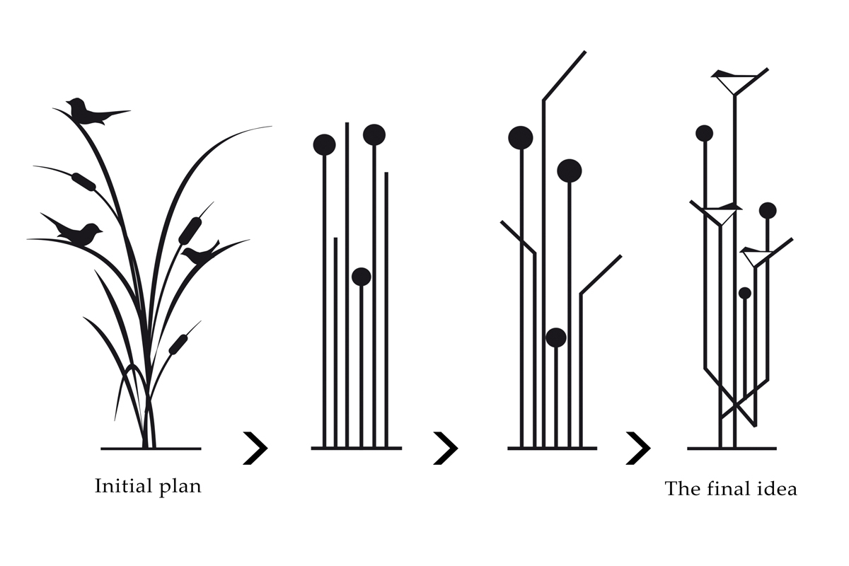 In today's modern life, we tried to be able to establish an element of nature in the internal/indoor design which both is lampshade and observed in form of statue while being in a silent and quiet state. For this reason, we could picture the calmness of the sparrow on the cane and reed fields considering the sparrow design paintings in nature. The body of the sparrow has been made of recycled plastic and the origami technique was applied.