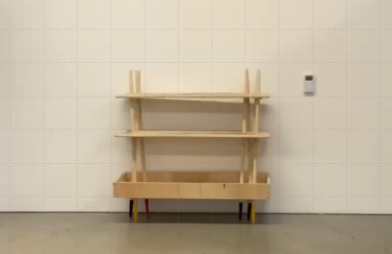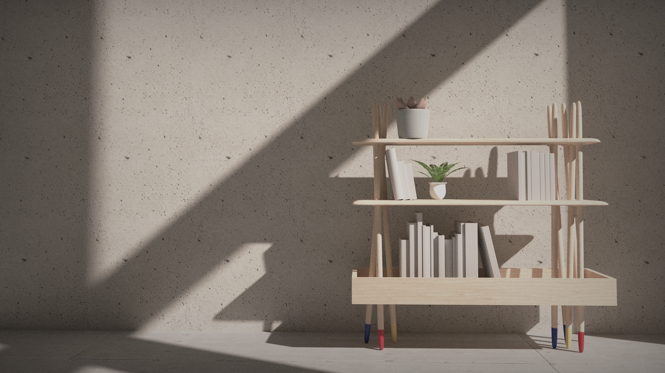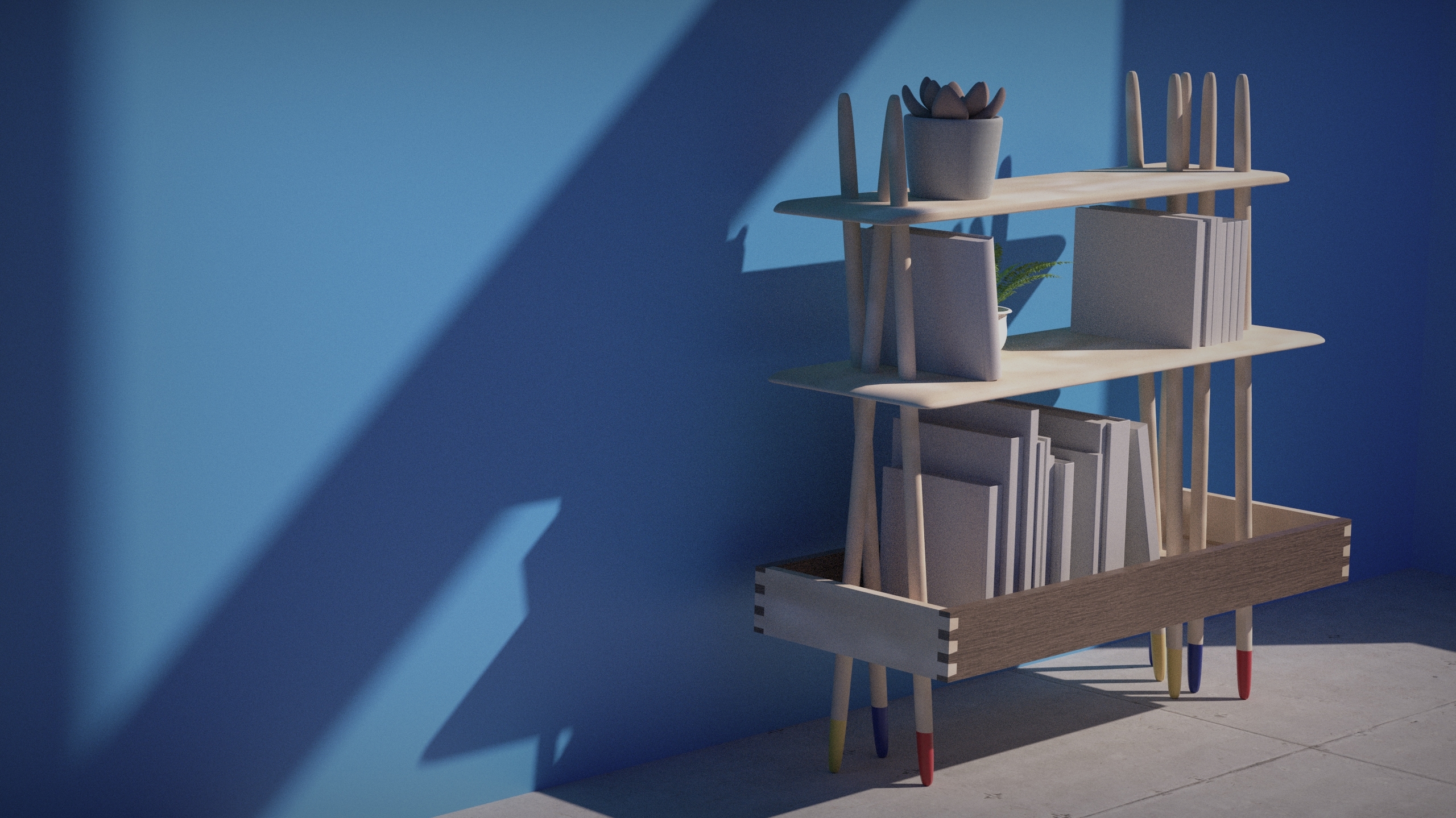 The Mikado Shelf is a freestanding shelf. The purpose of this design is to be a piece of art of storage. It aims to make people smile and be a delighted point of any environment it got placed in.