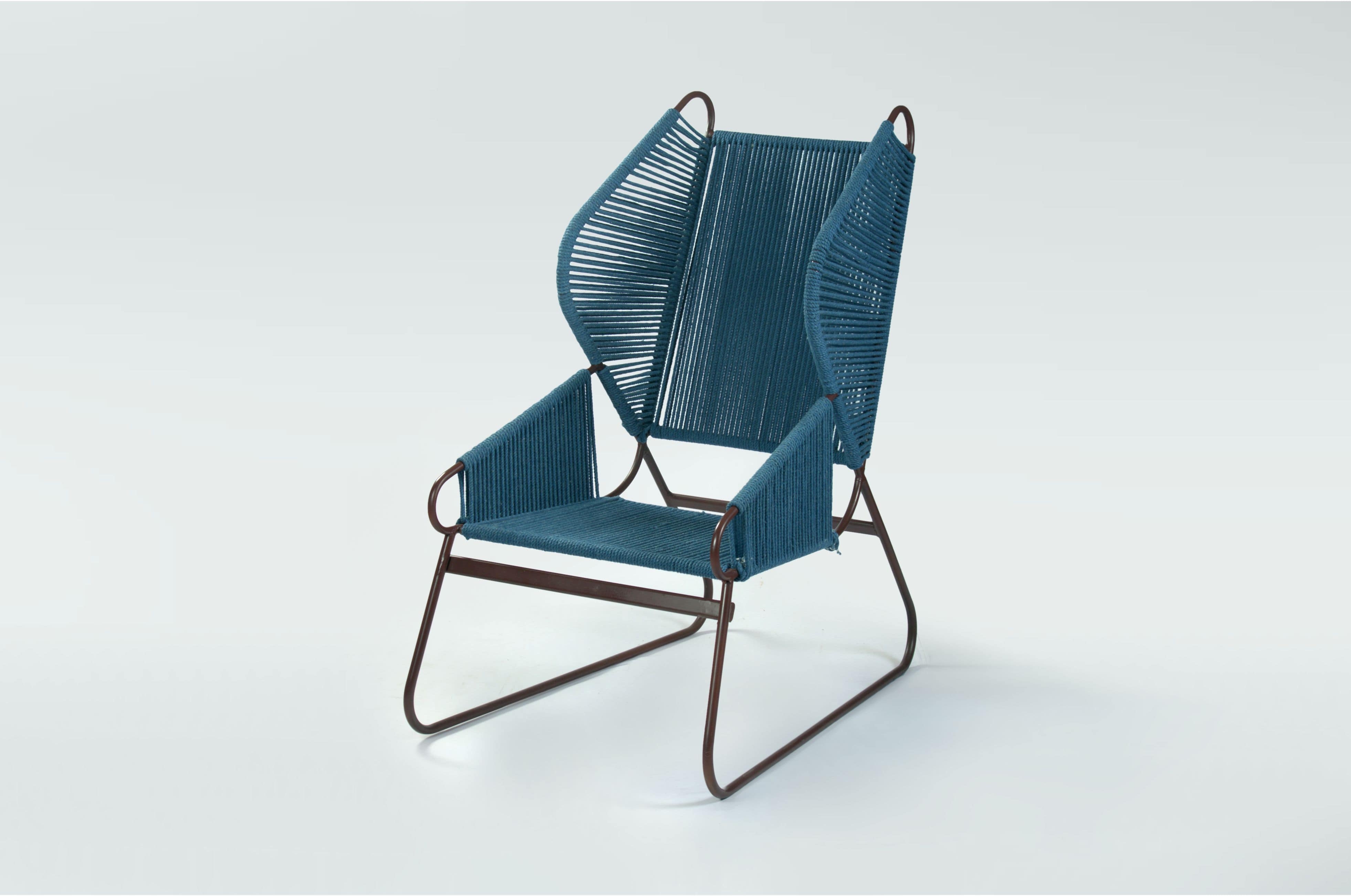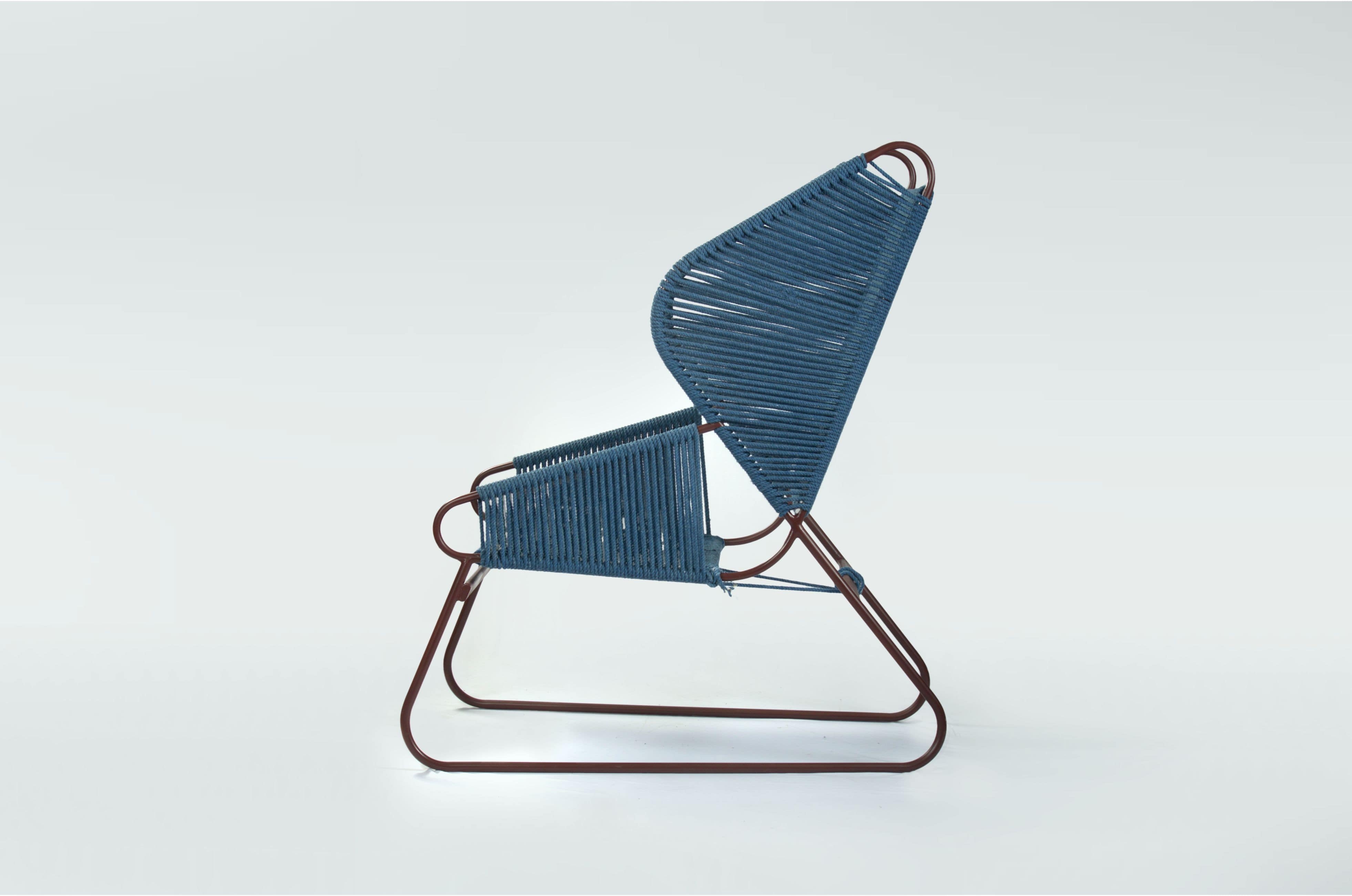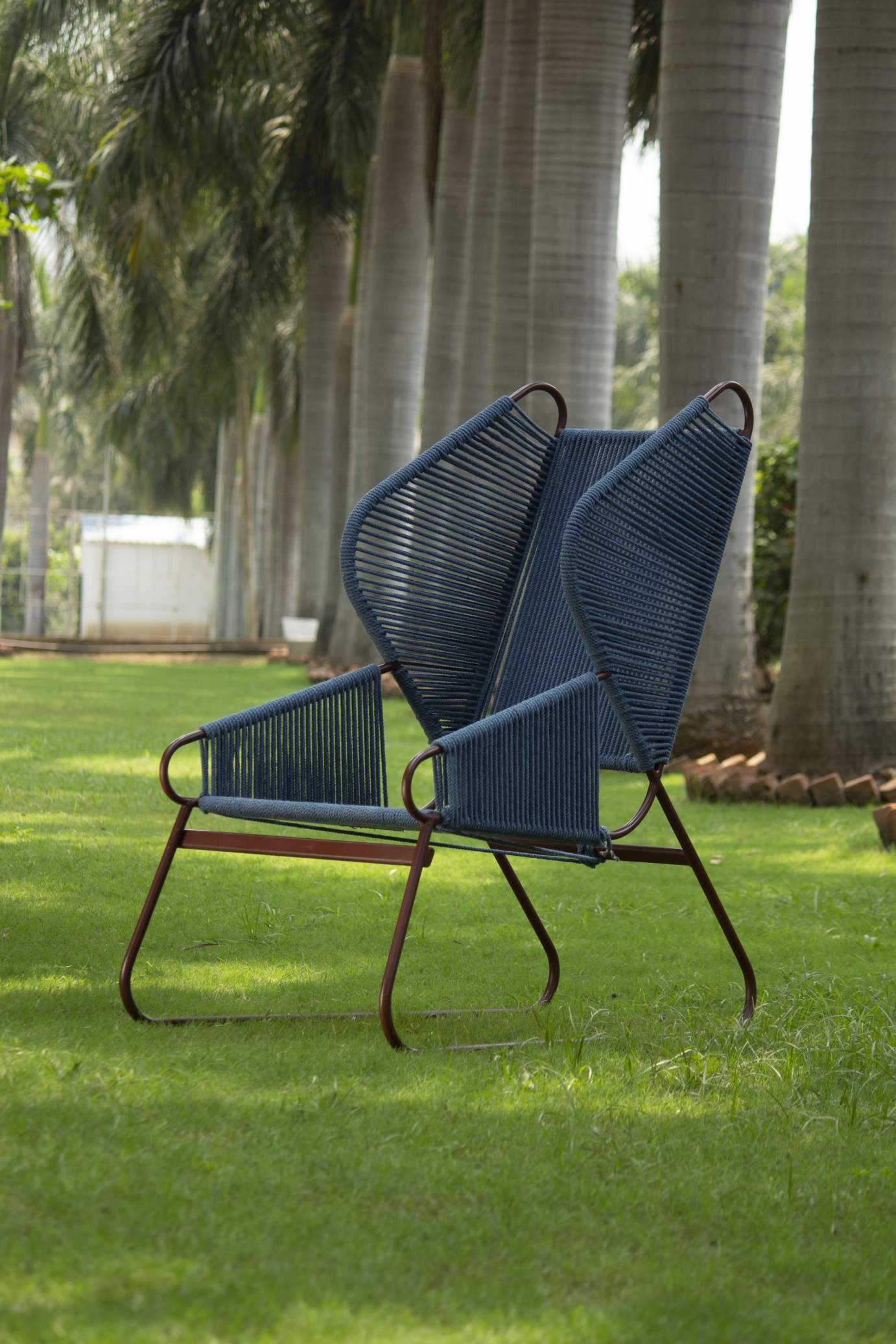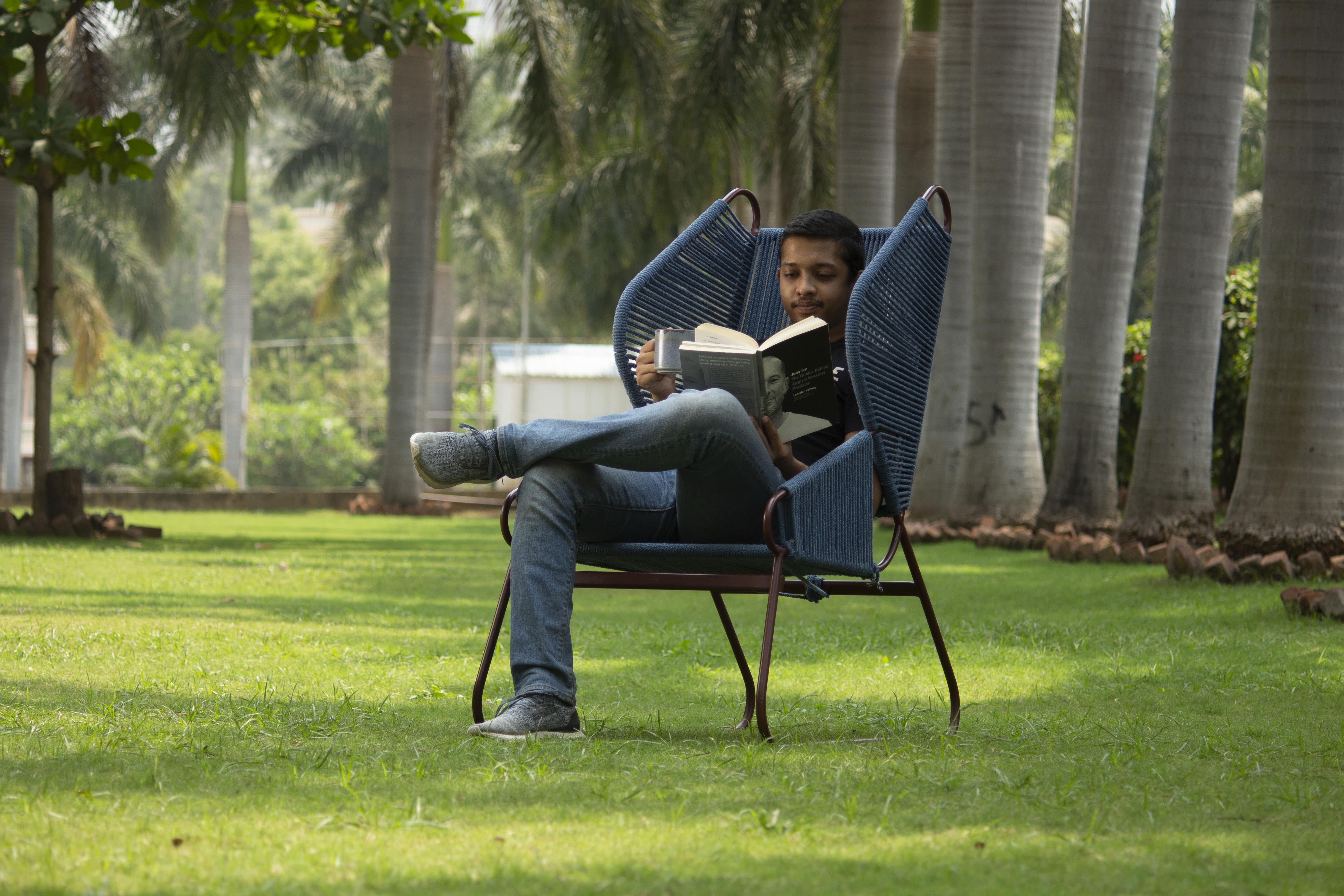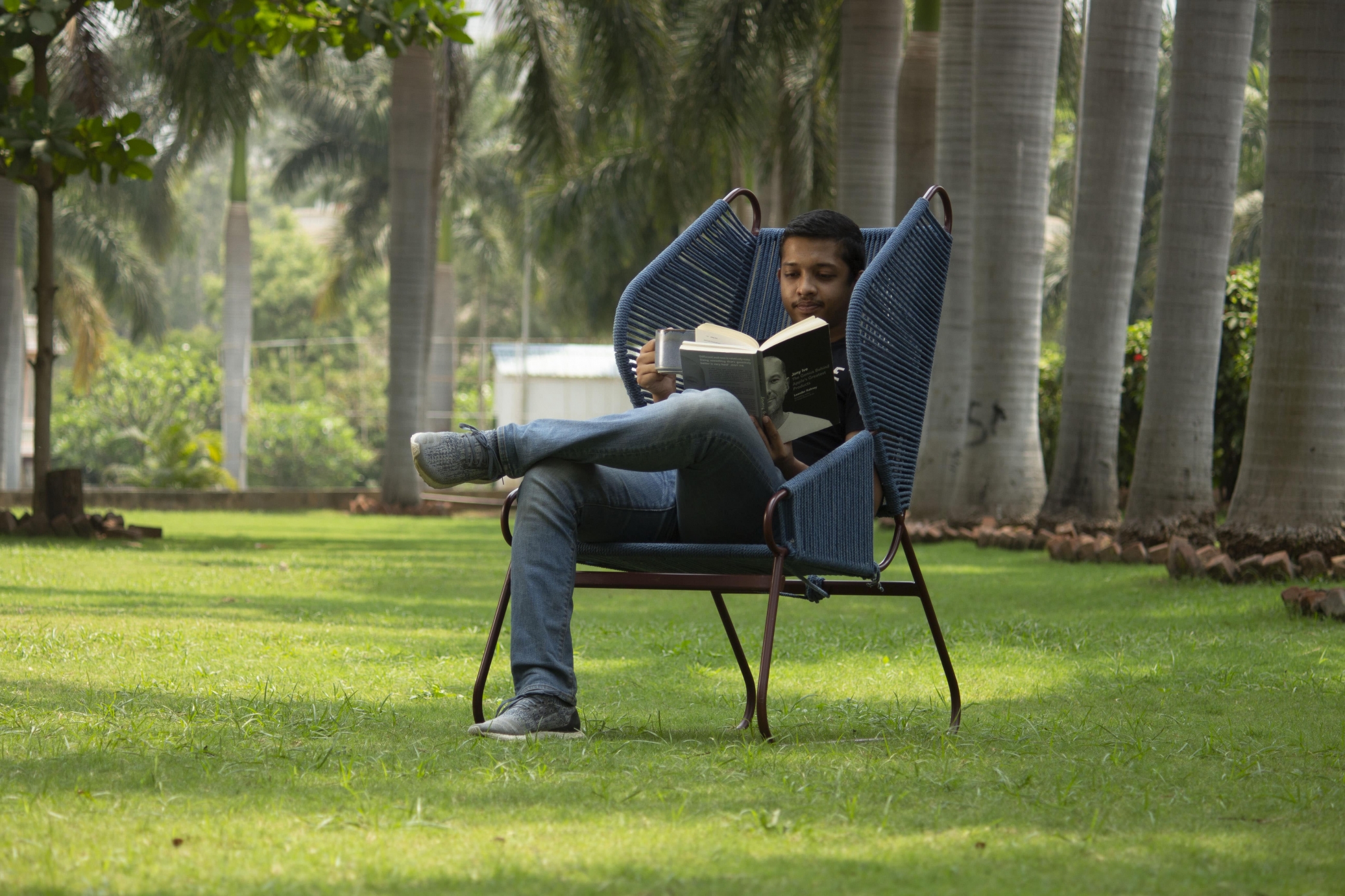 In terms of material, Dyed cotton threads have been used to create a subconscious contact between nature and the user. The surface of the chair (cotton weave) creates tiny pockets and isolates the user from the surrounding. The design and the process have evolved from a deeper understanding of the purpose of outdoor furniture and socio-cultural factors.