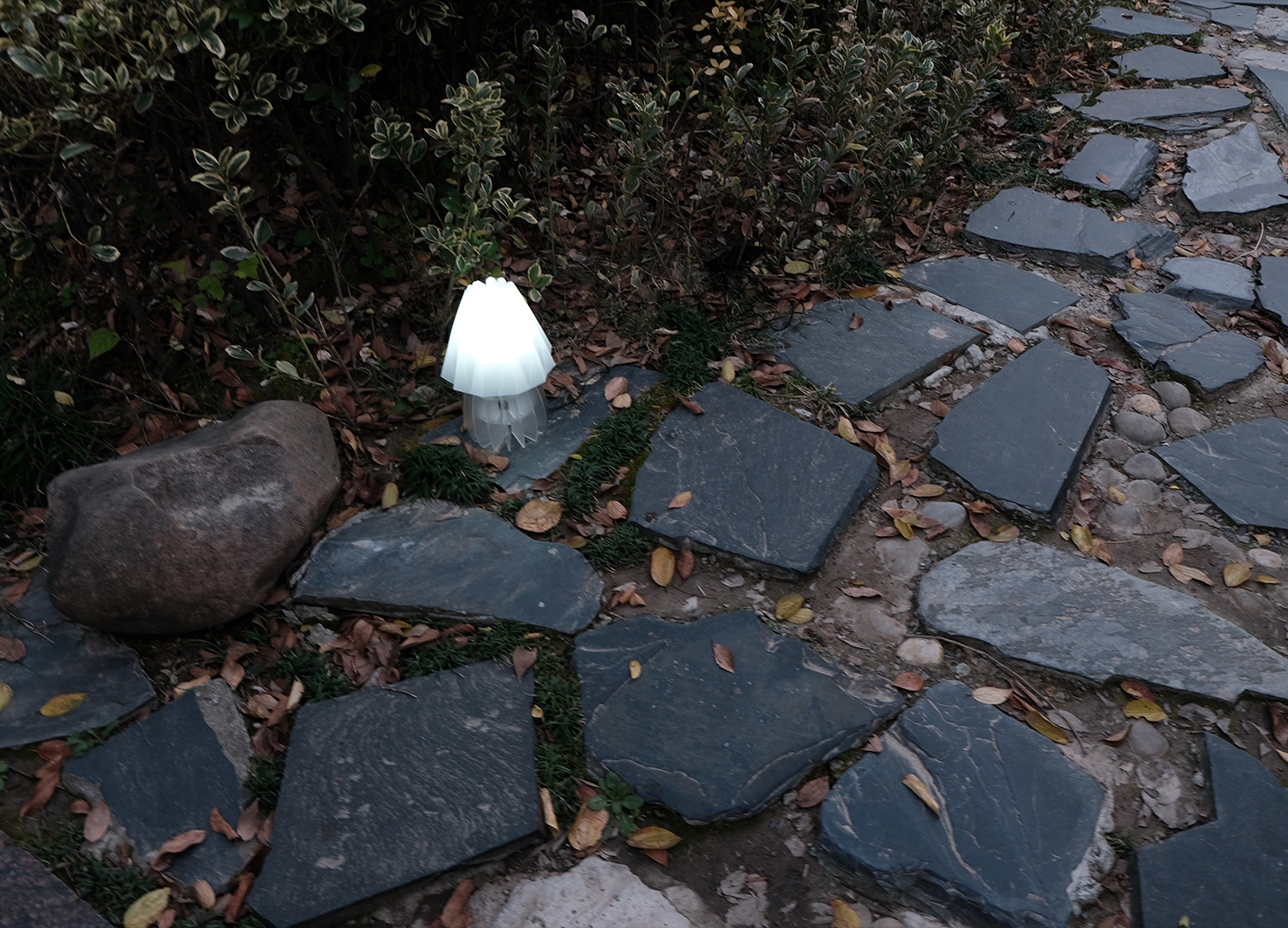Flora mushroom light is a yard light that is designed for people who come back home late at night. The mushroom light lights up their way home, waiting for them in the yard like an old friend and conveying a sense of warmth. The design is nature-inspired. Mushroom appearance symbolizes protection, uniqueness, warmth. Flora mushroom light is designed as a yard light that can be put in the yard or at the front door. When the owner comes back home, the light will be waiting and lighting up their way home, conveying a sense of warmth. The light's material is water-resistant and suitable for an outdoor environment. The package contains recyclable packing and ceremony opening.