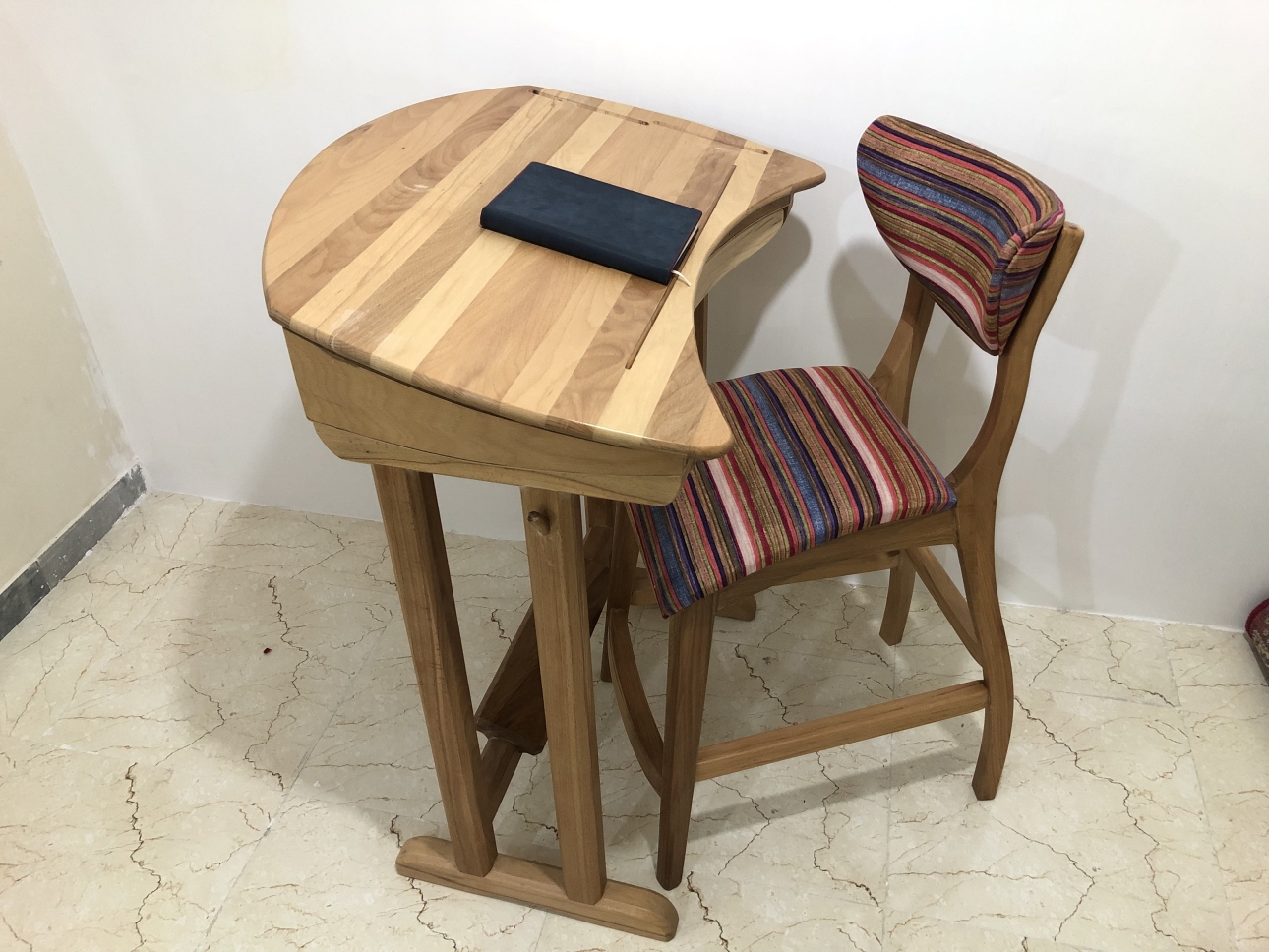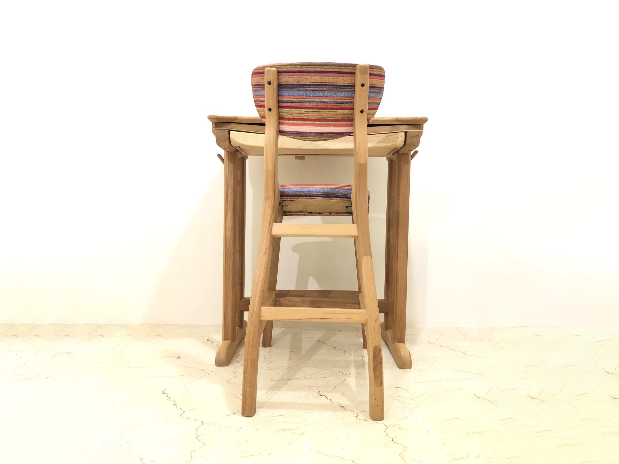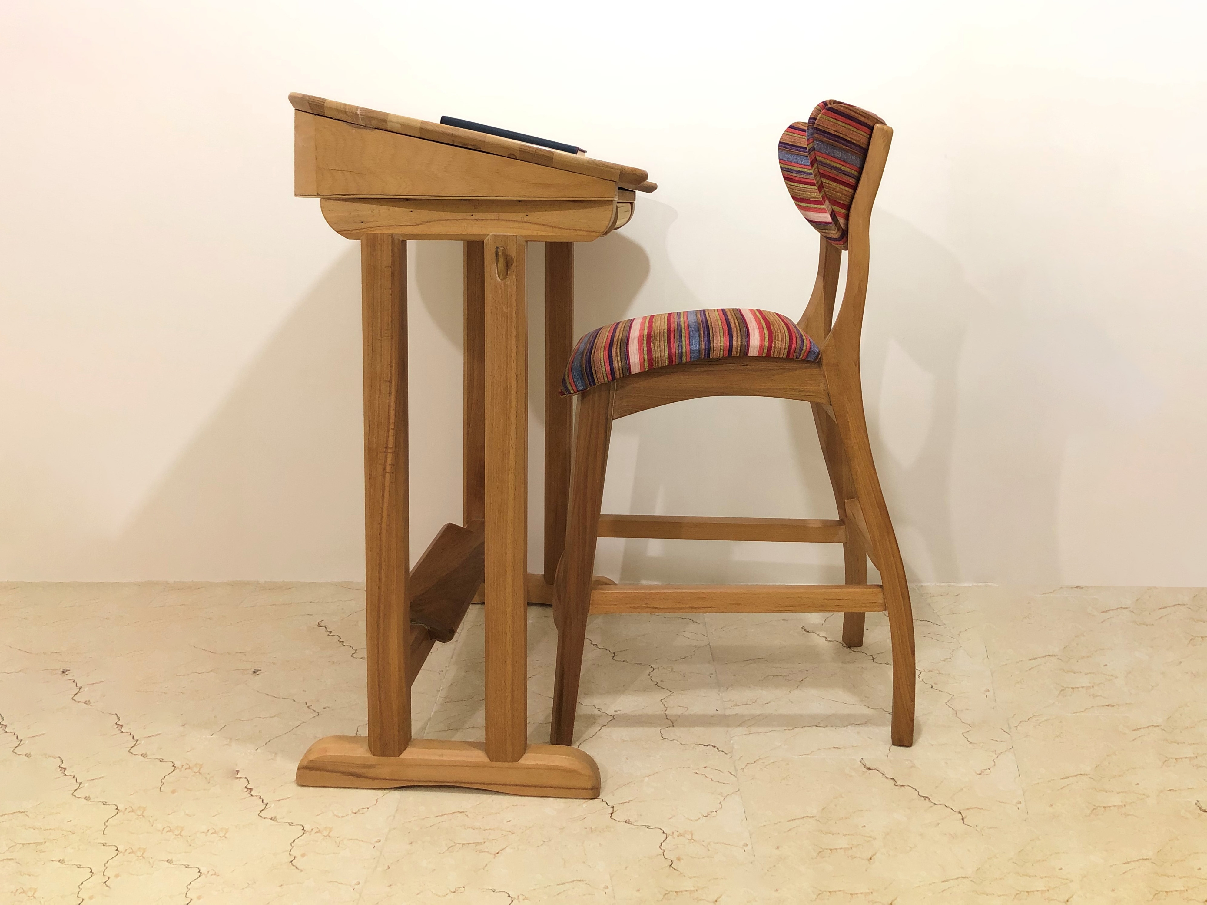 The table and chair were designed according to ergonomic principles of the second generation of educational furniture.