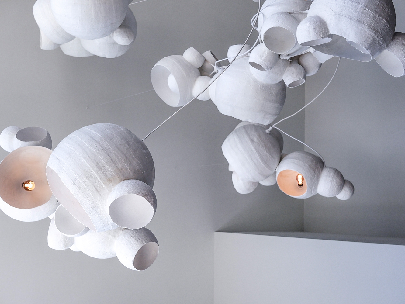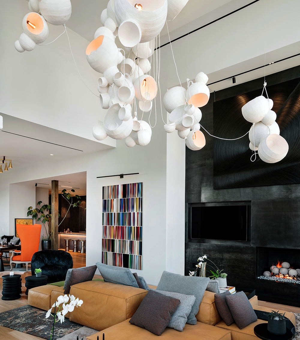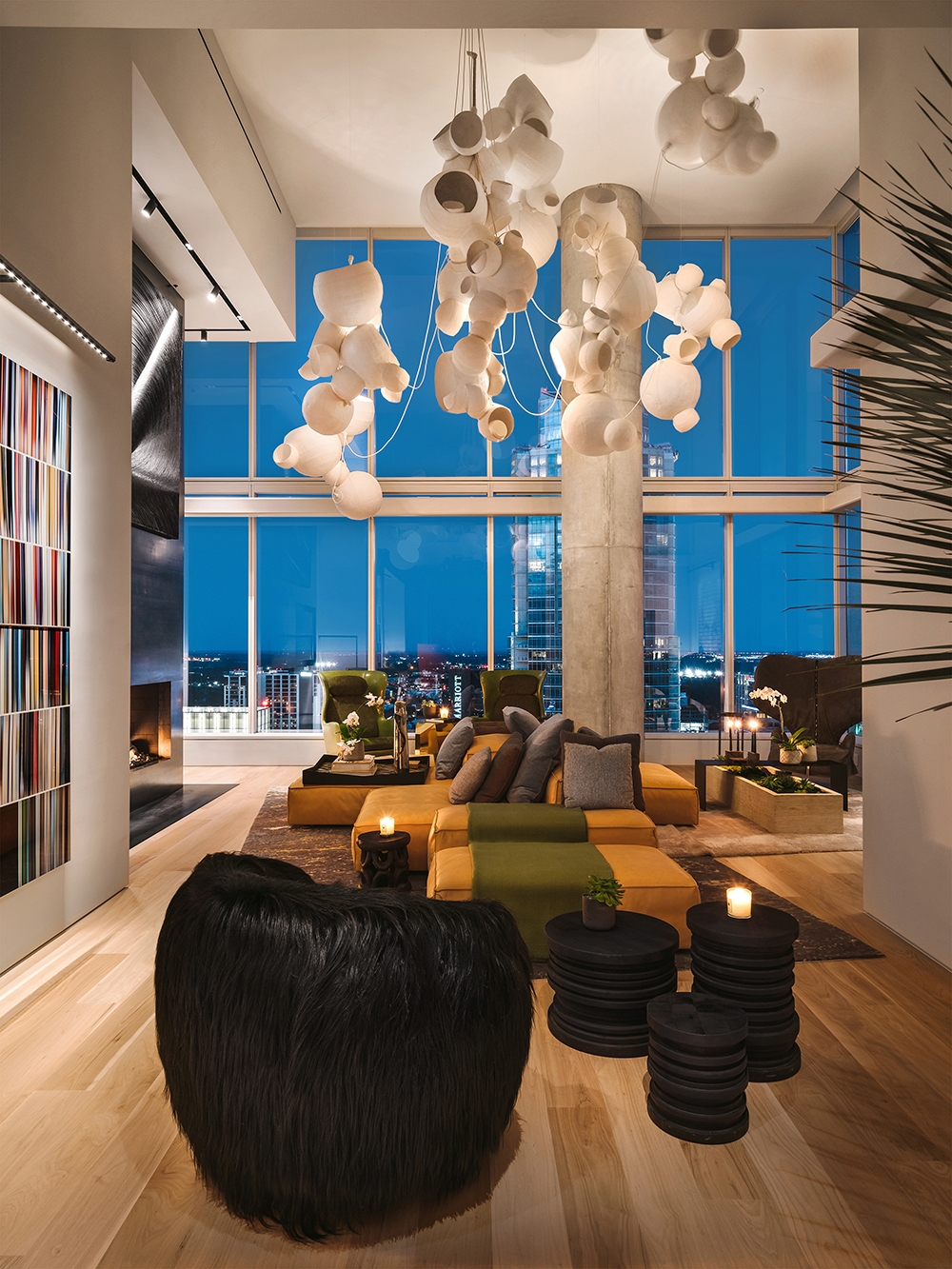 Custom lighting for a penthouse in Austin, Texas. The client wanted this corporate home to be filled with artwork and unique expressions. As it was on the 34th floor, it seemed natural that we handmake the lighting fixtures to give the feeling of both floating bubbles and white clouds.