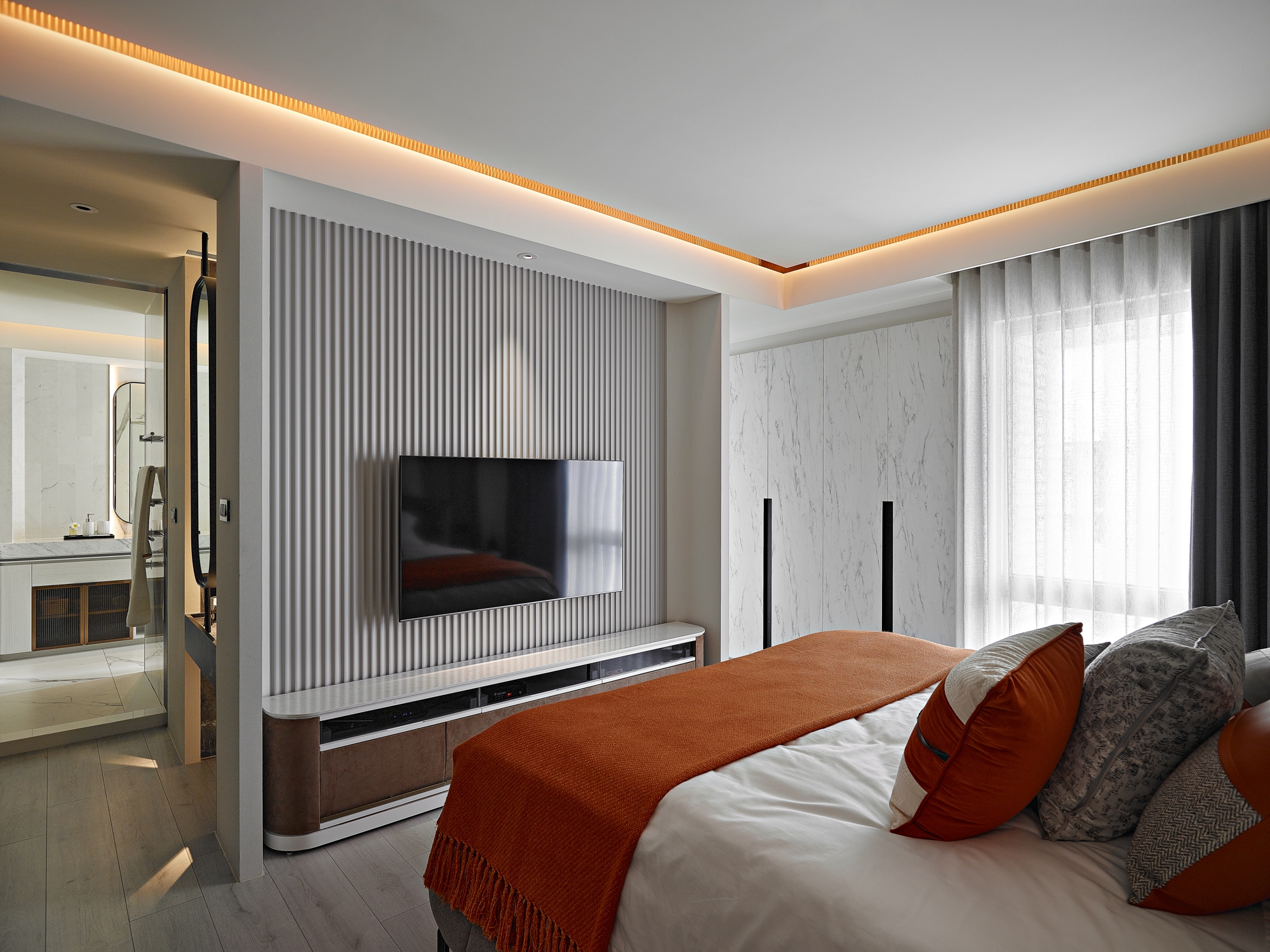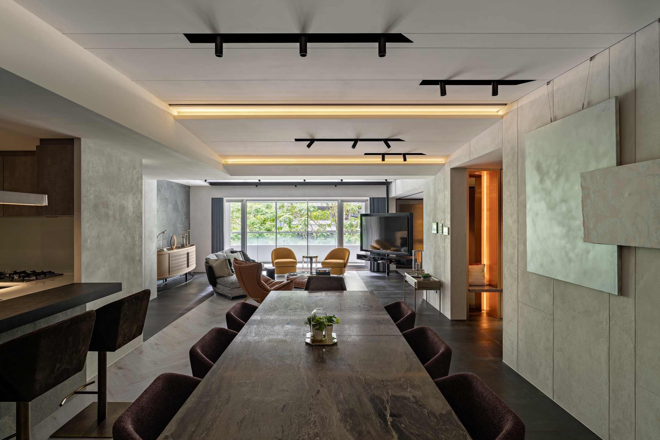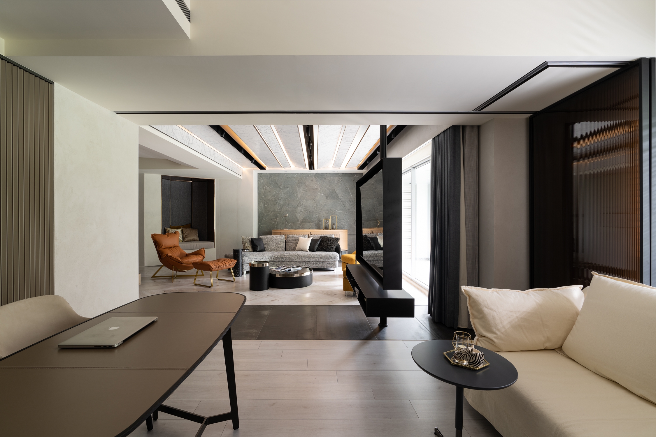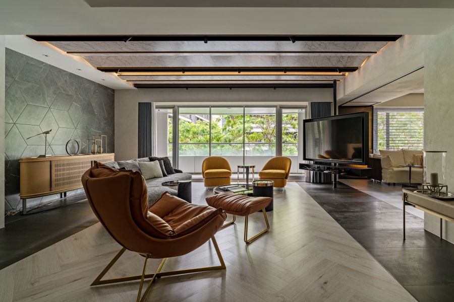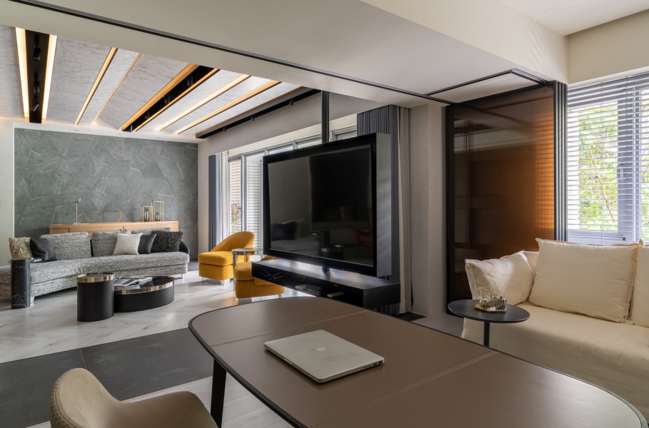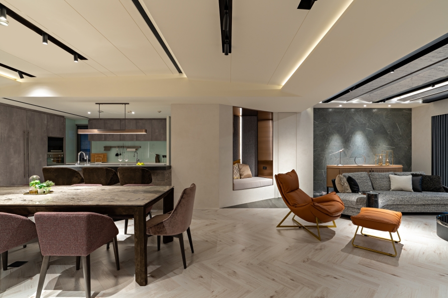 The angle limit for vertical sightline and horizontal one is a maximum of 150 and 230 degrees, respectively. Accordingly, the designer maps out the horizontal sightline for the homeowners, thereby making them the center of this simple structure and allowing them to fill in various traces of their lives. The design lexicon, on the other hand, gets to expand beyond the sightline, elaborating on invisible nuances so as to endow the low-profile space with a unique taste—minimalist but not simple.