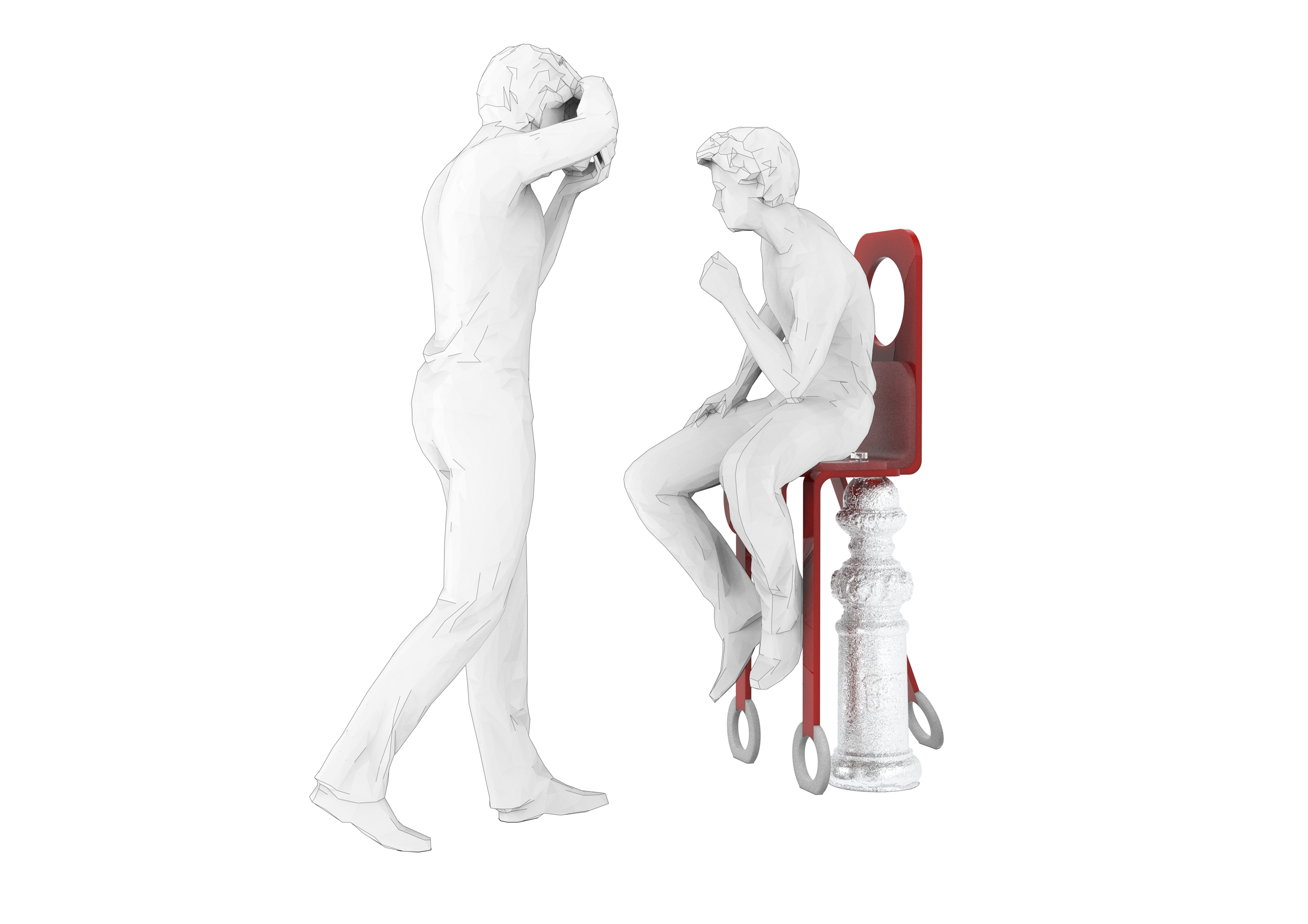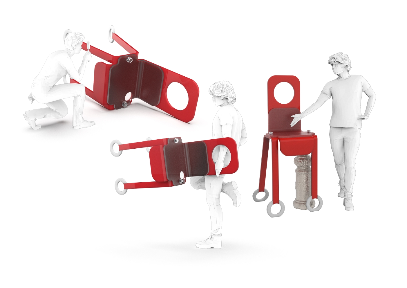 The outdoor seat is designed to be unusable independently. It can be used normally only when users find the item with the appropriate height and combine them together. Such design allows the seat to move with users and appear in different places instead of being fixed. At the same time, it brings users a kind of pleasure of exploration and enhances their sense of interesting interaction.