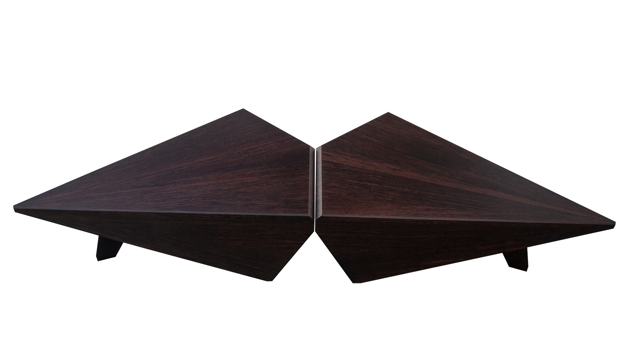 2 pieces original shape I called Black Diamond and from their we could mix them in to many different shapes or have them apart as anyone would desire or fit their room.