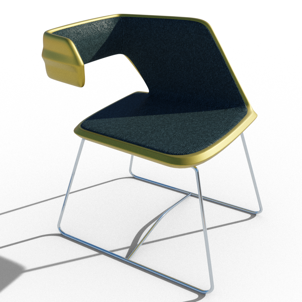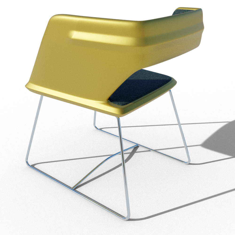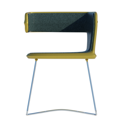 This desk armchair is available with a chrome steel sled base or with casters, making it easier to move.