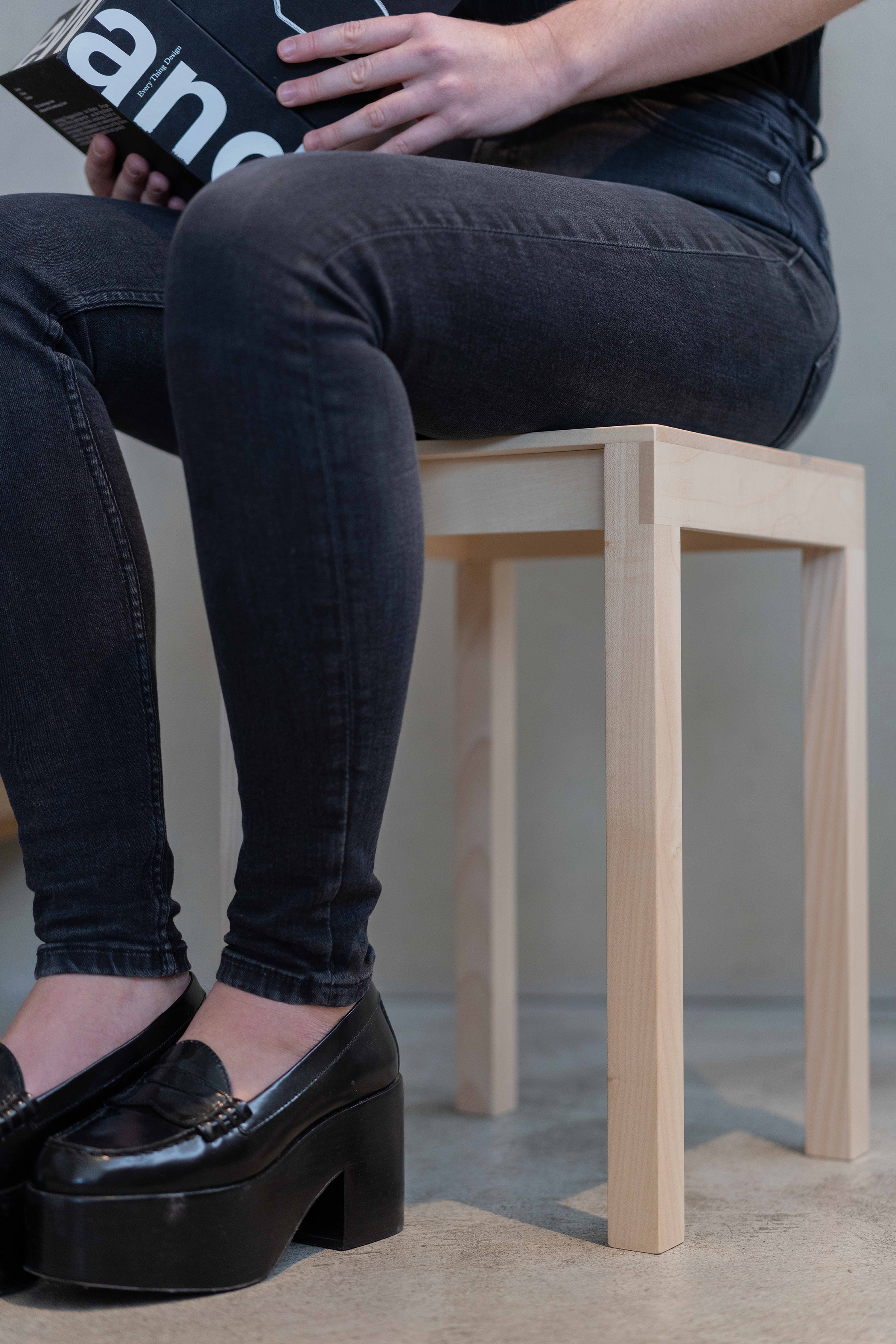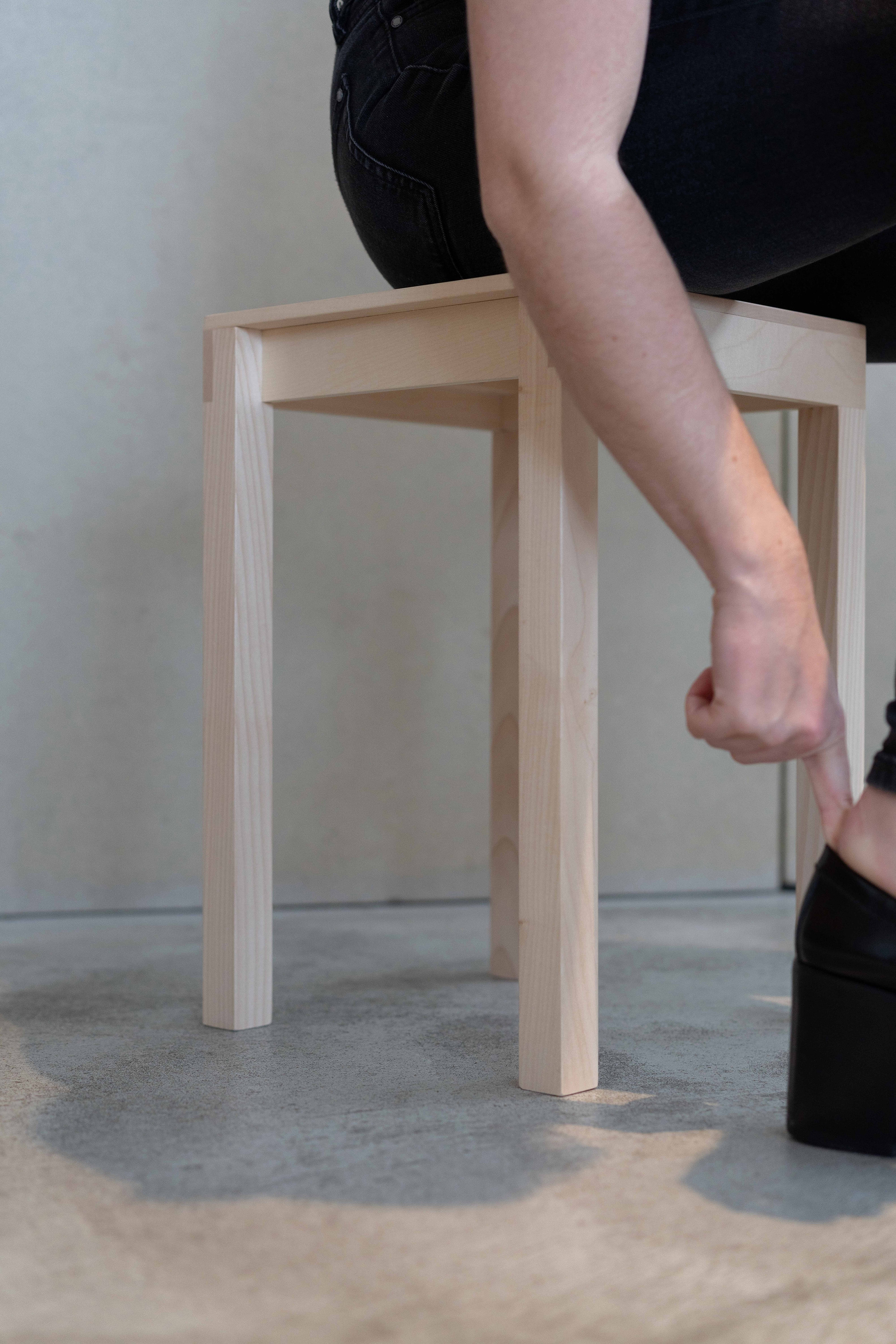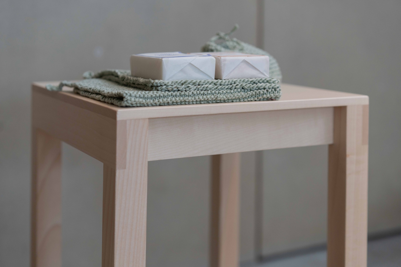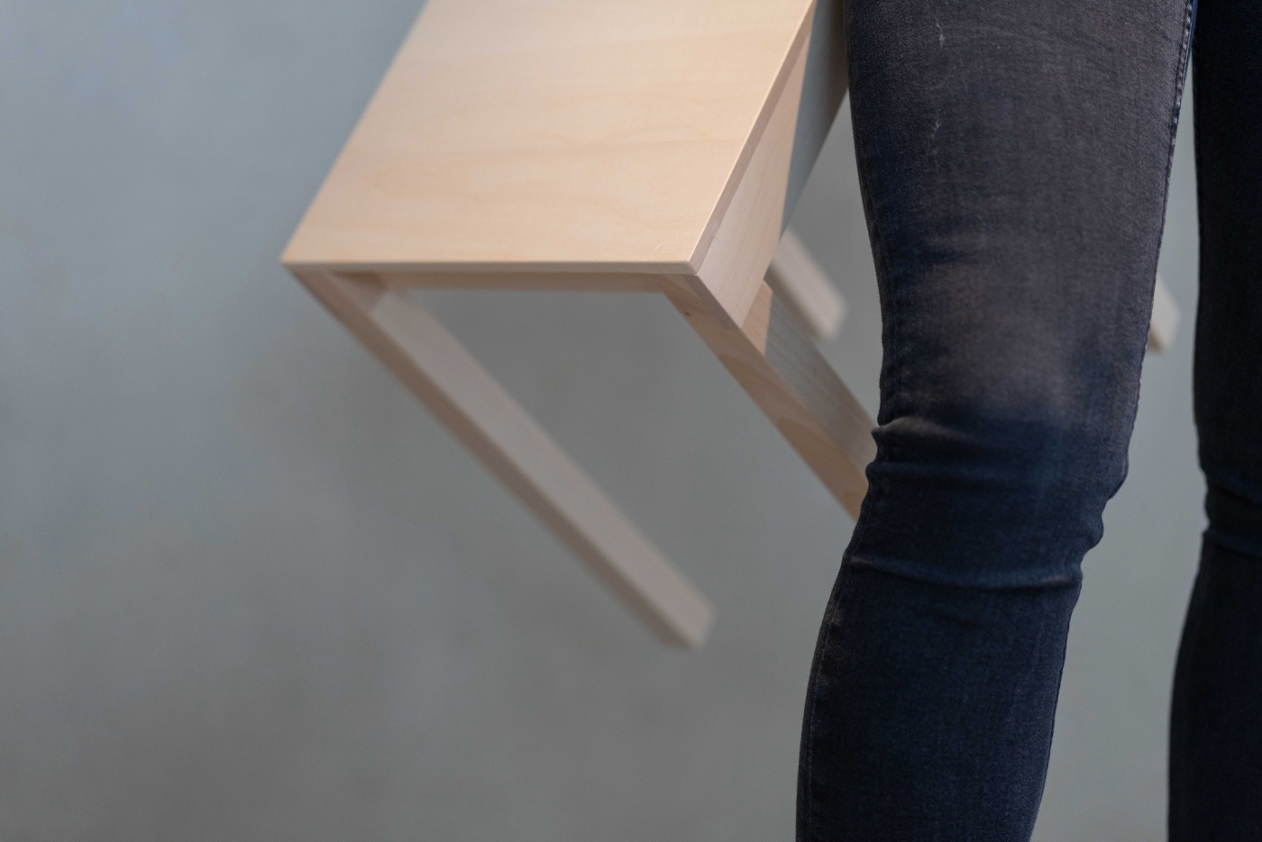 Finn takes the ancient taboret, reinterprets it and maximizes its utility. His sophisticated construction and weight of just 1.9 kilograms sacrifices none of his superior stability, making Finn a life-long portable companion. He is always poised, ready to serve – as a stool, as a side table or as an everyday assistant. Finn is timeless in shape and optimised for function. When used as a stool, he invites occupants to adopt a healthy posture and promotes peaceful introspection. In the Swiss tradition of artisan furniture, Finn is crafted from native sycamore, a slender material with remarkable elasticity and strength used for centuries in farmers’ milking stools, milk pails and ladles. The furniture is handmade in Appenzellerland, Switzerland, by people with disabilities who explore and apply their abilities in a schedule-free environment. Finn’s native material and meticulous production result in a simplicity that radiates softness and warmth and shows that quality can be found in the small and the authentic.