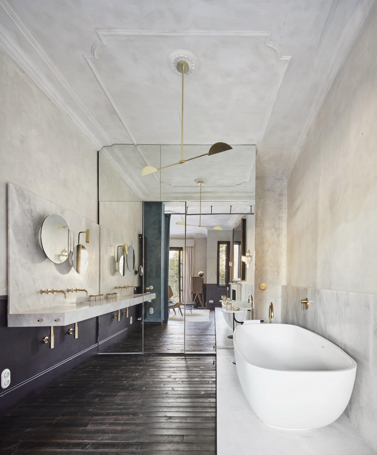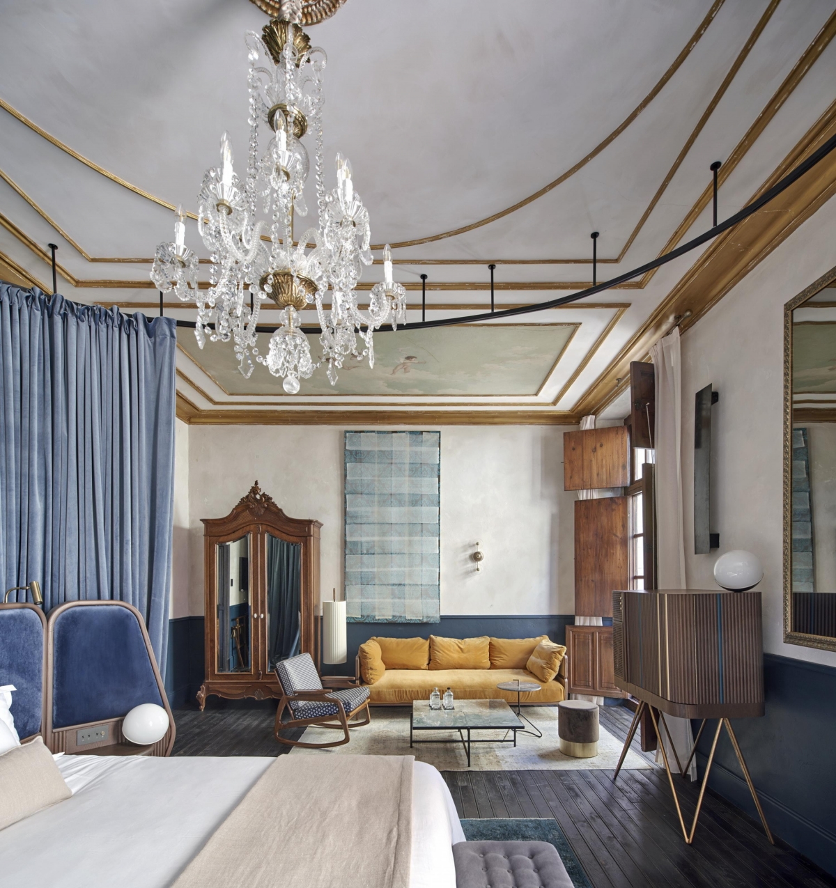 Inspired by Kintsugi - traditional Japanese technique of repairing broken antique porcelain with gold dust that does not hide the fracture- the project carefully preserves the romantic and decadent atmosphere found in the building and is deliberately contrasted with interventions and elements from different epochs. The proposal respects the existing centenary architectural crossbreeding, maintaining the traces of the past and avoiding a false recovery of a glorious past that the house never had.