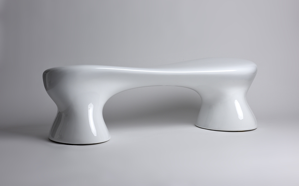 The ChaTaT Bench has a computer numerically controlled (CNC) machined polyurethane foam core covered with a fiberglass/carbon fiber skin. It can be used indoors as well as outdoors in pool and garden settings.