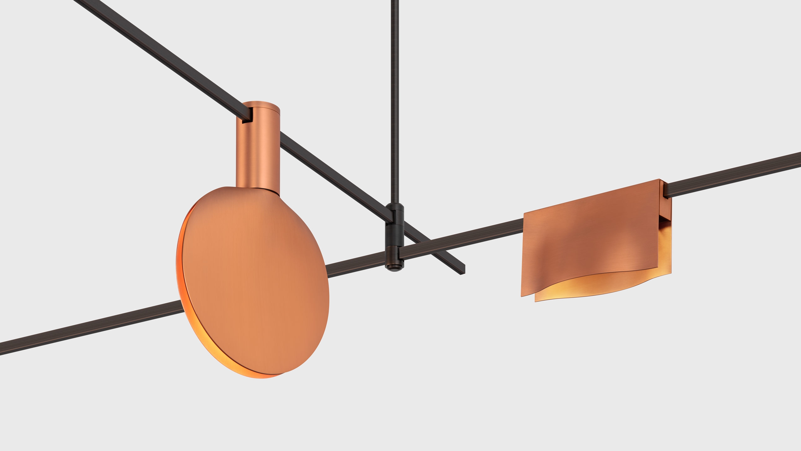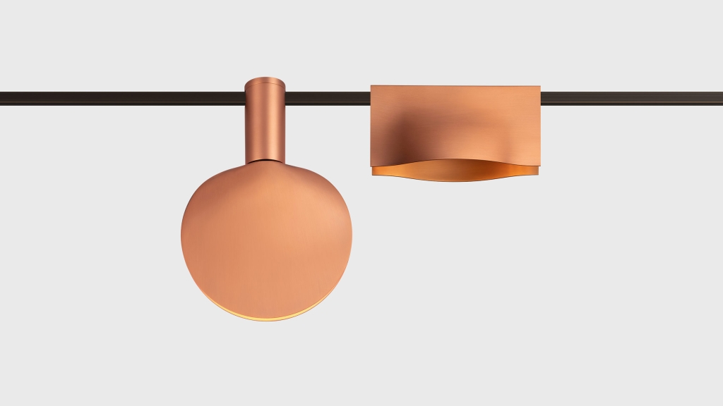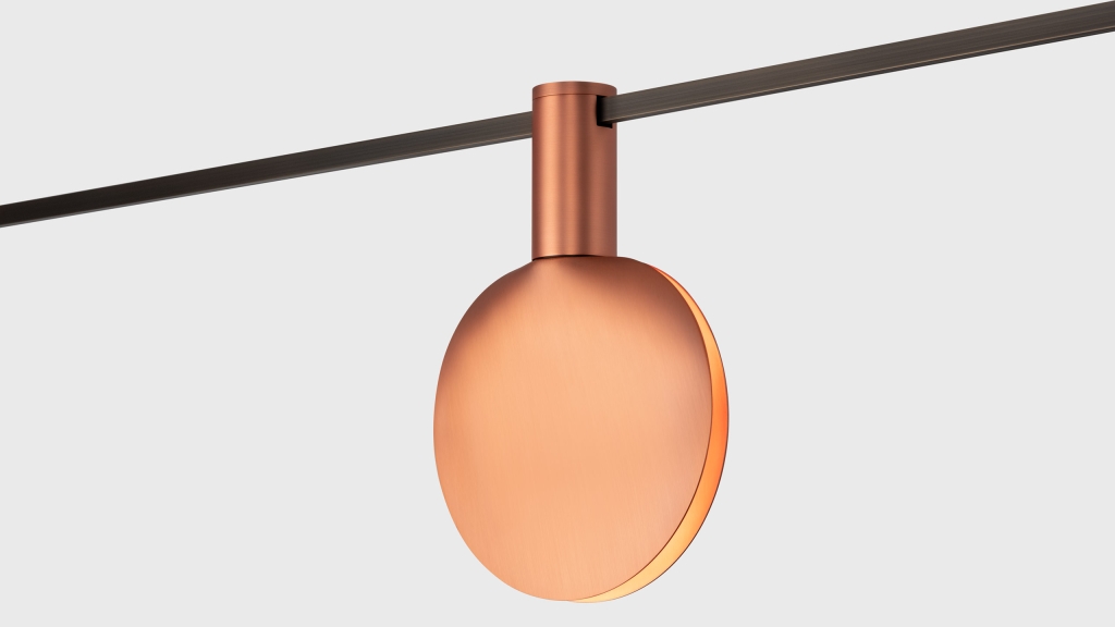 The unique signature AUROOM PINK collection in pink for AUROOM lighting system by the world-famous designer Karim Rashid. AUROOM lighting system is made of 100% natural brass. The metal is treated in a special way to achieve the unique pink hue and brushed surface effect.