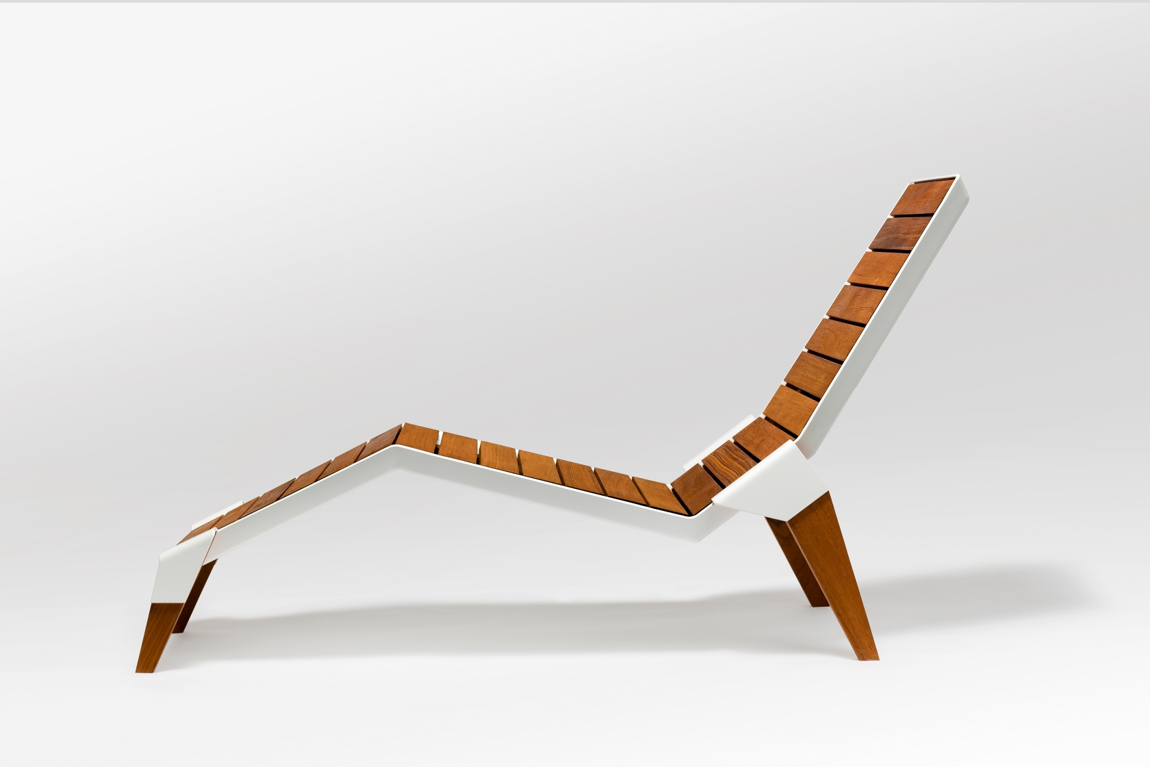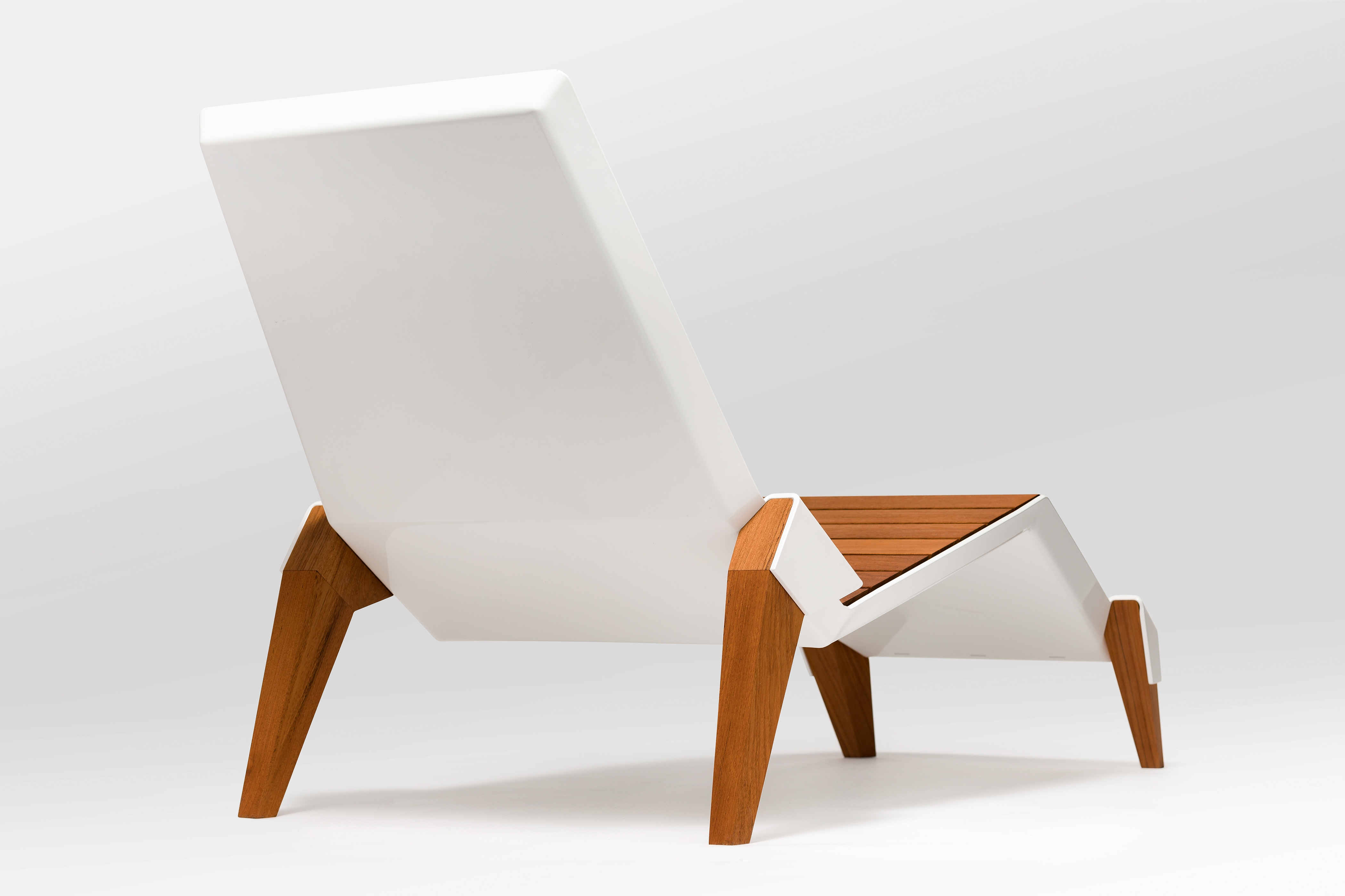 The Arms Lounger was inspired by watching people relaxing on the beach. The angled back legs relate to a human form reminiscent of a person sitting on the ground leaning back with their weight on their arms. The mood at the beach is energetic yet relaxed and social and the form of the Arms Lounger reflects those characteristics.