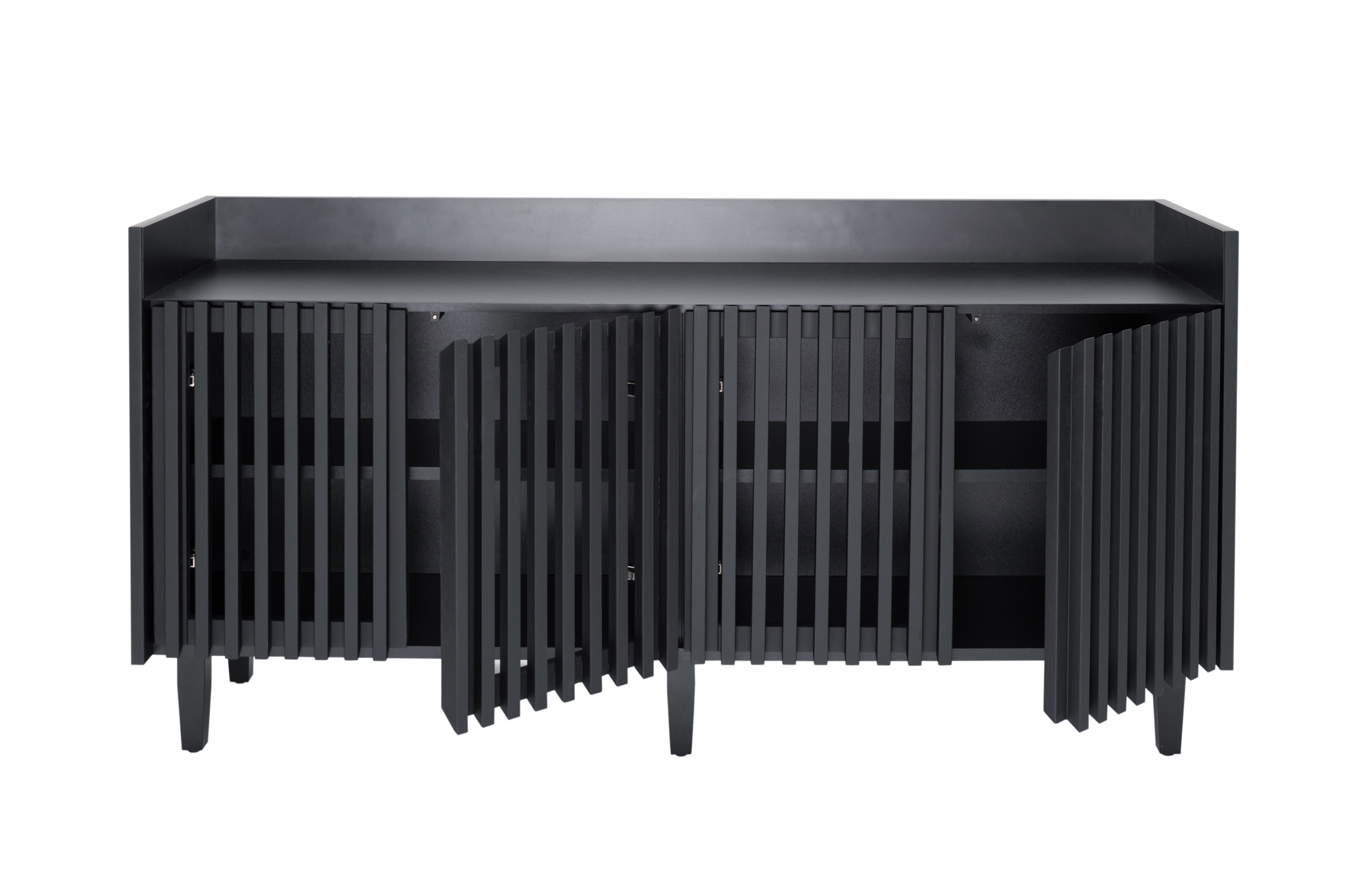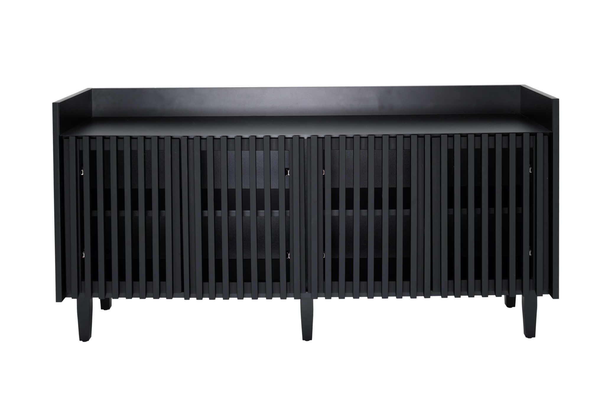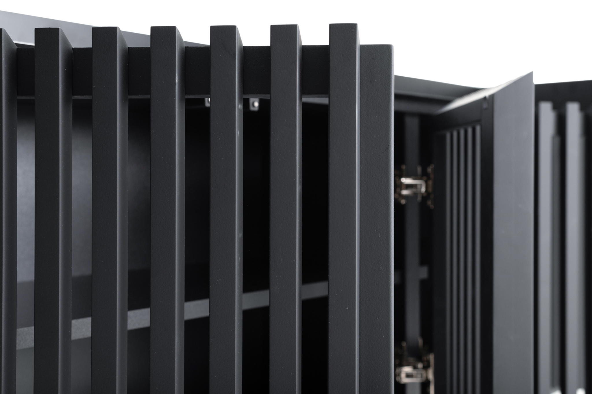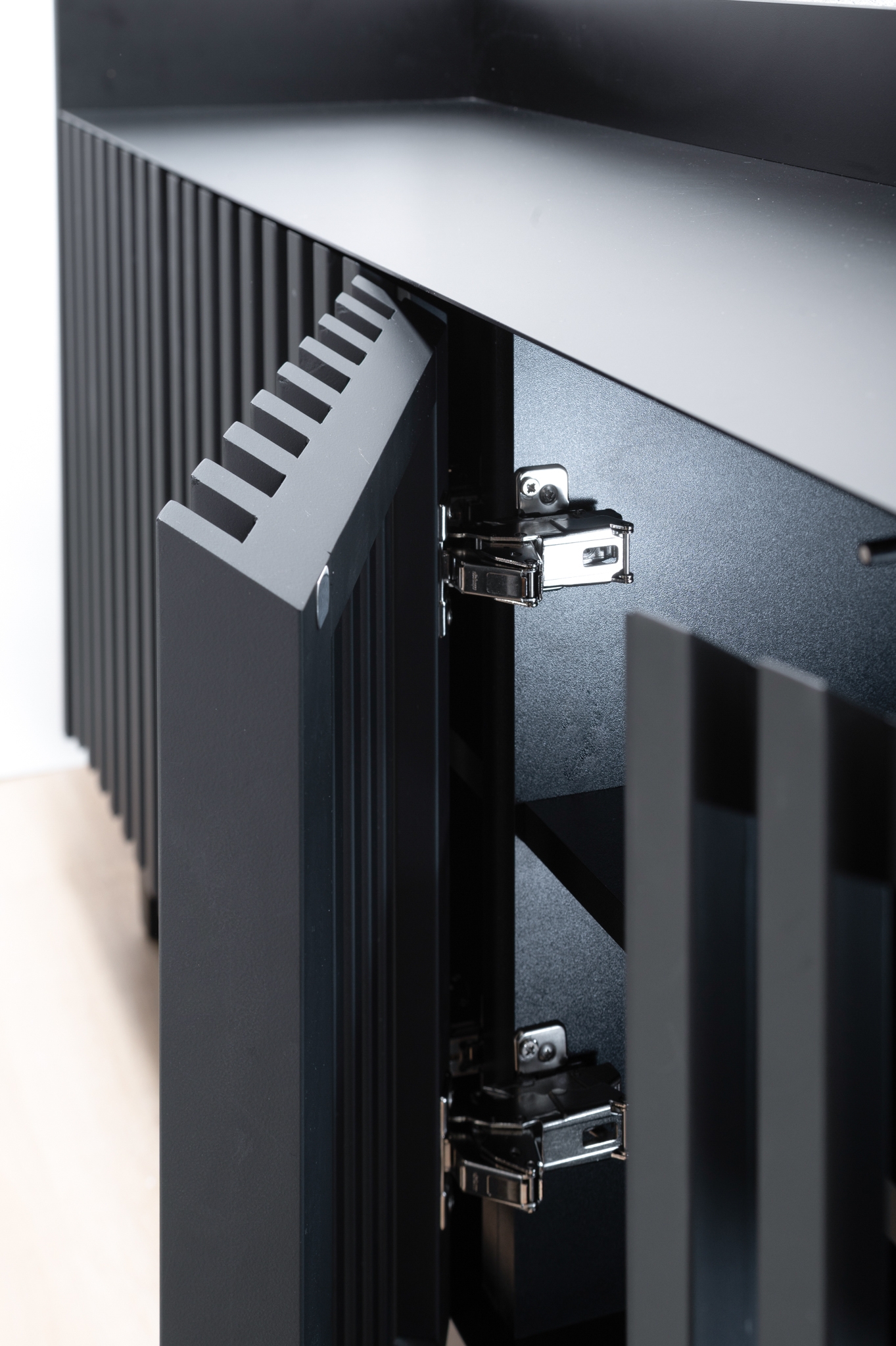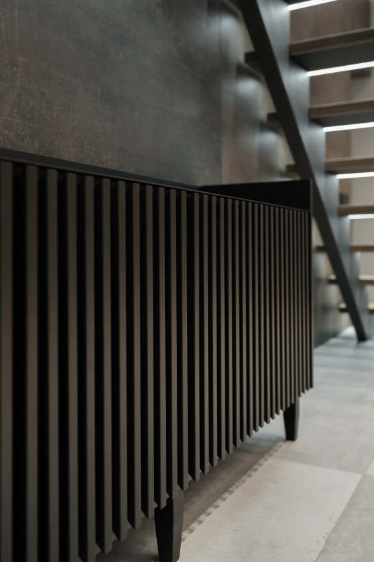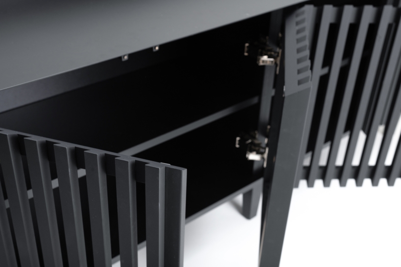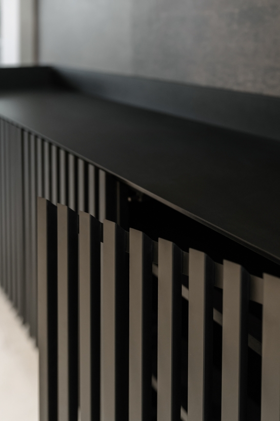 Buzyna Commode is a minimalistic piece of furniture inspired by the beauty of Ukrainian nature. Thanks to the simplicity of forms and ergonomic design, it will decorate almost any interior. Metal and solid natural wood are harmoniously combined in this piece of furniture. The design of the commode is based on symmetrical geometric shapes. The commode was created with the focus on functionality. Large and roomy, it offers plenty of storage space. Behind the slatted facades there are two deep shelves without a partition. The facade with gaps looks aesthetically pleasing and allows the commode to “breathe”. The top surface is lined with a sheet of metal in the same color as the rest part of the commode. This makes the furniture durable and scratch resistant, so you can safely put keys and other accessories on the top of it. Elegant and durable legs complement the basic design perfectly. The height above the floor allows the robot cleaner to pass under the cabinet, facilitating the room cleaning.