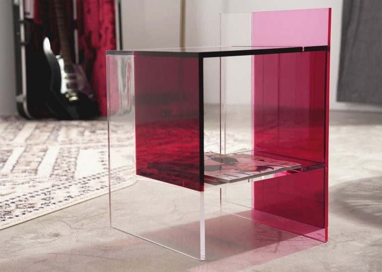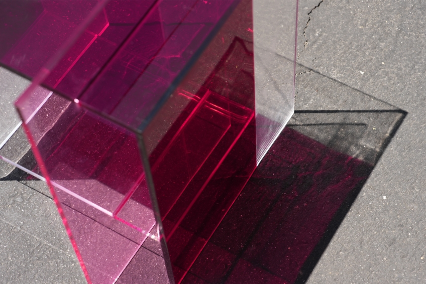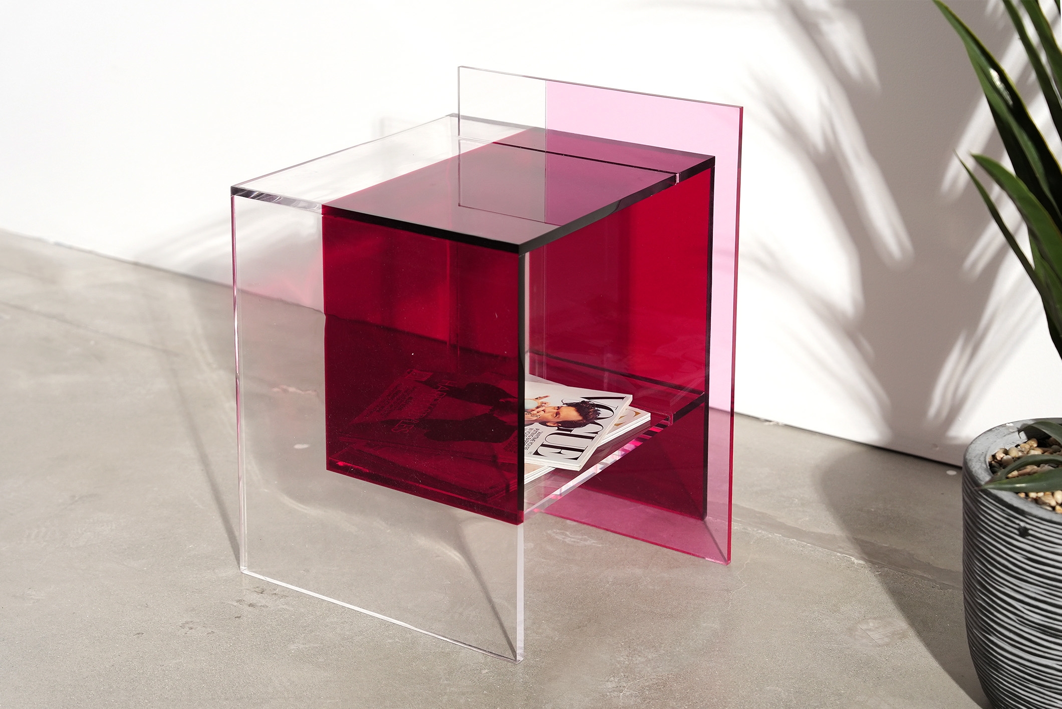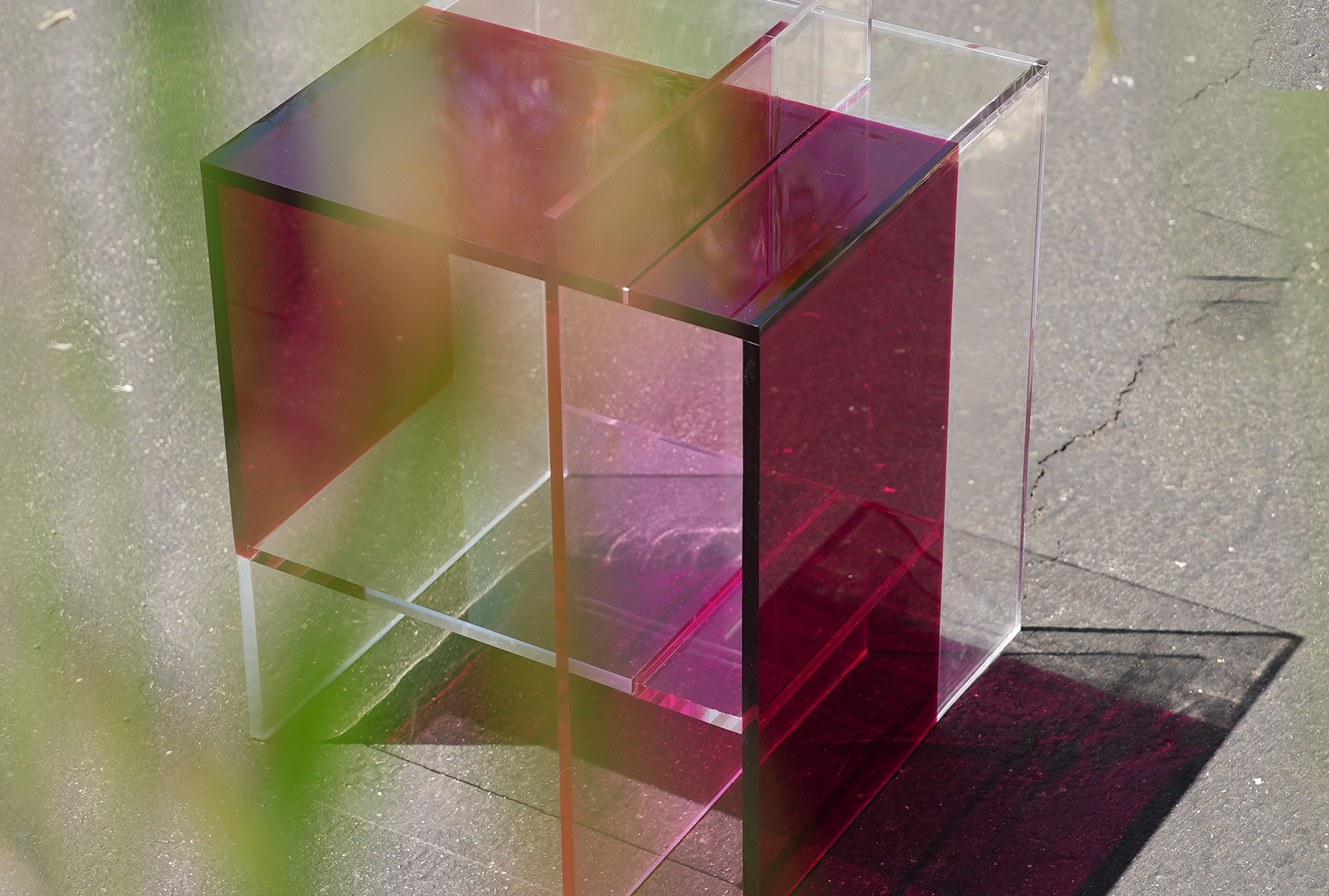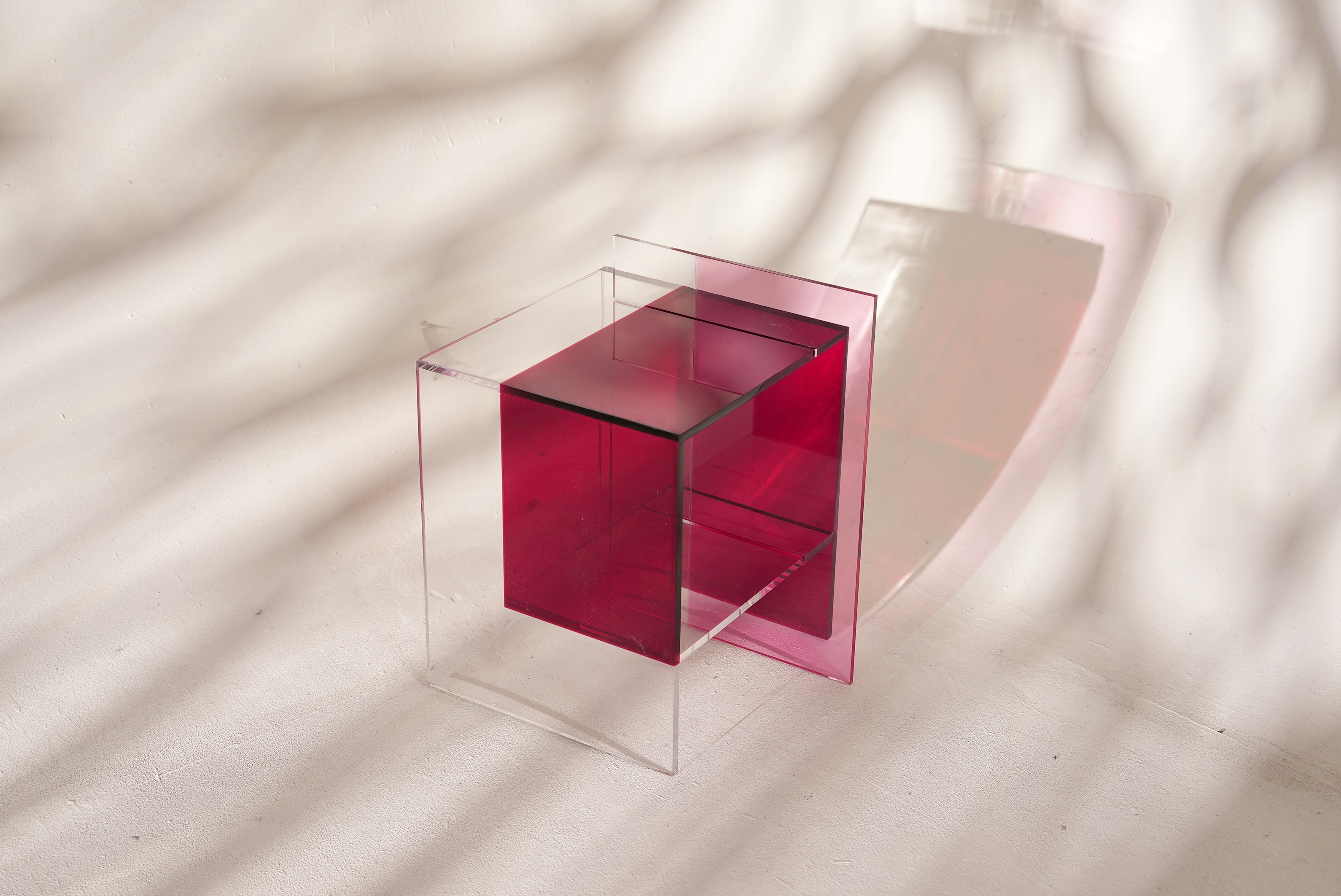 Canvas is a reading stool and also a side table designed with graphic sensibility. By walking around the object, the audience could experience dynamic overlapping, shadow, and transparency of the object.