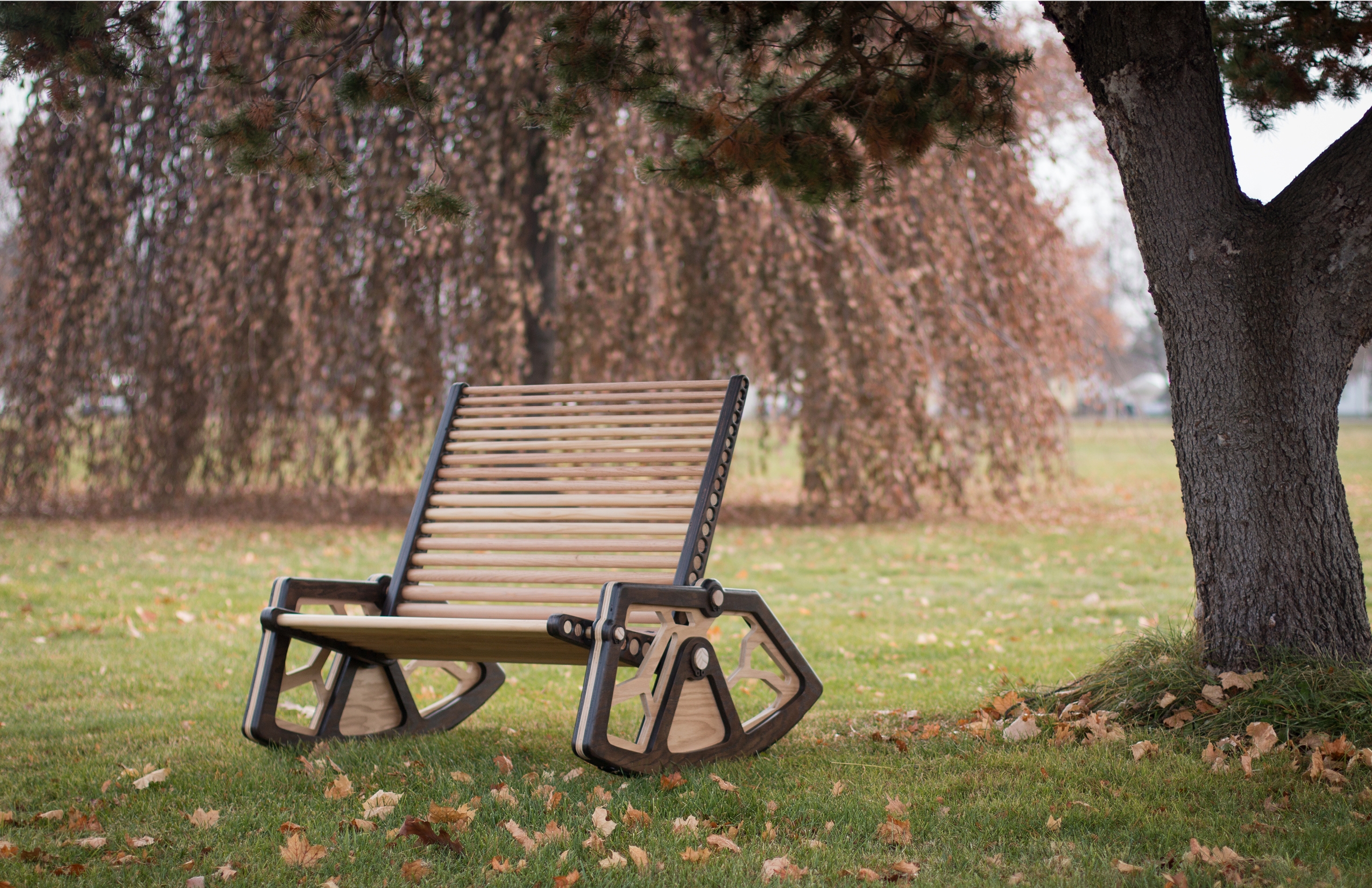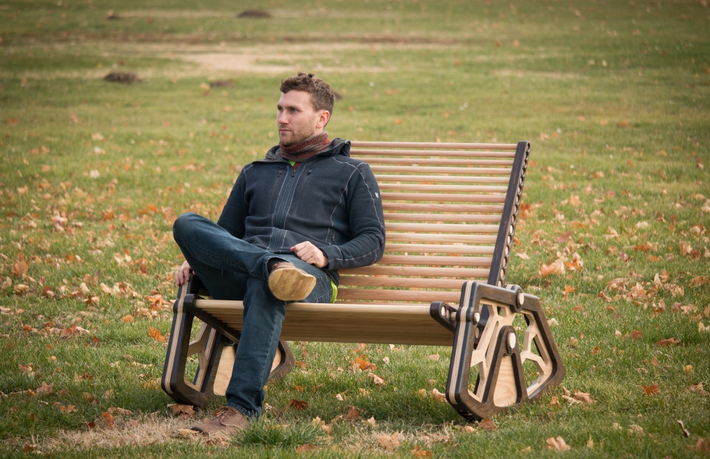 Future versions will use walnut hardwood. Making an all-aluminum park bench version is also being explored.