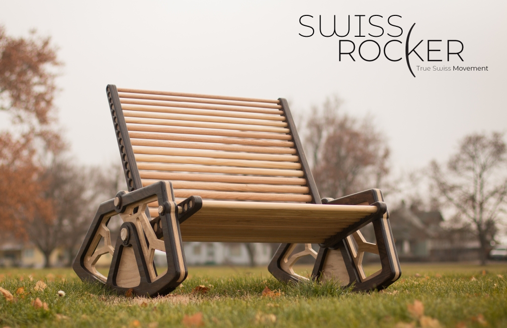 Inspired by the internal mechanical movement of a fine Swiss watch, this two-person rocking bench is the perfect place to sit and enjoy a warm evening sunset.