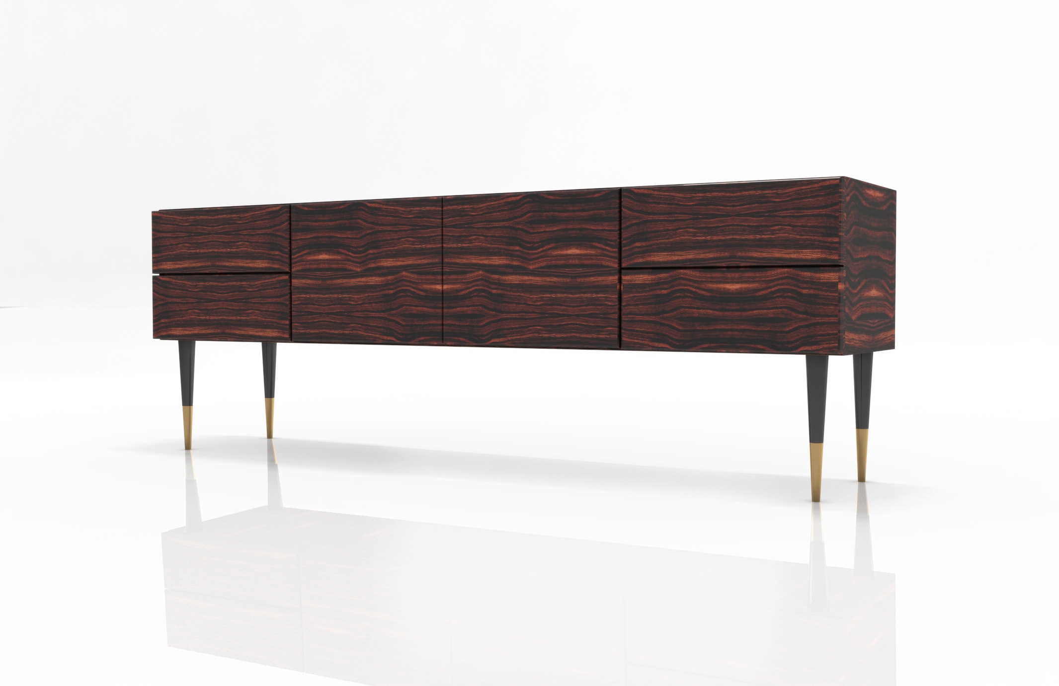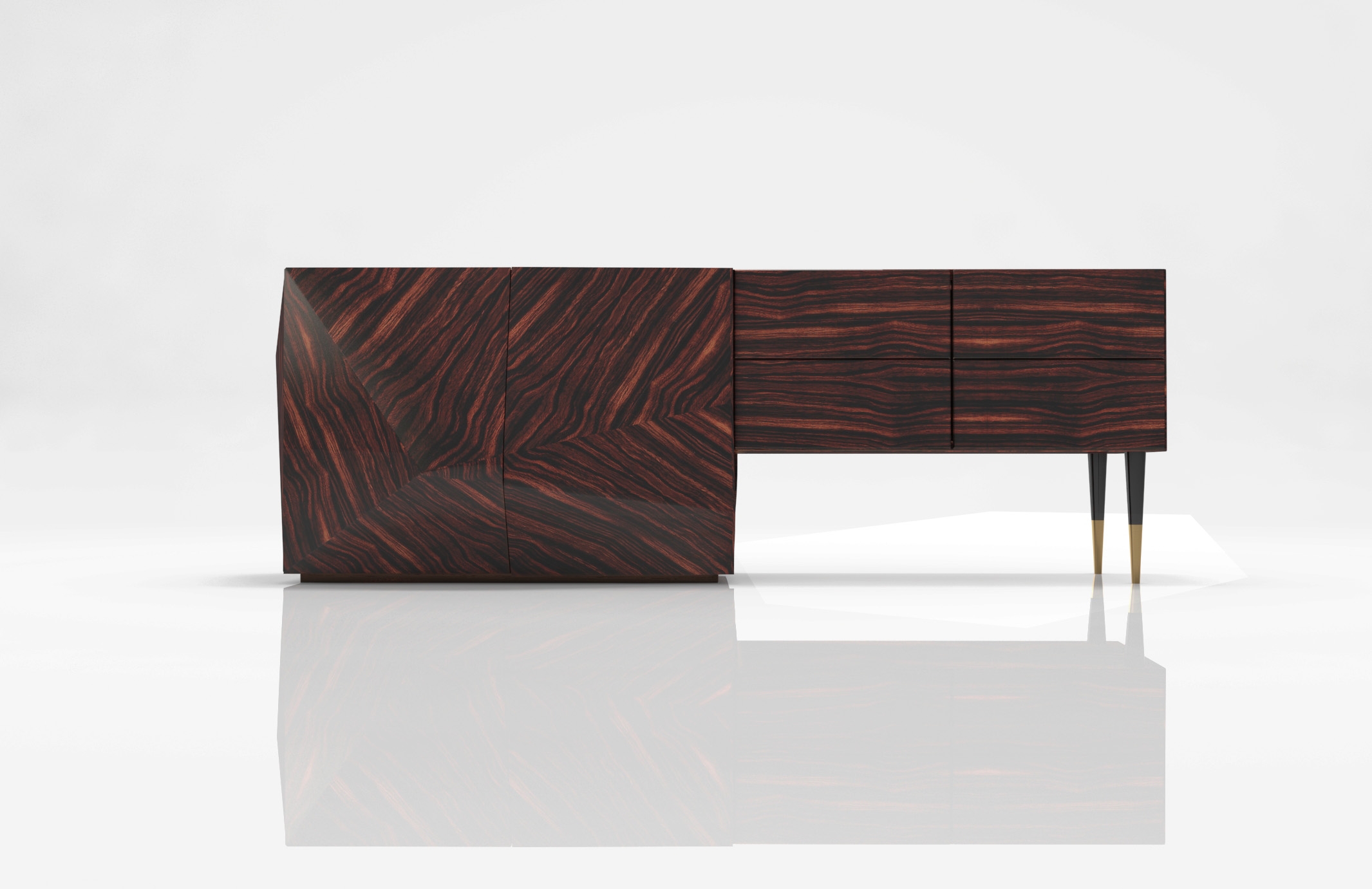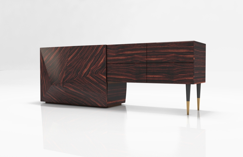 The project Metamorphose consists of three sideboards where the transformation of the raw piece of wood (Metamorphosis I) begins its transformation (Metamorphosis II) ending in a piece inspired by the 50's (Metamorphosis III). The stylus feet with metal tips and the absence of handles bring the pieces into the XXI. The aim of this triptych is to draw attention to the transformation of wood into pieces with history. They were created with sustainability in mind, in its various aspects, so they were produced in pre-composite and not in solid wood, avoiding the massive cutting of trees.
