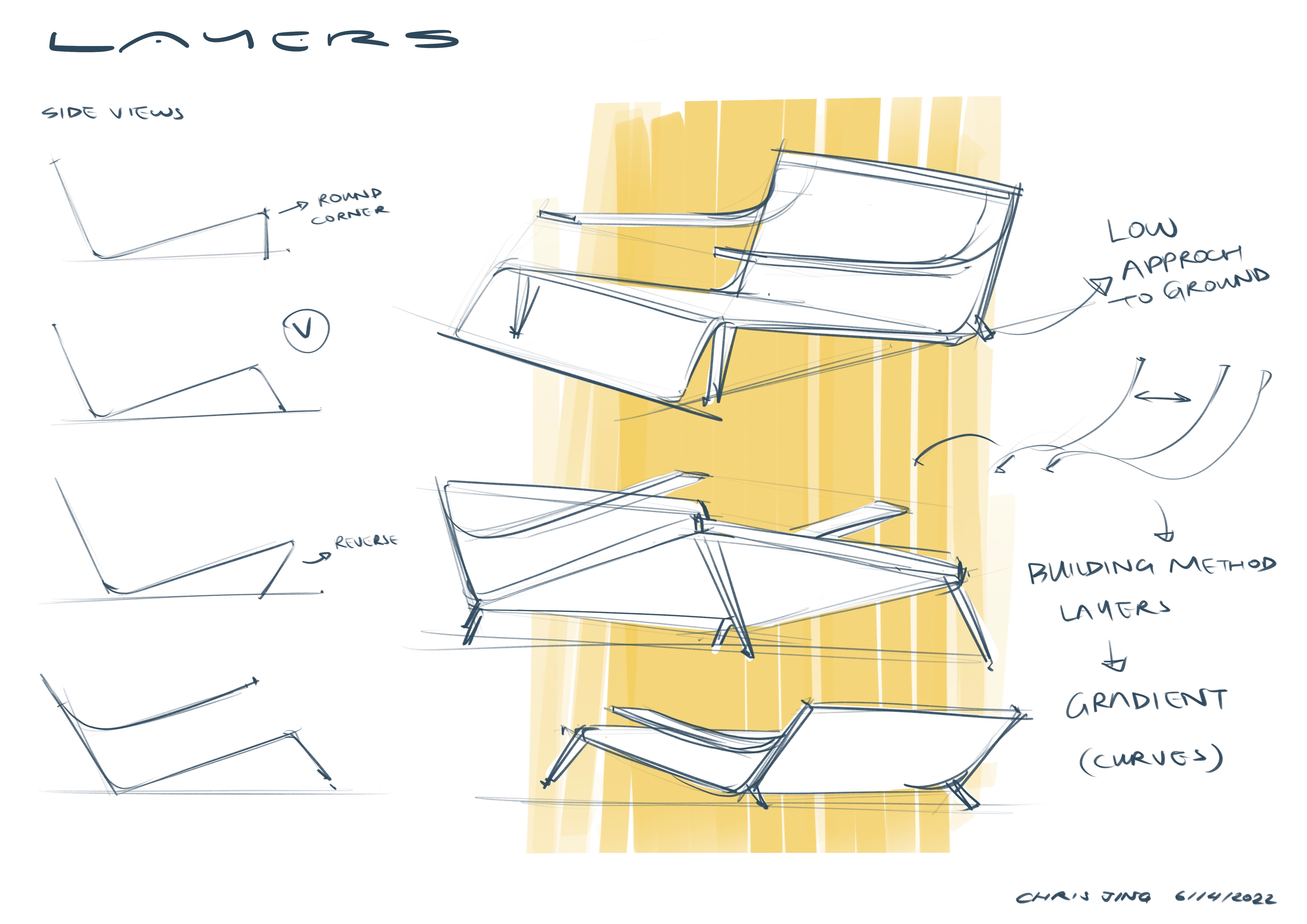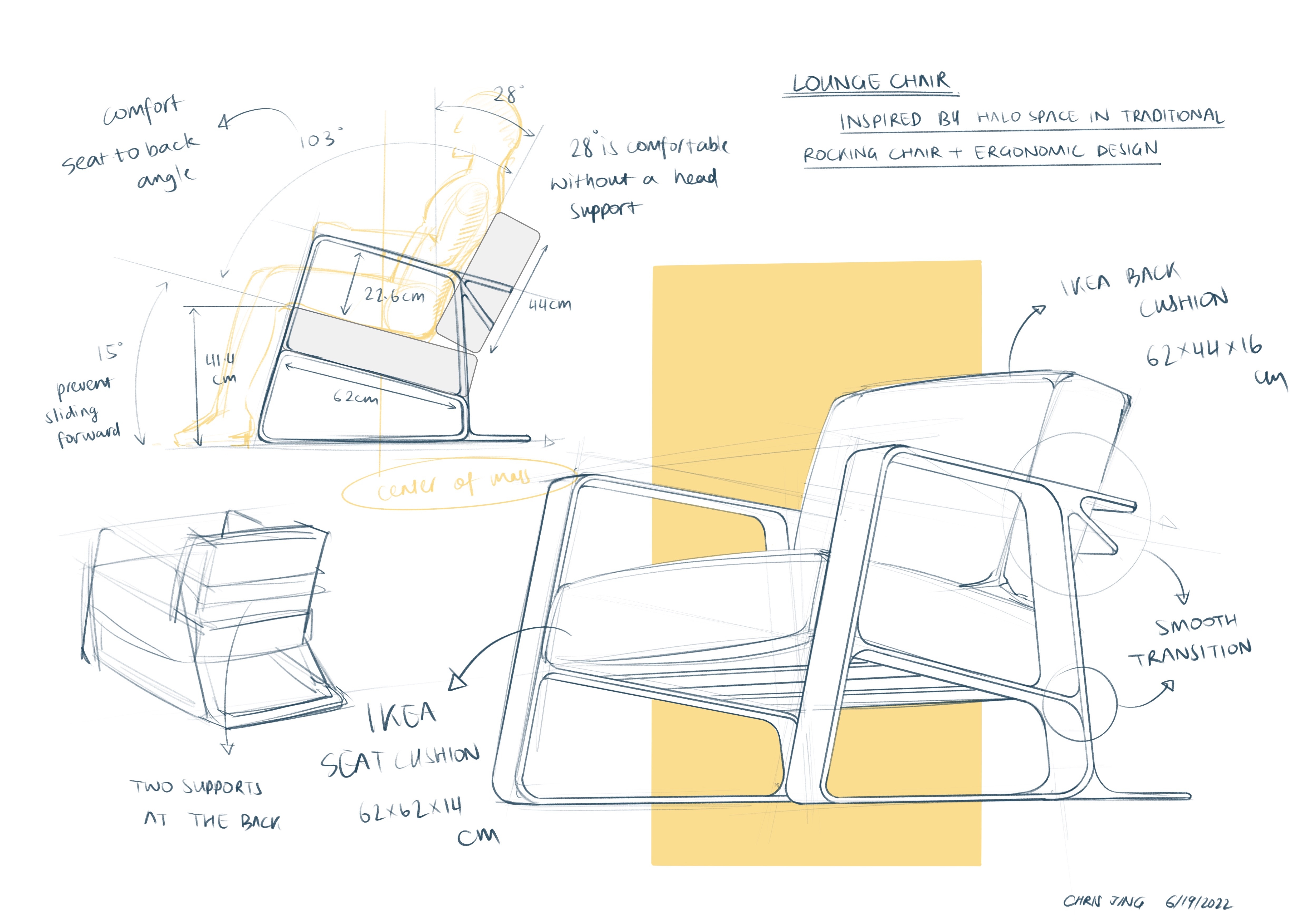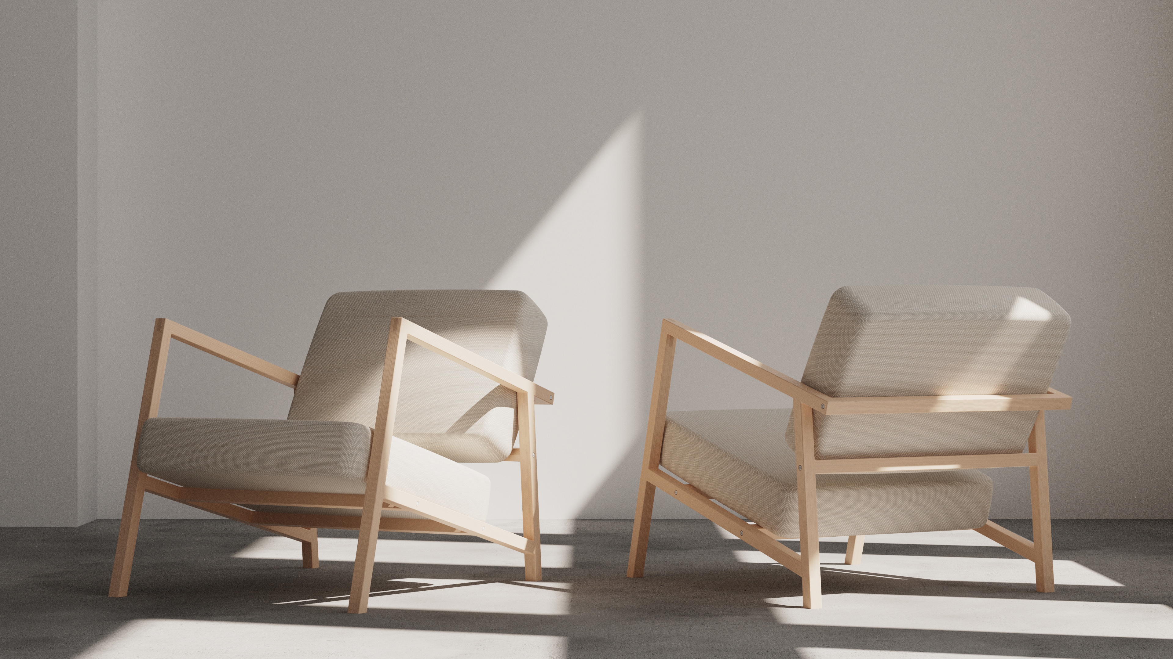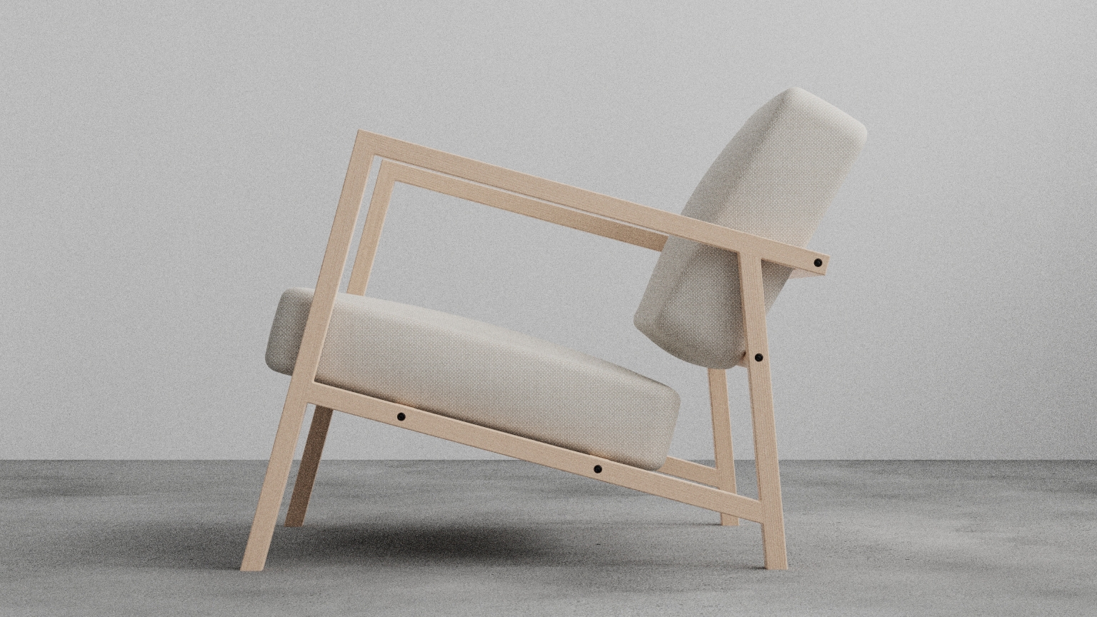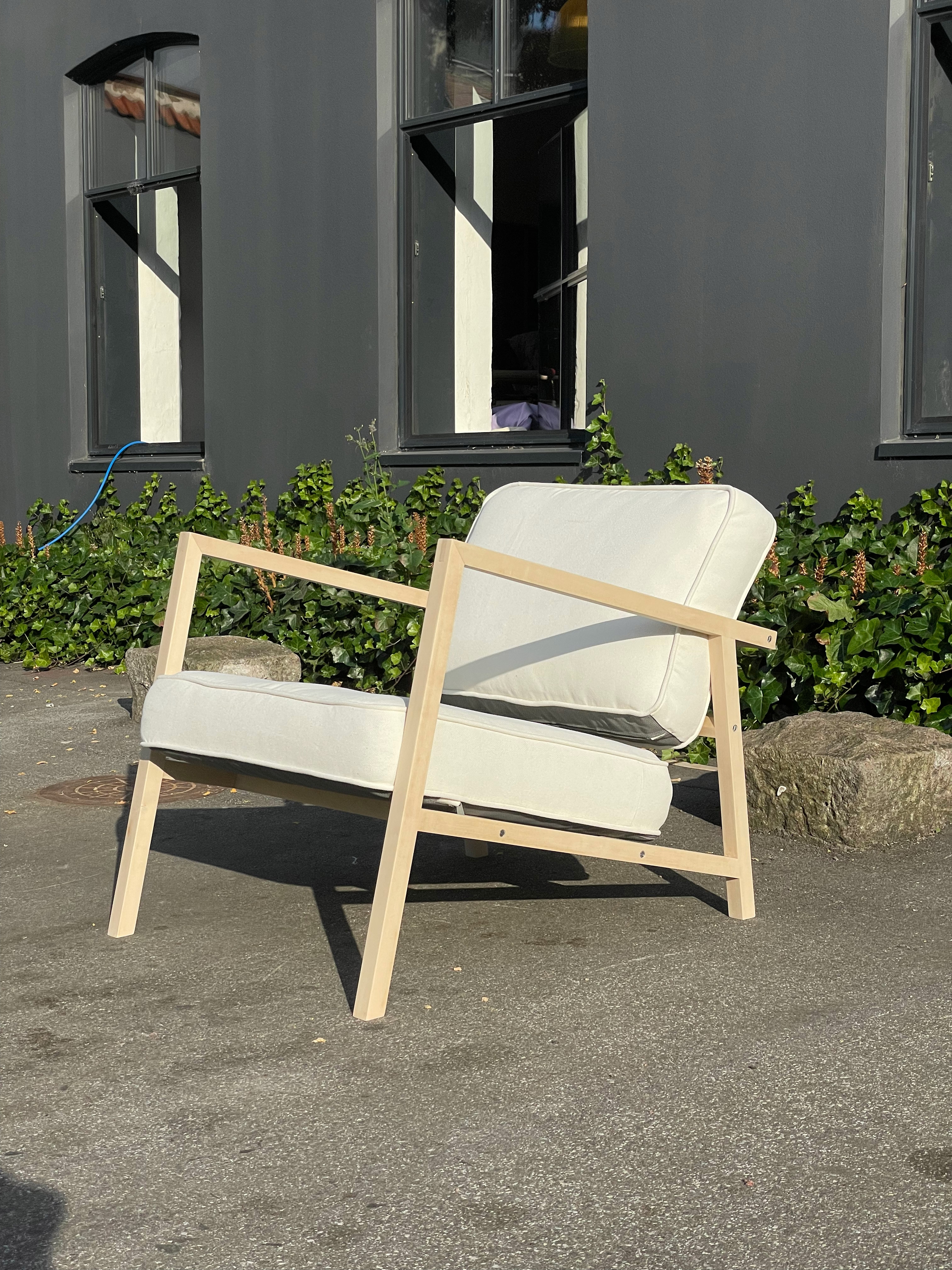 It is a lounge chair inspired by Pernilla 69 by Bruno Mathsson with a significant contrast profile. It features a thin but stiff frame with two thick and soft cushions. It follows strictly with the ergonomic dimensions, which provides a delightful sitting experience.