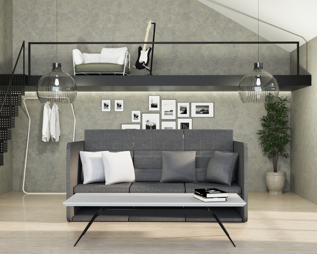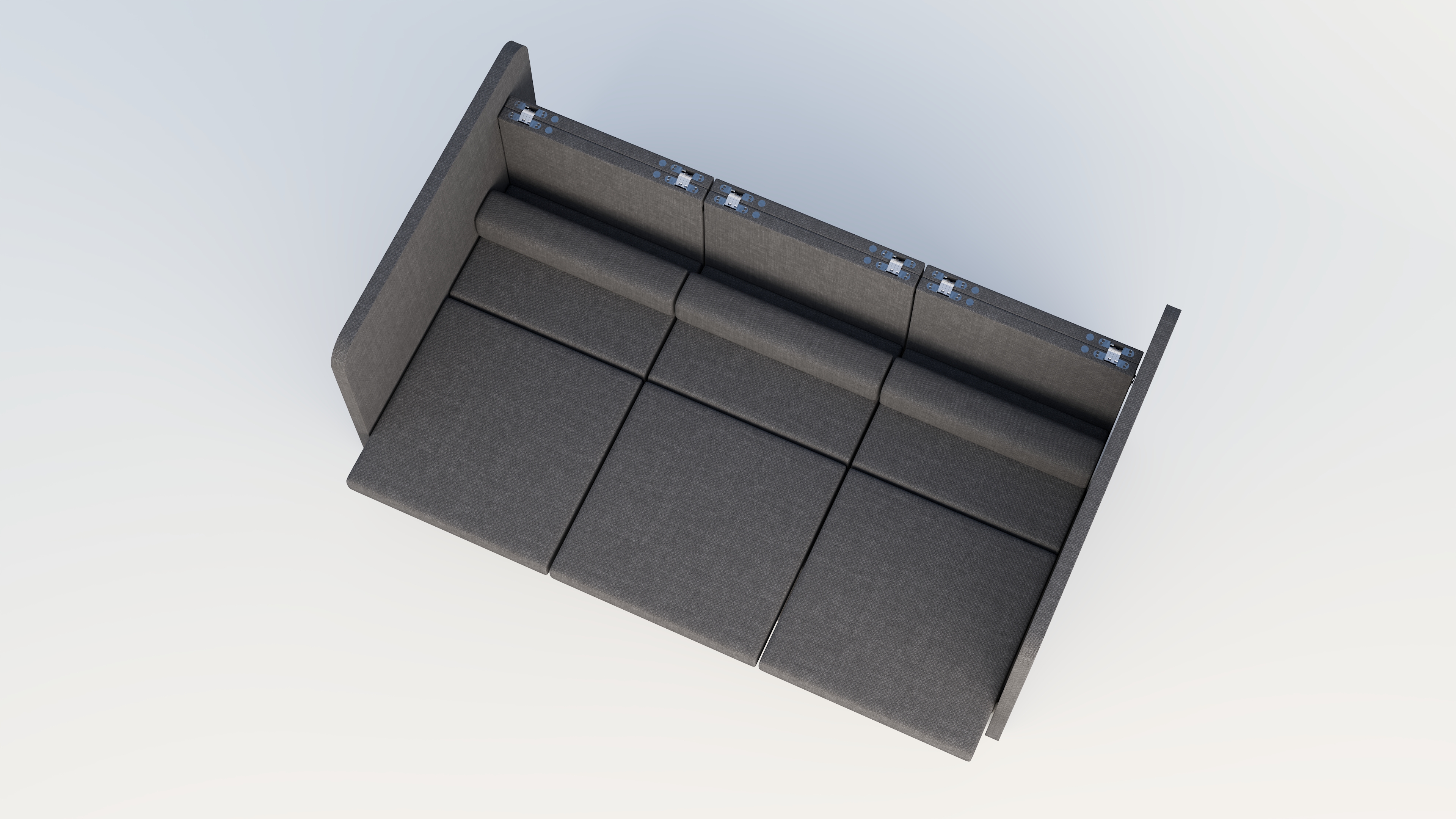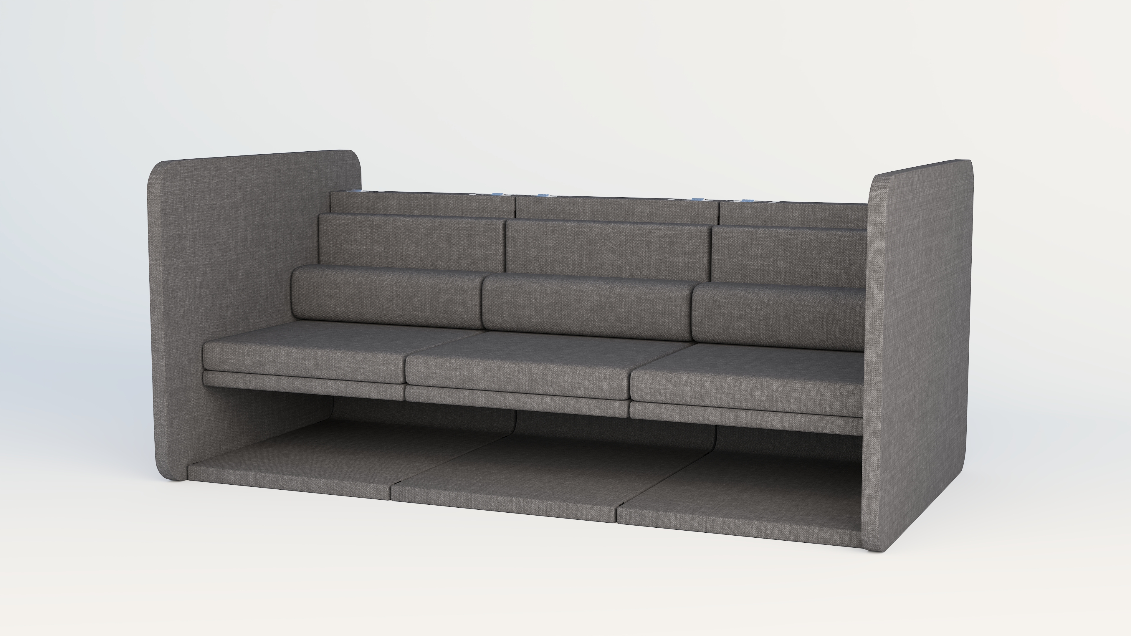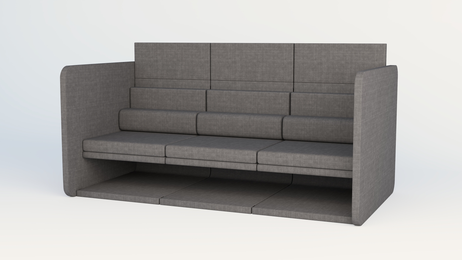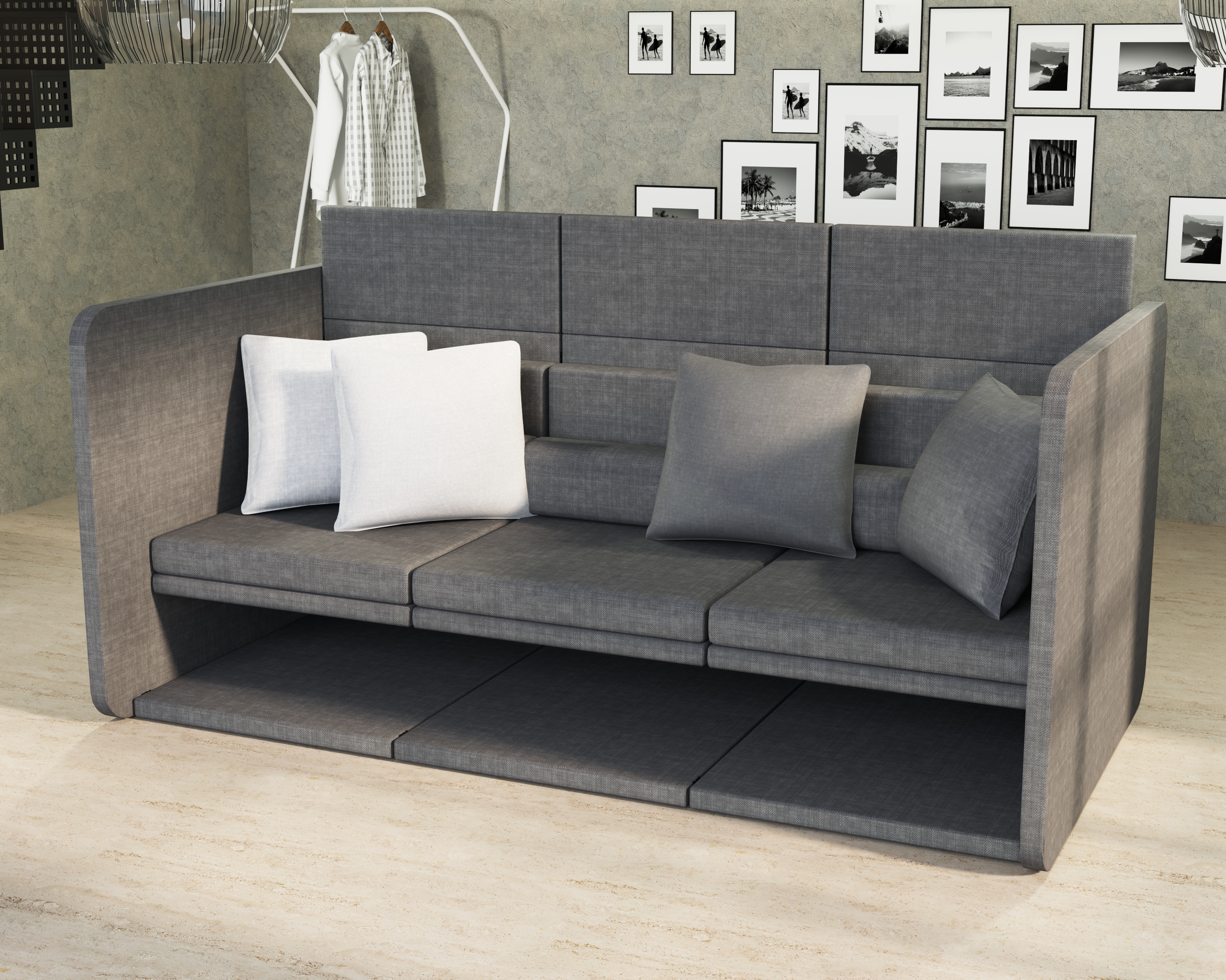 Introducing Pinnaculum, a modular sofa that transforms into a bed and features a unique privacy wall for individuals seeking a comfortable and private space. Made with eco-friendly materials such as FSC-certified wood and natural latex foam, this sofa provides both comfort and sustainability. The back wall is foldable and comes with concealed hinges and magnet locks, ensuring it stays in place to provide adequate privacy for most people. Pinnaculum is perfect for students, young professionals, and those living in shared housing as it offers a peaceful area to take a nap, work or use a computer without disturbances. This easy-to-assemble, lightweight design makes it an excellent addition to any modern home. Pinnaculum is the ultimate solution for individuals seeking versatility, privacy, and functionality in one piece of furniture which involves a less complicated support structure.