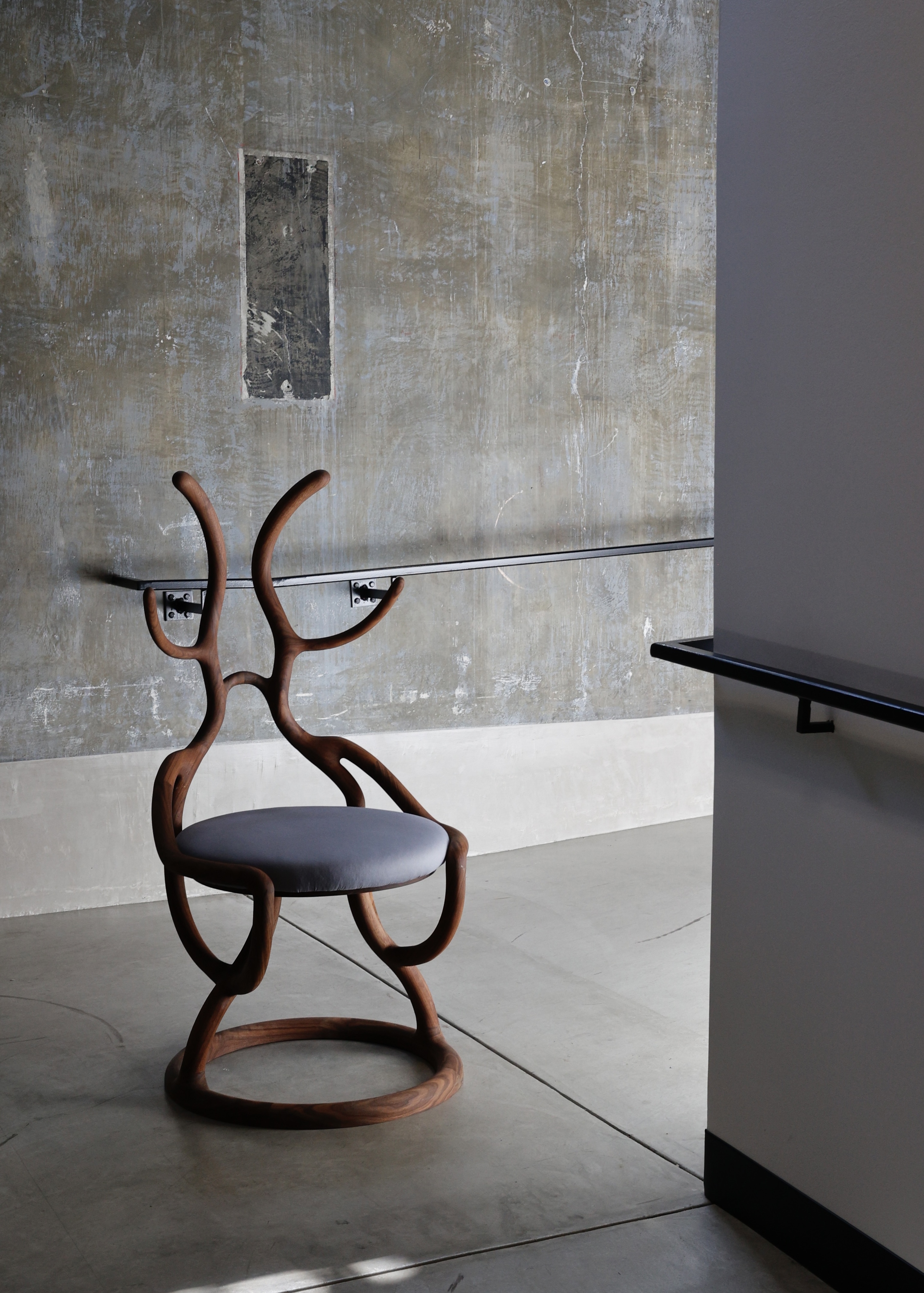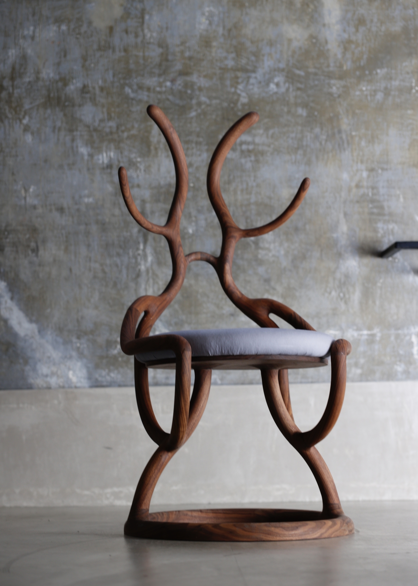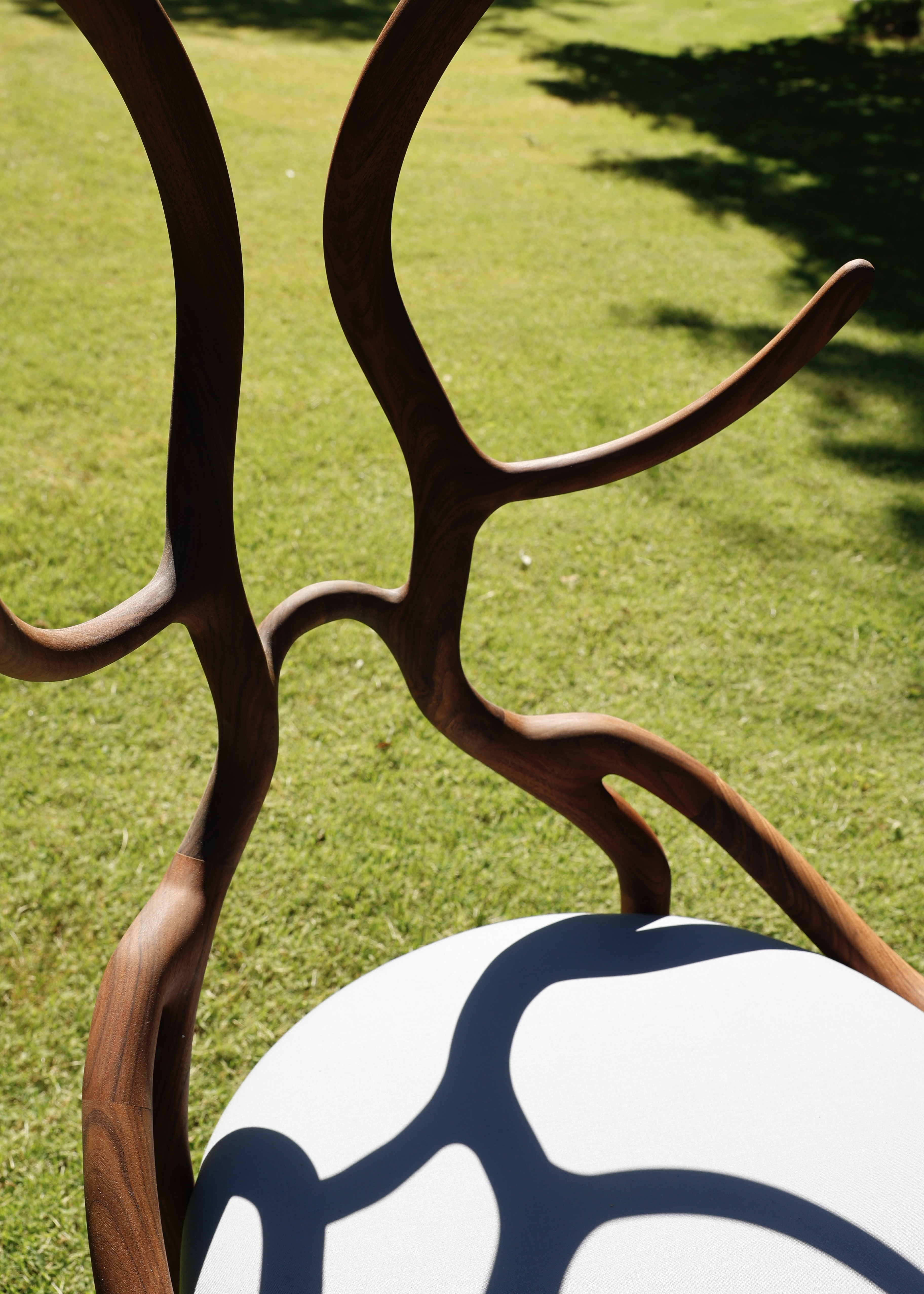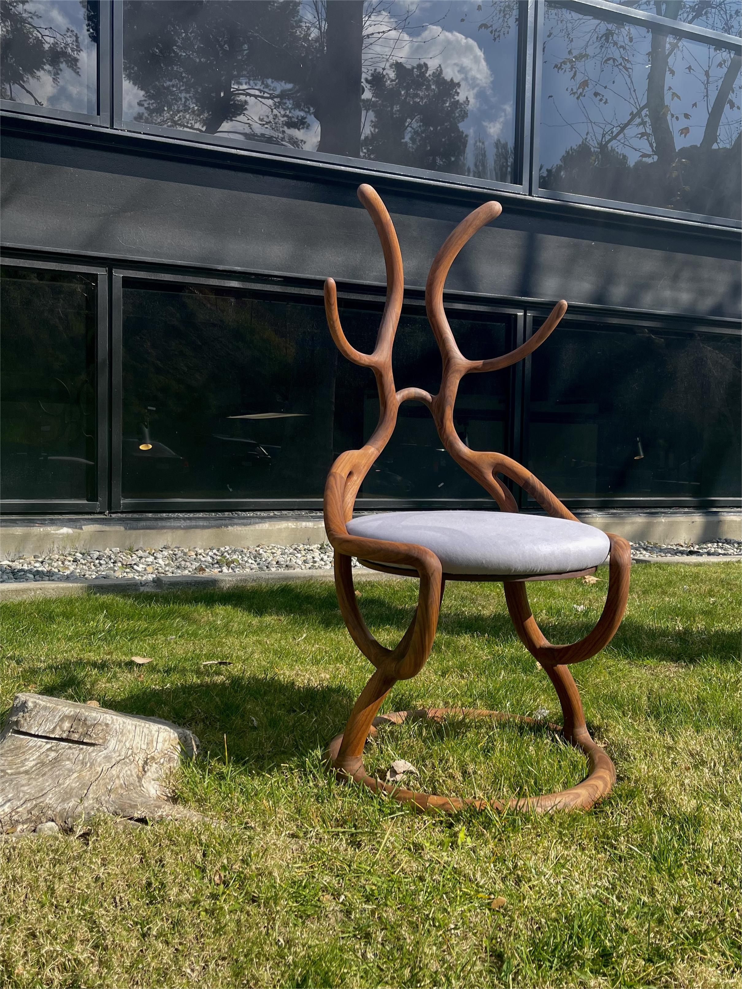 Crafted from premium North American walnut, the chair exhibits both elegance and innovation. The incorporation of the bionic support structure adds flexibility and enhances ergonomics. The Antler Chair aims to offer a natural and visually appealing sensory experience. Additionally, its special support structure prompts users to contemplate the delicate balance between nature conservation and progress while enjoying its benefits.