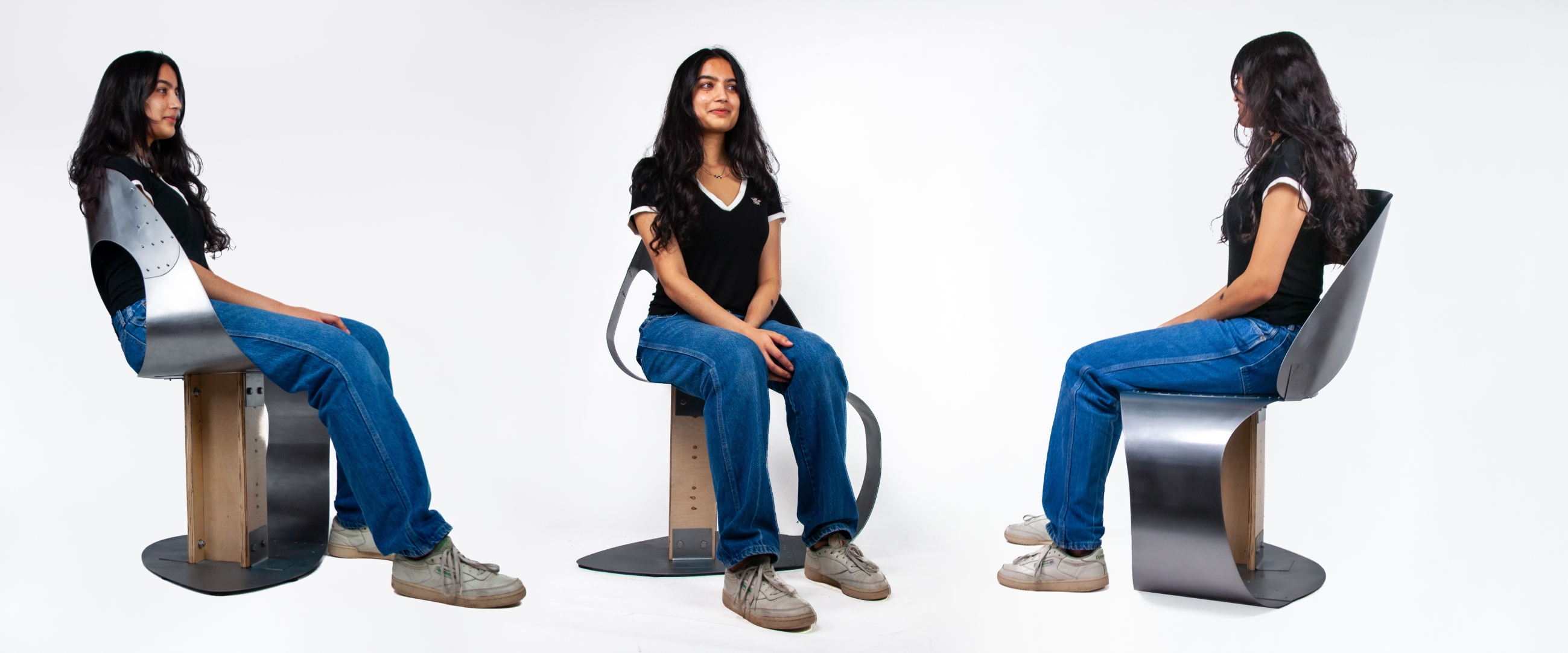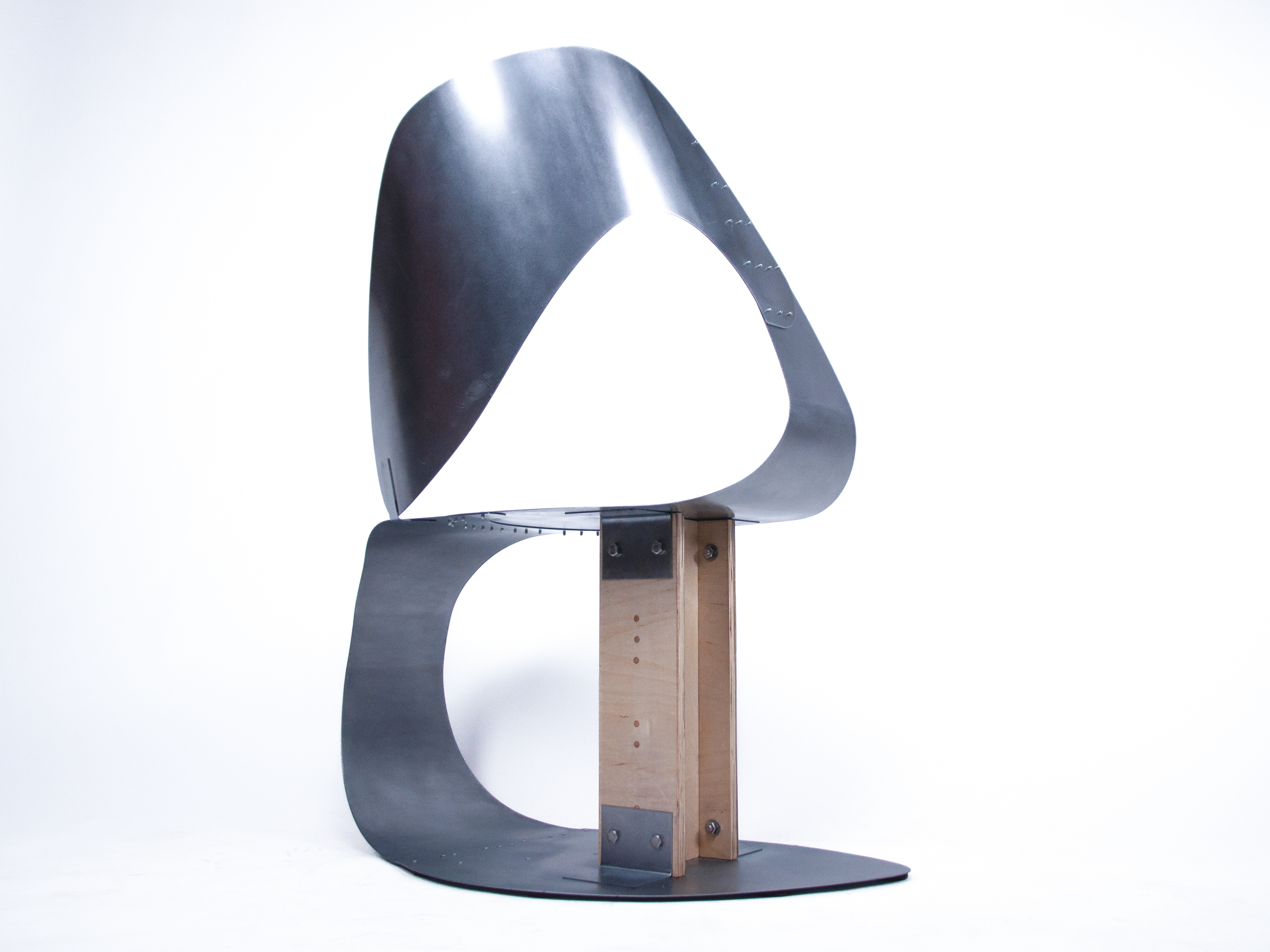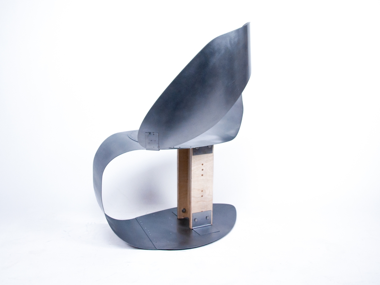 B-47 aims to embody the intricate play of distances in public spaces by manipulating sheet metal's curves and volume. The material choice represents the irritation of external intrusion into privacy: cold and hard, yet people still fall for its reflection on one's internality. Laser cutter, slip roll, and rivets divert the brutality into a gentle enclosure, demonstrating our effort to claim a personal zone in this shared world.