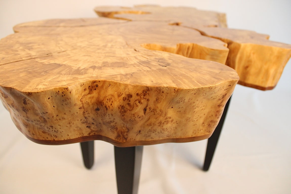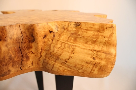 Over 300 hours of carving and sanding produced a live edge that retains the original shape of the trunk but is now highly refined.