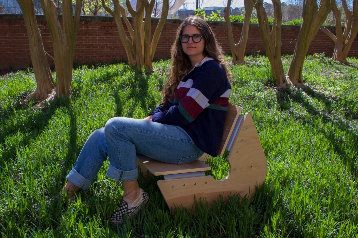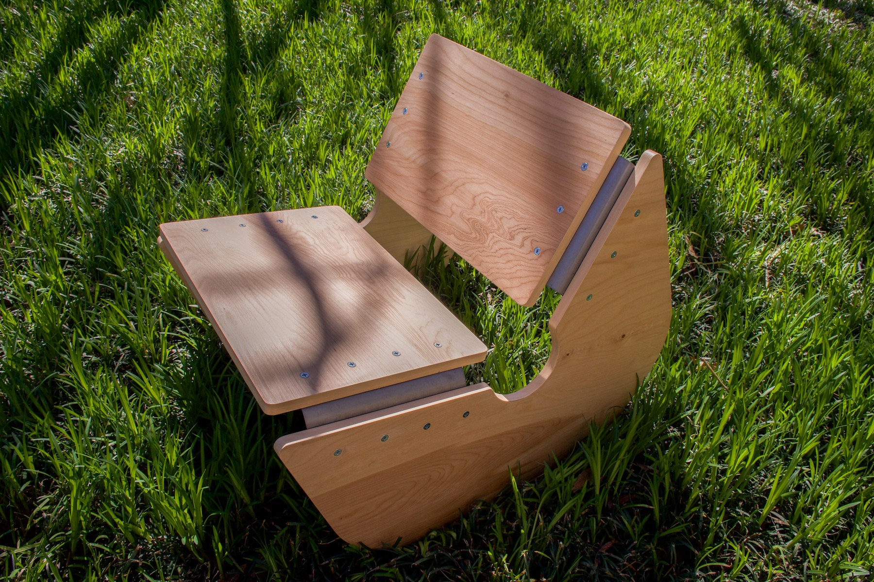 This chair is intended for outdoors, and was designed to maximize style while also minimizing damage to the grass below. Through the hollow interior and large gaps, the sun is able to shine through, which allows the chair to become one with the environment without hampering its ability to grow.