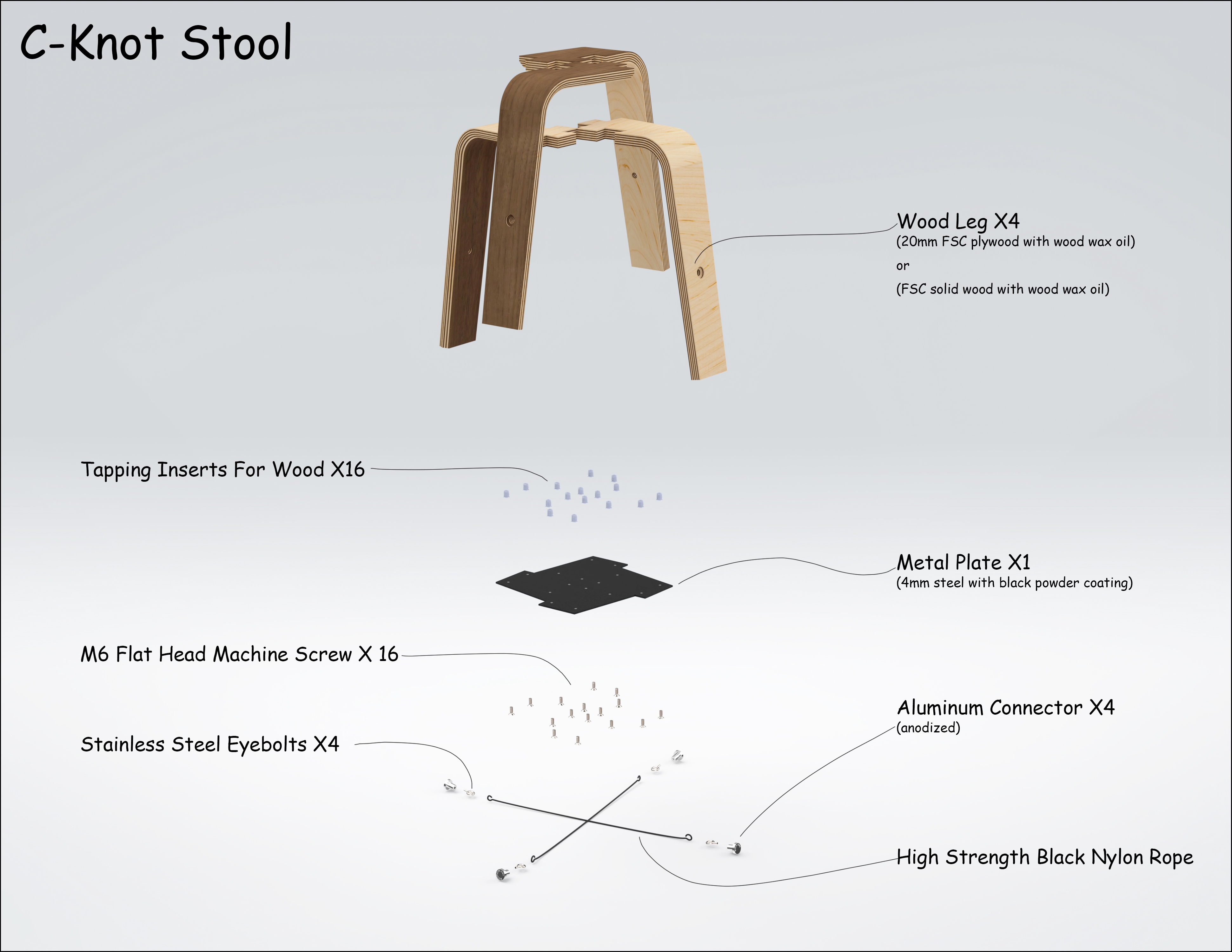 The principle in the structural design of this stool is that every part must be removable and replaceable. This is not only conducive to extending the service life of a product, but also to classifying and recycling each part after the completion of the product life cycle.