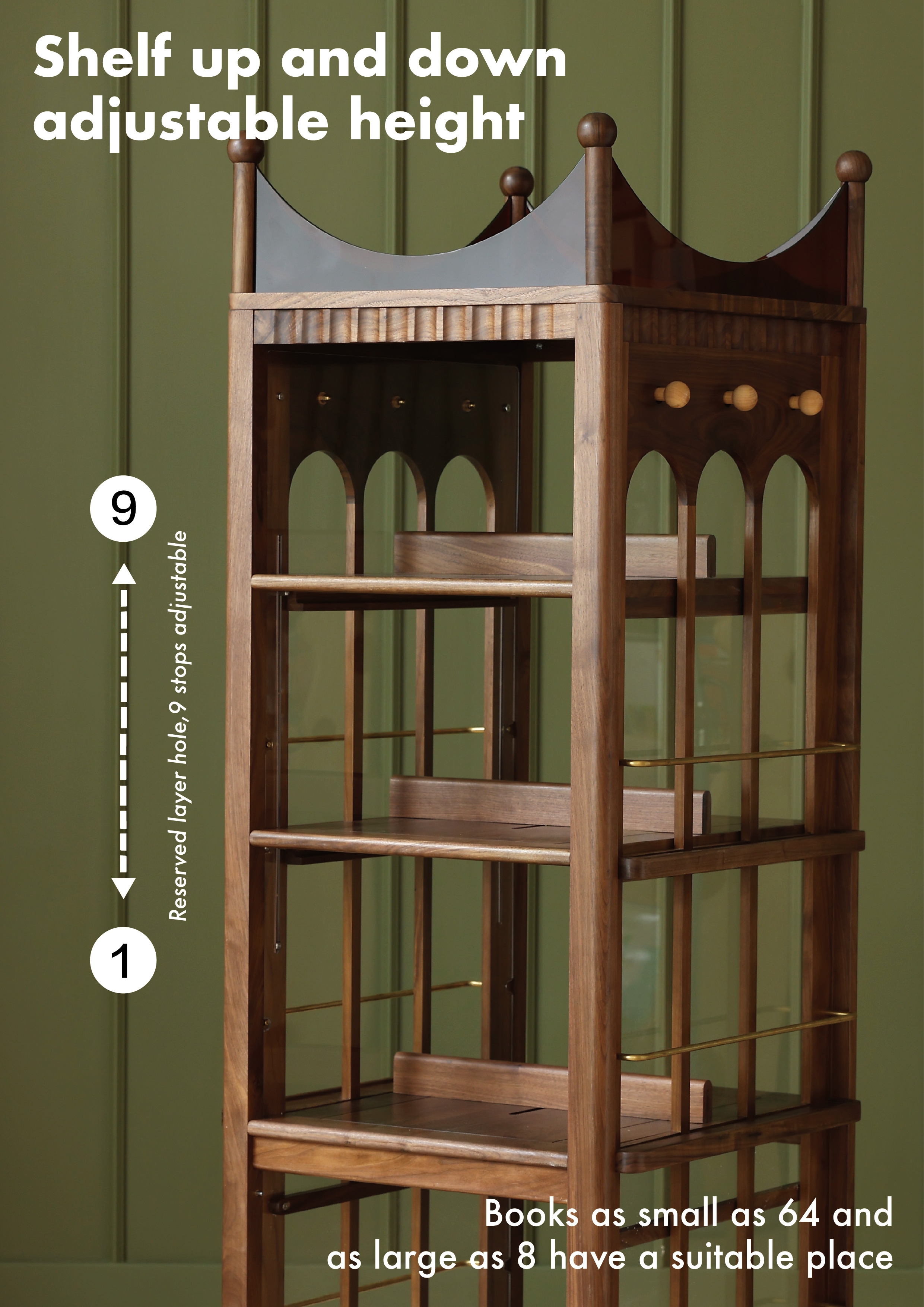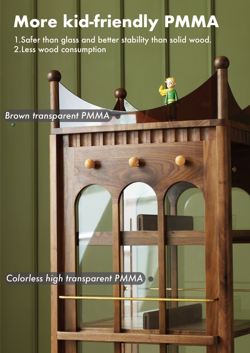 3, Manufacturing materials: North American black walnut/cherry wood, acrylic, brass