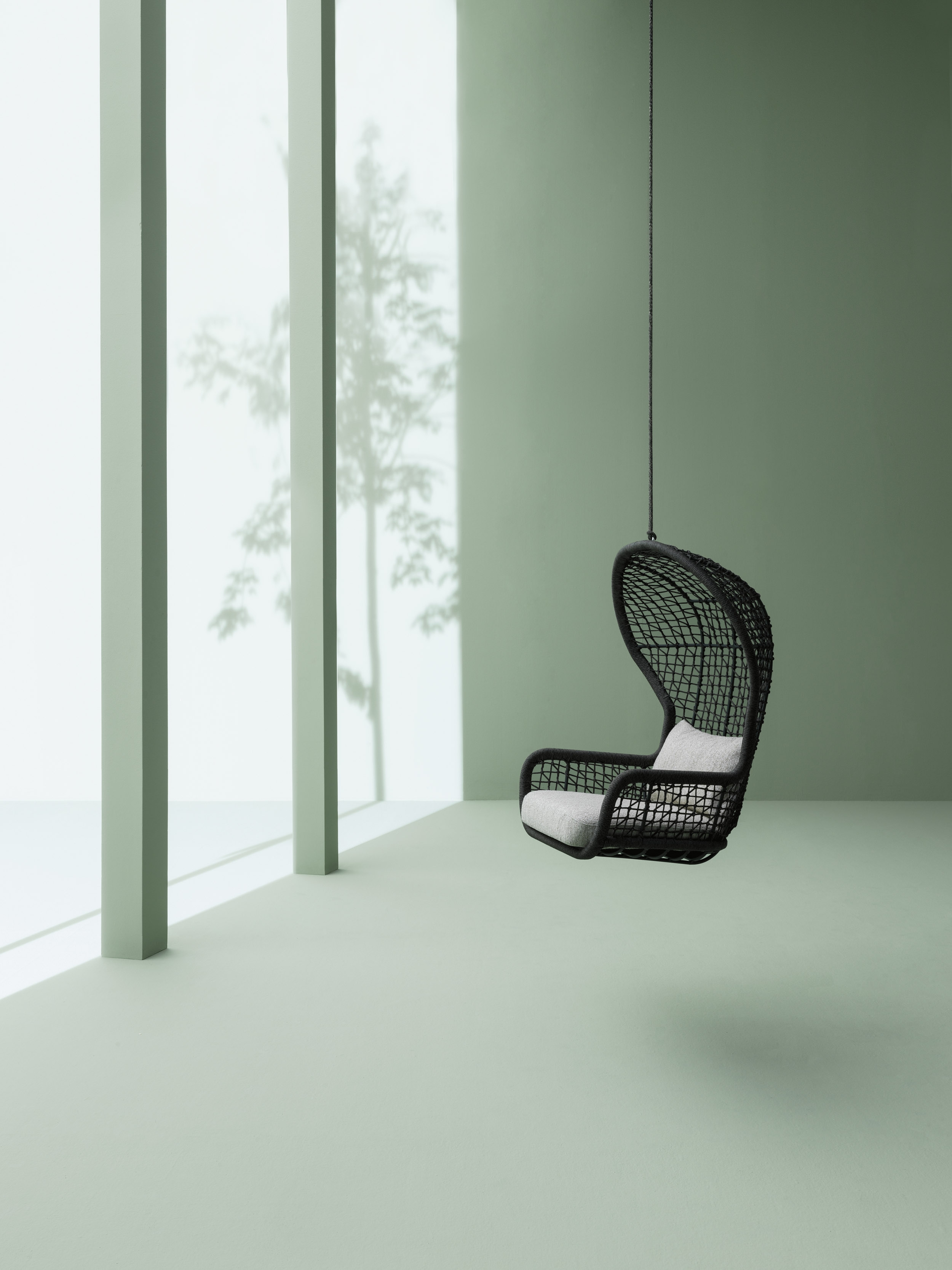 A refuge, a cradle, a suspended cocoon in which to experience moments of total relaxation, whose source of inspiration are the seductive forms of the Bergère.