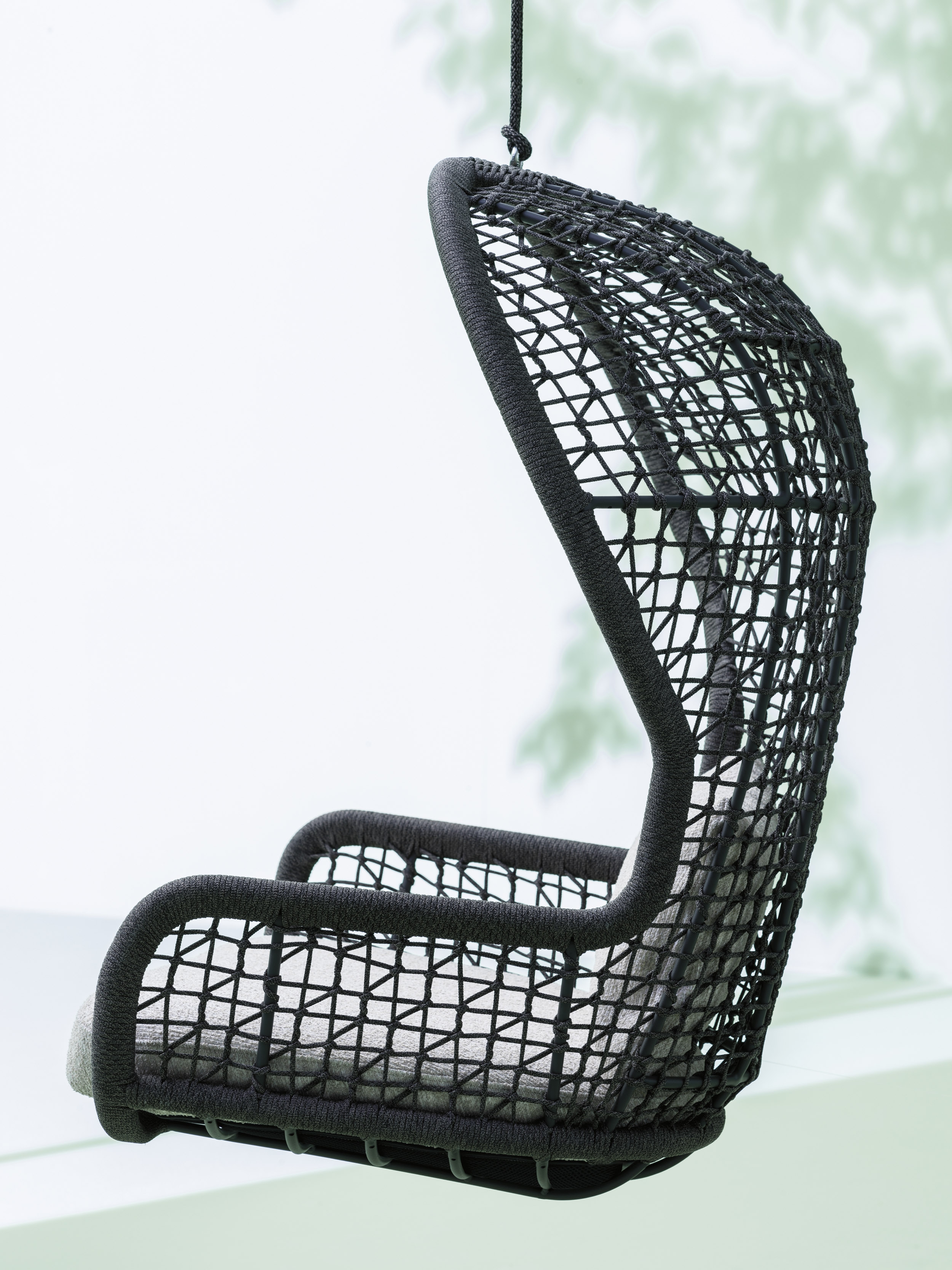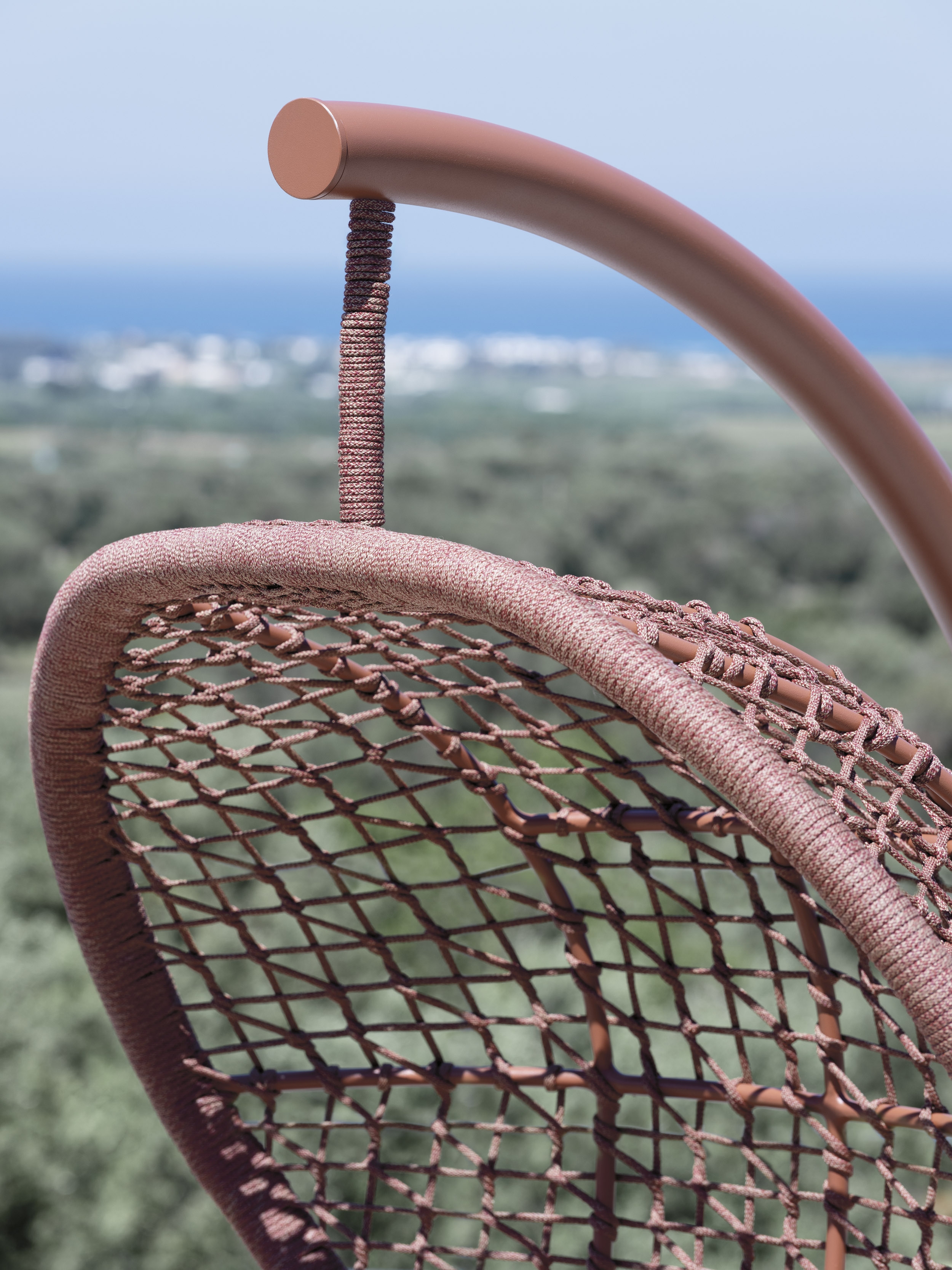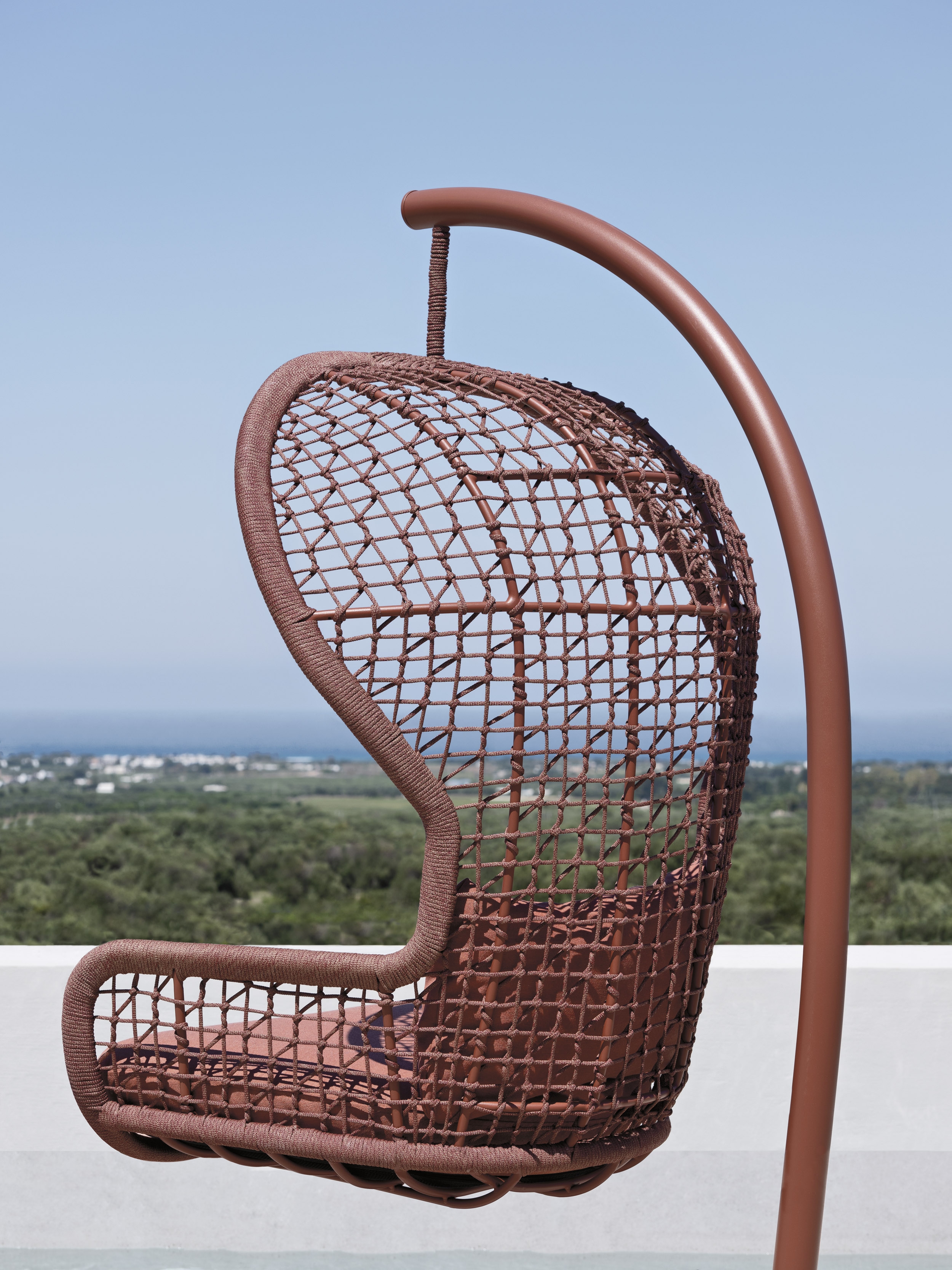 Unique in its form, the perfect companion for summer evenings, it is available in two different versions with or without a suspension frame.